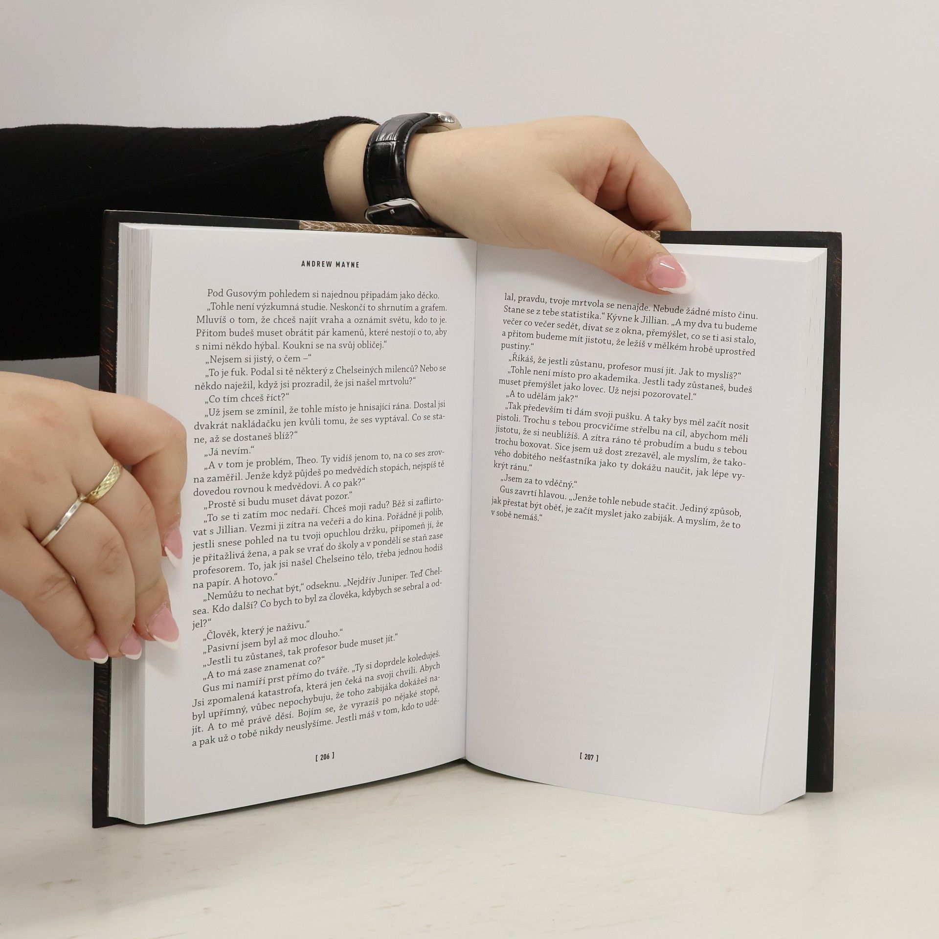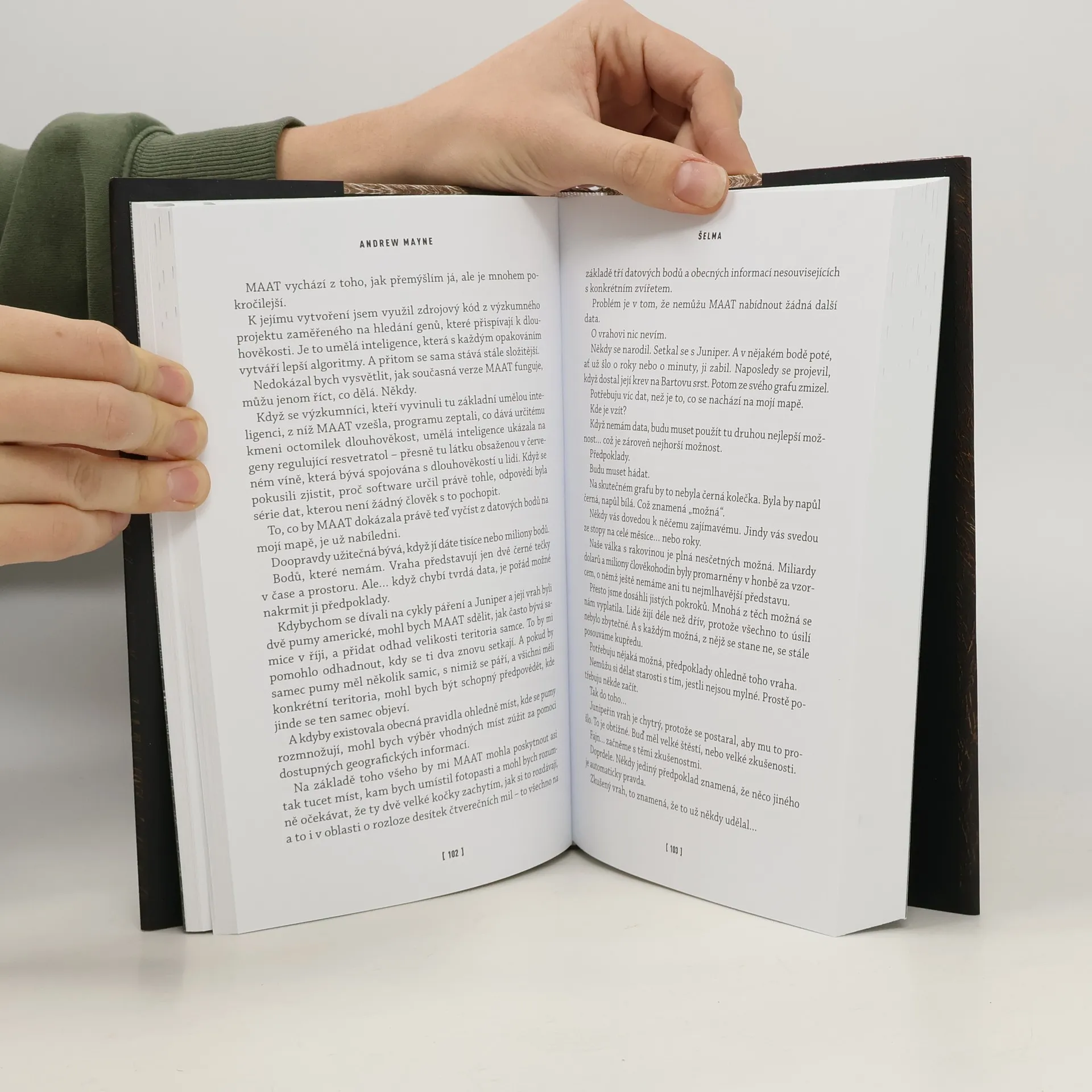 Profesor bioinformatiky Theo Cray nemá nejlepší ráno. Automat na led nefunguje, a navíc se mu do motelového pokoje dobývá policie. Že je hlavní podezřelý z brutální vraždy své bývalé studentky, se však dozví, až když je jeho účast na otřesné události vyloučena. Zdá se totiž, že mladou dívku v montanských lesích rozsápal medvěd. Jenomže profesor Cray je díky svému povolání zvyklý vidět vzorce tam, kde ostatní nacházejí jen chaos. A tak si všimne něčeho, co ostatní přehlédli. Něčeho nepřirozeného. Něčeho zjevně provedeného lidskou rukou. Theo pochopí, že tohle zvěrstvo nespáchalo žádné zvíře, nýbrž člověk, a že to rozhodně neudělal poprvé. A protože mu policie nevěří, začne mu být jasné i to, že je zřejmě jedinou osobou, která může zabijáka zastavit. Theo je sice lépe obeznámený s digitálními kódy a mikroby než s vyhodnocováním forenzních důkazů, nyní však musí uplatnit všechno, co umí, na zcela novou oblast výzkumu. A udržet se přitom o krok napřed nebezpečně vynalézavým sériovým vrahem... v jehož existenci navíc nevěří nikdo kromě něho. Až brutálně návykový debutový román mága a iluzionisty Andrewa Maynea, hvězdy televizního pořadu Otázky a odpovědi: Nevěřte Andrewu Mayneovi, který spolupracoval s největšími mistry svého řemesla včetně Davida Copperfielda.