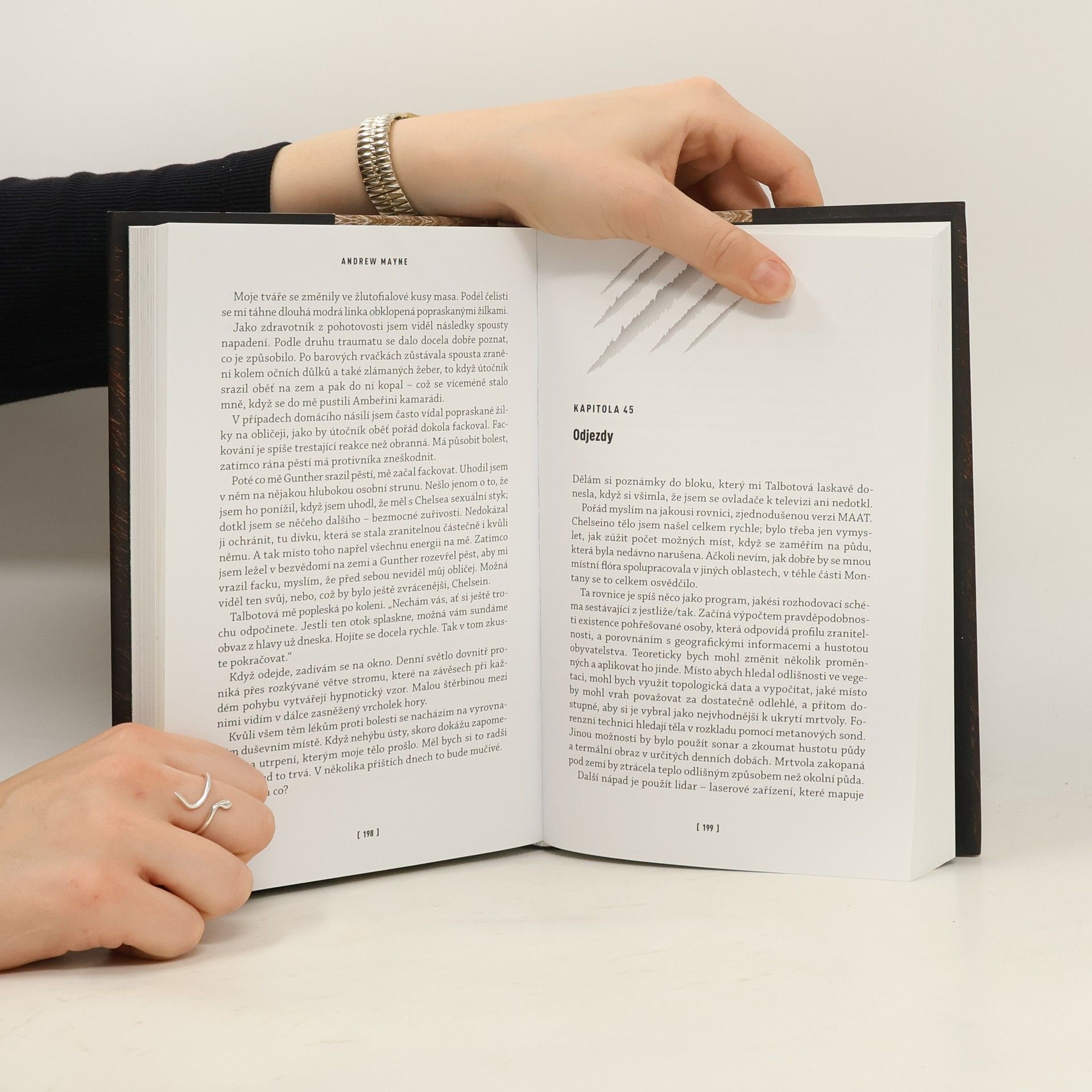 Profesor bioinformatiky Theo Cray nemá nejlepší ráno. Automat na led nefunguje, a navíc se mu do motelového pokoje dobývá policie. Že je hlavní podezřelý z brutální vraždy své bývalé studentky, se však dozví, až když je jeho účast na otřesné události vyloučena. Zdá se totiž, že mladou dívku v montanských lesích rozsápal medvěd. Jenomže profesor Cray je díky svému povolání zvyklý vidět vzorce tam, kde ostatní nacházejí jen chaos. A tak si všimne něčeho, co ostatní přehlédli. Něčeho nepřirozeného. Něčeho zjevně provedeného lidskou rukou. Theo pochopí, že tohle zvěrstvo nespáchalo žádné zvíře, nýbrž člověk, a že to rozhodně neudělal poprvé. A protože mu policie nevěří, začne mu být jasné i to, že je zřejmě jedinou osobou, která může zabijáka zastavit. Theo je sice lépe obeznámený s digitálními kódy a mikroby než s vyhodnocováním forenzních důkazů, nyní však musí uplatnit všechno, co umí, na zcela novou oblast výzkumu. A udržet se přitom o krok napřed nebezpečně vynalézavým sériovým vrahem... v jehož existenci navíc nevěří nikdo kromě něho. Až brutálně návykový debutový román mága a iluzionisty Andrewa Maynea, hvězdy televizního pořadu Otázky a odpovědi: Nevěřte Andrewu Mayneovi, který spolupracoval s největšími mistry svého řemesla včetně Davida Copperfielda.