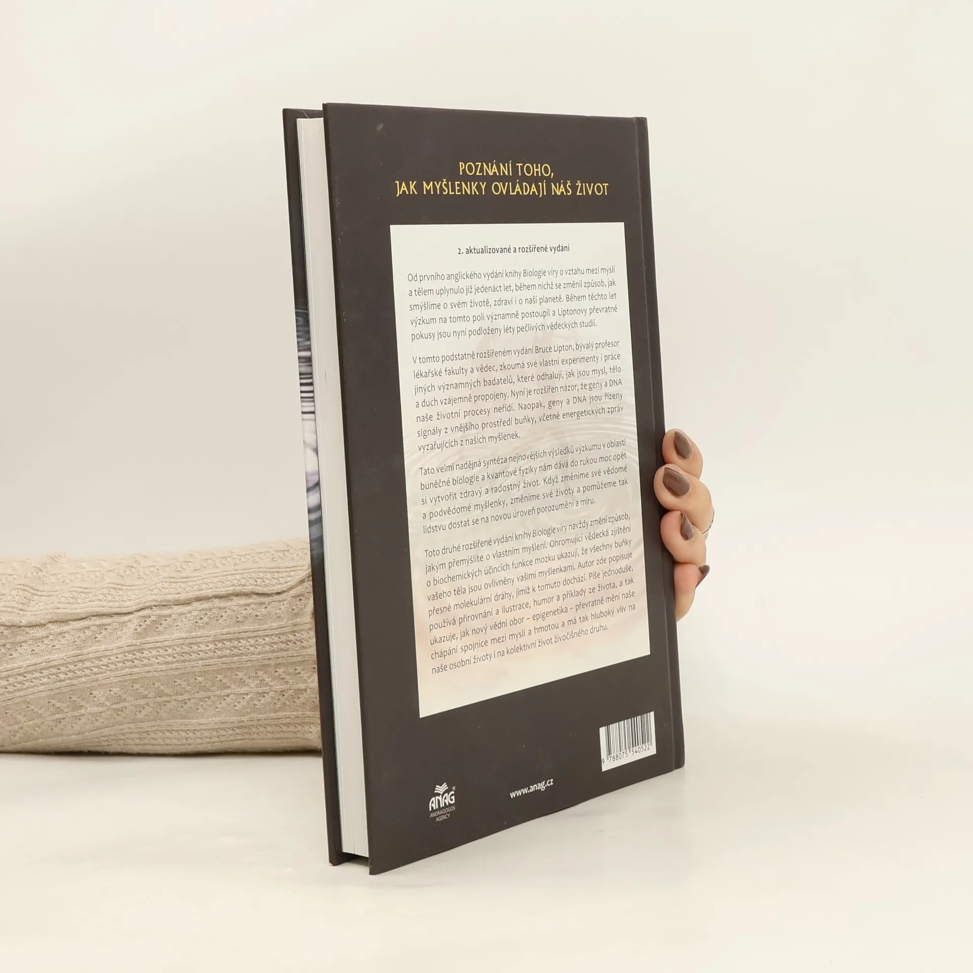Přestože název knihy mnoho nenapoví, její obsah vás překvapí, či dokonce ohromí. Věřte, že tělo i mysl lze změnit pouhými myšlenkami Autor v knize Biologie víryodhaluje tajemství, ke kterému vědci dospěli teprve nedávno, a sice že můžeme změnit svou biologii – tedy naše tělo i mysl – díky svému uvědomělému chování a myšlenkám. Jak sám ověřil na vlastním životě i na mnoha pokusech, to, co nás zásadním způsobem ovlivňuje, není naše DNA, jak si dosud vědci mysleli, ale buněčná membrána, skrze niž se do buňky dostává vše potřebné, od výživy, léků až po stresové hormony. To je tedy ten „mozek buňky“, který pro nás má tak zásadní význam. Myslete pozitivně – pomůžete tak svému tělu Jsme-li v dobré pohodě, buňky dostávají vše potřebné pro svůj růst. Pokud však žijeme ve strachu a neustálém stresu, buňky chřadnou – jsou totiž v obranné pozici, která jim neumožňuje růst a rozvíjet se. Autor na mnoha zajímavých pokusech a také příkladech ze života přibližuje čtenáři fungování buňky, vliv buněčné membrány a DNA a dokazuje, že život není založen jen na „materiální“ informaci, hmotě, v tomto případě představované DNA, ale že jej ovlivňují a řídí nehmotné, energetické signály z prostředí mimo buňku.
