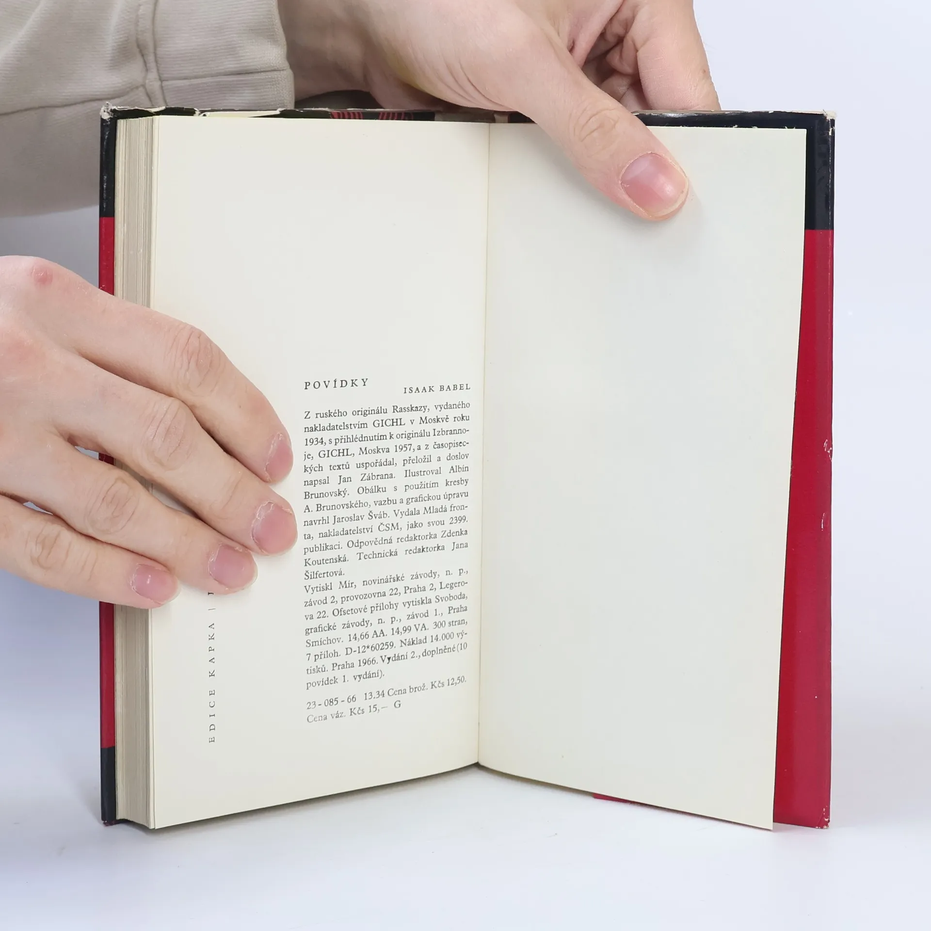Druhé, doplněné české vydání Babelových povídek. Z ruských knižních originálů a časopiseckých textů vybral, přeložil a doslov napsal Jan Zábrana. Edice Kapka, Ilustrovaná řada sv. 25.