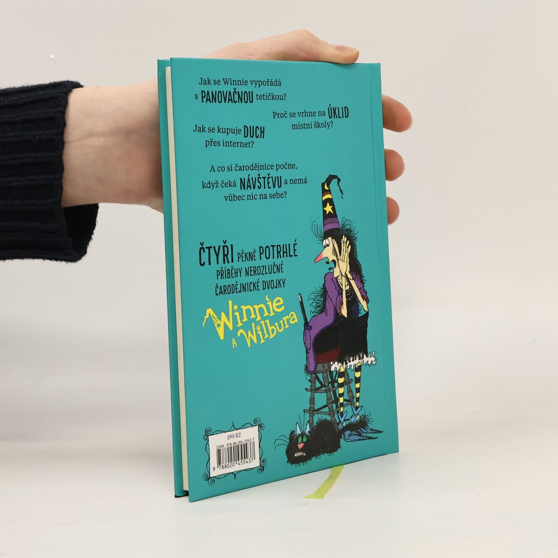 Nerozluční kamarádi Winnie a Wilbur spolu prožívají spoustu neobyčejných příhod. Winnie je totiž čarodějka (a ke všemu pořádně popletená!) a Wilbur je její věrný kočičí společník. V této nezaměnitelně ilustrované knize čekají na malé čtenáře hned čtyři příběhy plné kouzel a bláznivých dobrodružství. Jak se Winnie vypořádá s rozkazovačnou tetičkou? Proč se rozhodne vrhnout na úklid místní školy? Jak se kupuje strašidlo přes internet? A co si taková čarodějnice počne, když čeká návštěvu a nemá vůbec nic na sebe?