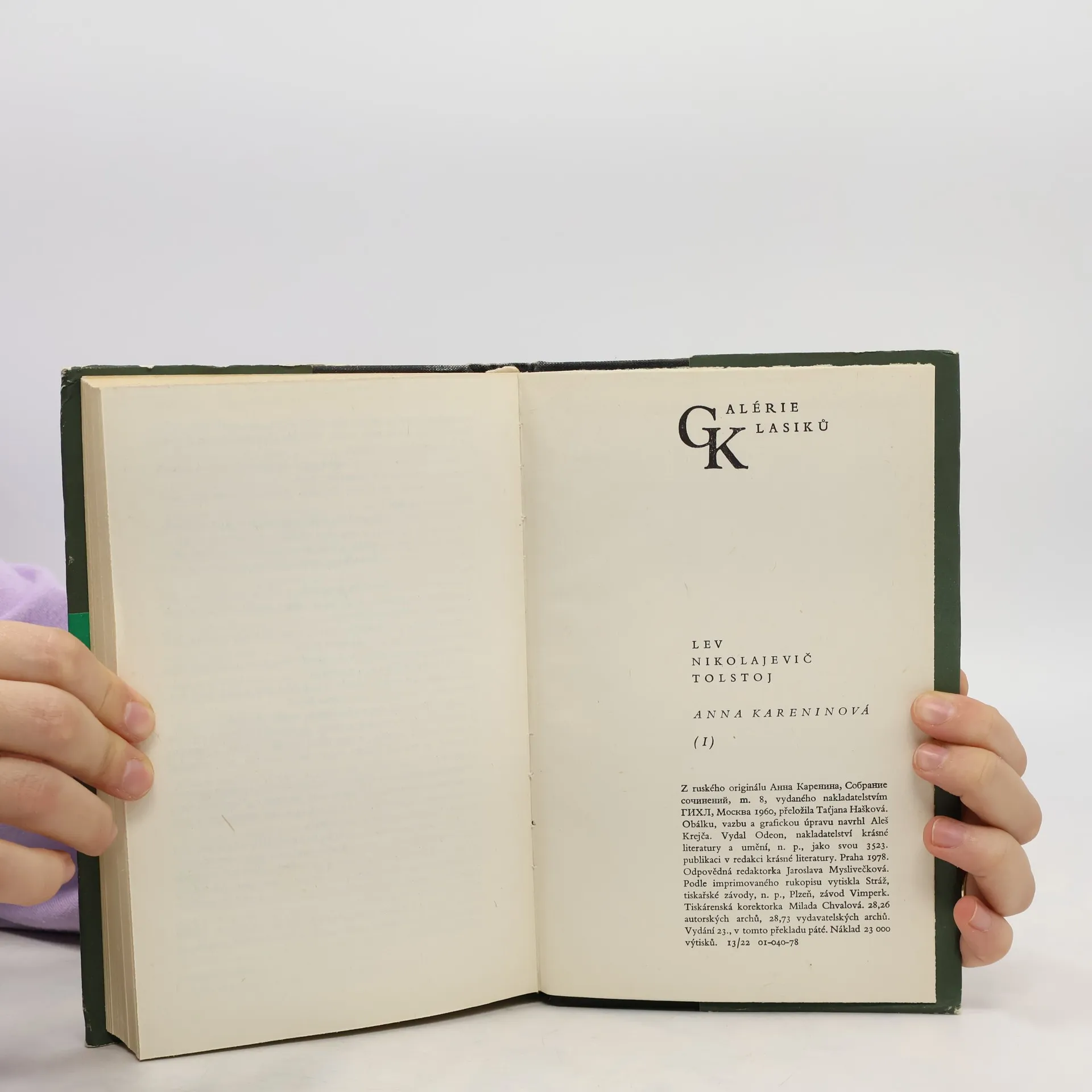 První svazek ze dvou. Všechny šťastné rodiny jsou si podobné, každá nešťastná rodina je nešťastná po svém. Výmluvný postřeh giganta ruského realistického románu Lva Nikolajeviče Tolstého otevírá jedno z nejslavnějších psychologických děl v dějinách literatury, v němž si spisovatel po monumentální fresce Vojna a mír dopřál komornější zápletku a dalekosáhlým přetvořením látek módních romancí vyjádřil odpor k pseudomorálce „vyšších kruhů“. Inspirován skutečnou událostí, kdy se spořádaně vyhlížející mladá dáma vrhla pod kola nákladního vlaku, vytvořil Tolstoj příběh o skandálním poklesku „dobře provdané“ krasavice, která je přinucena váhat mezi salonním životem v nelásce a přirozeným právem na štěstí. Vzplanutí choti carského hodnostáře k důstojníku Vronskému, jež spisovatel umně proplétá s osudy a krizemi dalších příbuzných a přátel, je pro Annu o to tragičtější, že na rozdíl od dobových mravokárců nedovede být pokrytecká a milostný poměr ani jeho následky netají. Nesmrtelnost tohoto románu potvrzuje i řada filmových adaptací, v nichž titulní postavu postupně ztvárnily například Greta Garbo, Vivien Leighová, Taťjana Samojlovová nebo Sophie Marceauová.