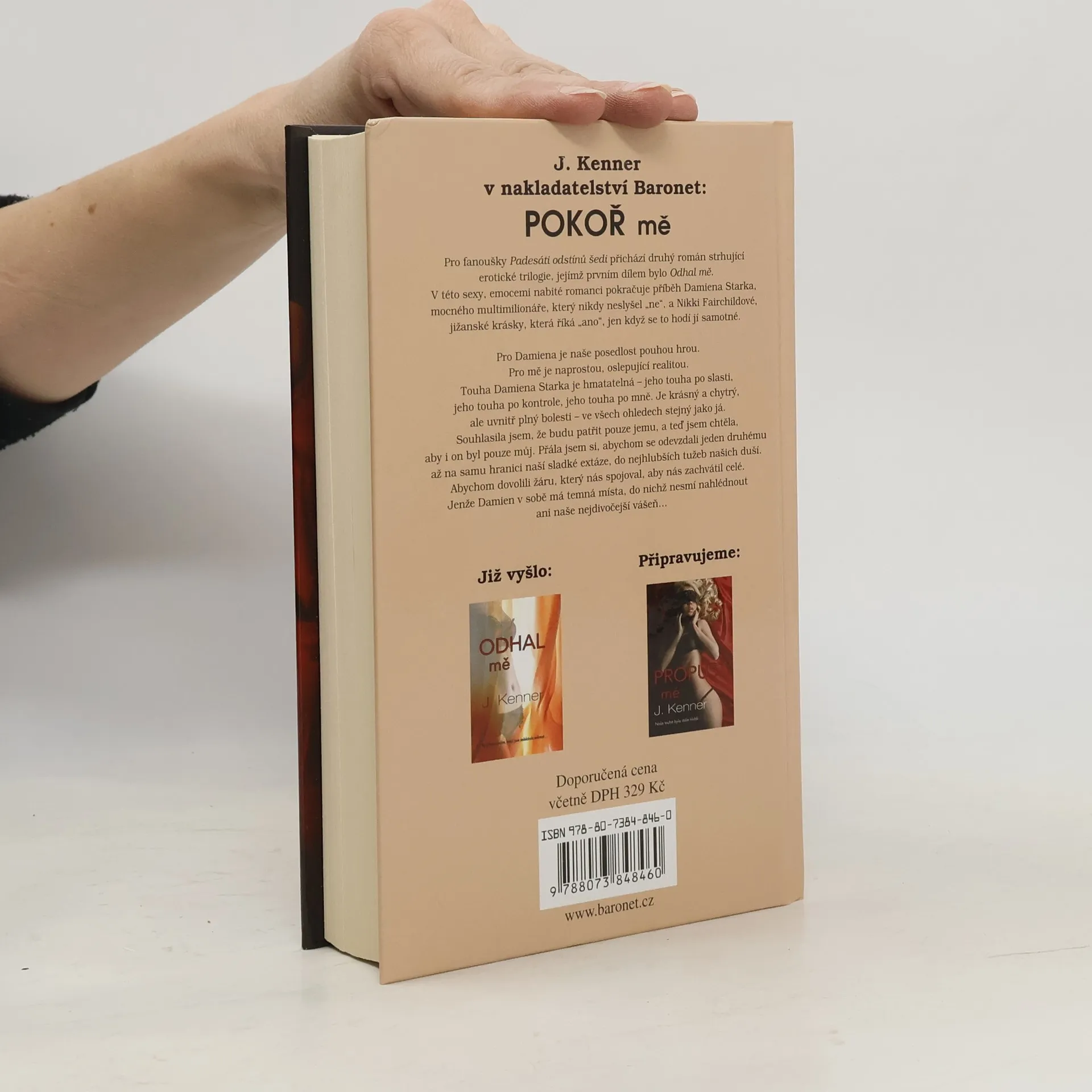 Pro fanoušky Padesáti odstínů šedi a Obnažené přichází druhý román strhující erotické trilogie, jejímž prvním dílem bylo Odhal mě. V této sexy, emocemi nabité romanci pokračuje příběh Damiena Starka, mocného milionáře, který nikdy neslyšel „ne“, a Nikki Fairchildové, jižanské krásky, která říká „ano“, jen když se to hodí jí samotné. Pro Damiena byla naše posedlost pouhou hrou. Pro mě byla naprostou, oslepující realitou. Touha Damiena Starka byla hmatatelná – jeho touha po slasti, jeho touha po ovládání, jeho touha po mně. Byl krásný a chytrý, ale uvnitř plný bolesti – ve všech ohledech stejný jako já. Souhlasila jsem, že budu patřit pouze jemu, a teď jsem chtěla, aby i on byl pouze můj. Přála jsem si, bychom se odevzdali jeden druhému až na samu hranici naší sladké extáze, do nejhlubších tužeb našich duší. Dovolit žáru, který nás spojoval, aby nás zachvátil celé. Jenže Damien v sobě měl temná místa, do nichž nesměla nahlédnout ani naše nejdivočejší vášeň. Prahla jsem znát jeho tajemství, prahla jsem po tom, aby se mi vzdal stejně, jako jsem se vzdala já jemu. Naše problematická minulost nás však může víc spojit – nebo definitivně zničit.