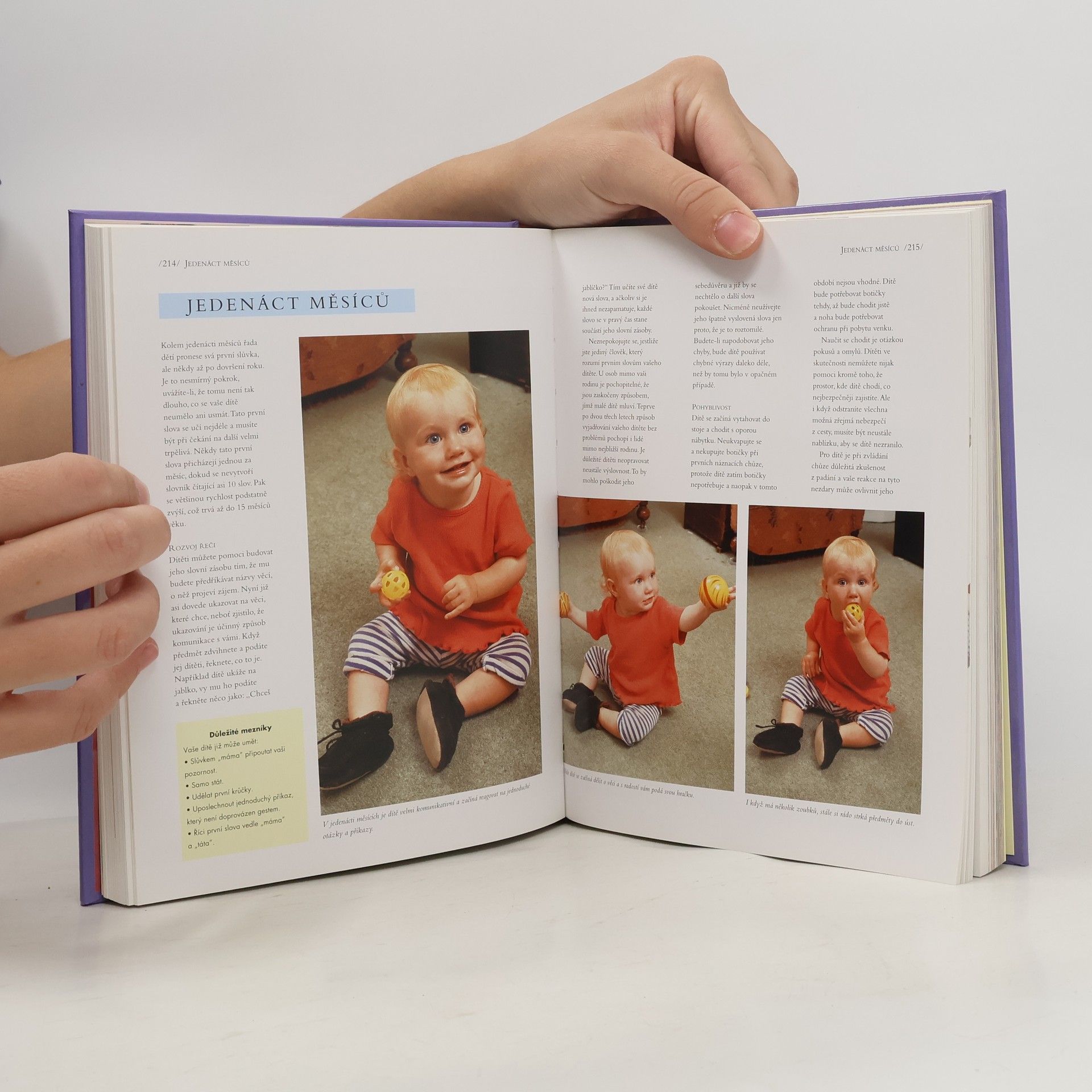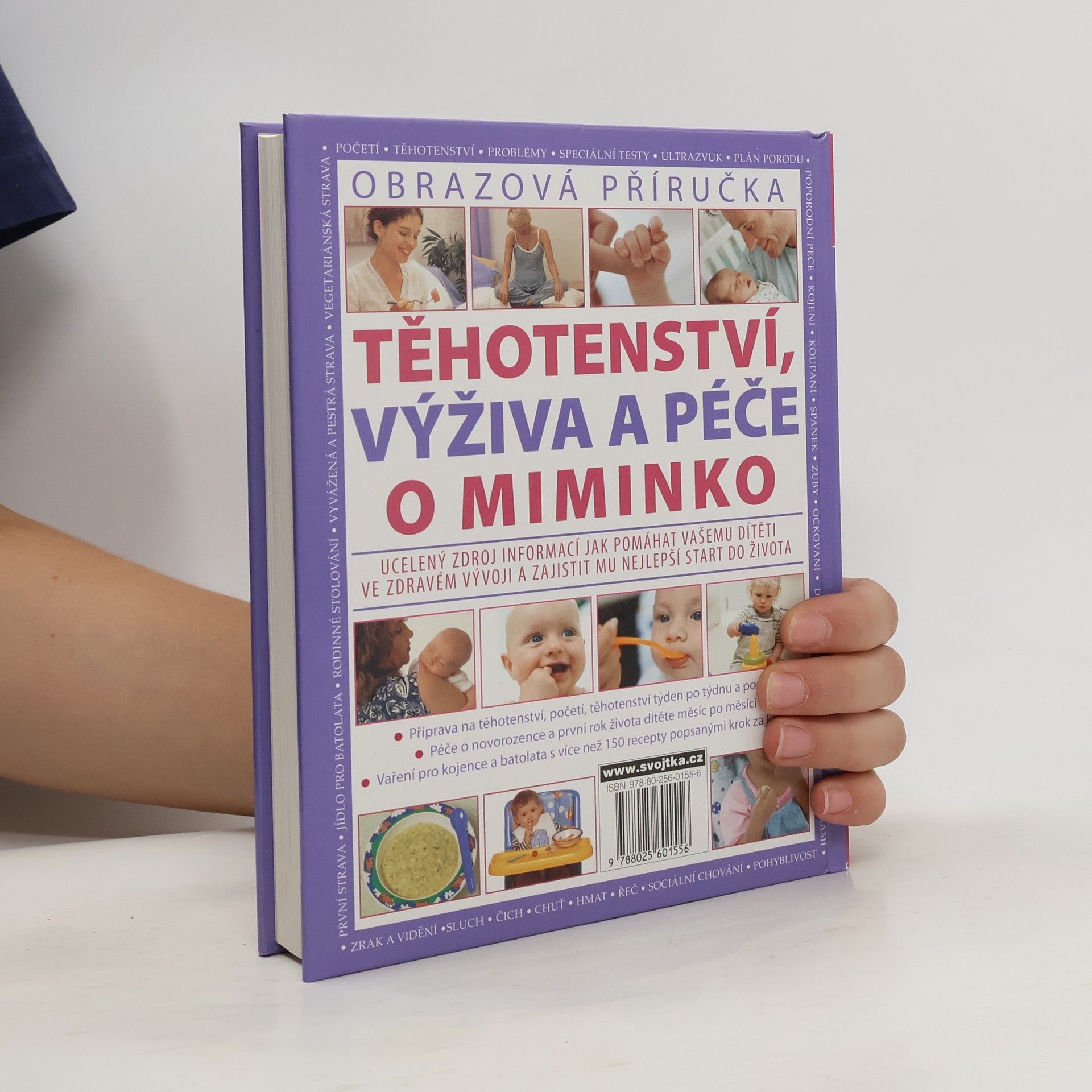 Početí, těhotenství, problémy, speciální testy, ultrazvuk, plán porodu, poporodní péče, kojení, koupání, spánek, zuby, očkování, dětská onemocnění, hraní s hračkami, zrak a vidění, sluch, čich, chuť, hmat, řeč, sociální chování, pohyblivost, první strava, jídlo pro batolata, rodinné stolování, vyvážená a pestrá strava, vegetariánská strava - všechna tato témata jsou zahrnuta do obsáhlé obrazové příručky o těhotenství od početí až po porod týden po týdnu, o péči o novorozence v prvním roce jejich života měsíc po měsíci včetně nápadu na vaření pro kojence a batolata s více než 150 recepty popsanými krok za krokem. Tato kniha je prostě uceleným zdrojem informací jak pomáhat vašemu dítěti ve zdravém vývoji a zajistit mu nejlepší start do života. ([obrazová příručka])
