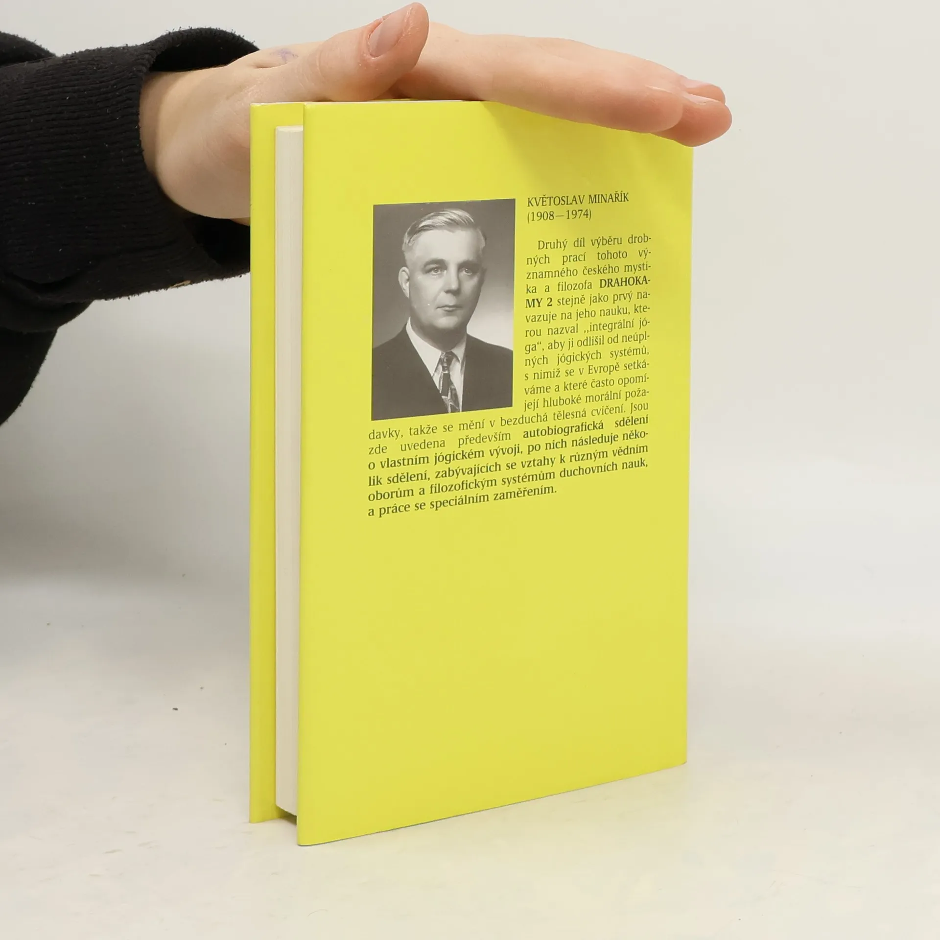Druhý díl výběru drobných prací Květoslava Minaříka Drahokamy 2 stejně jako prvý navazuje na jeho nauku, kterou nazval „integrální jóga“, aby ji odlišil od neúplných jógických systémů, s nimiž se v Evropě setkáváme a které často opomíjejí hluboké morální požadavky, takže se mění v bezduchá tělesná cvičení. Jsou zde uvedena především autobiografická sdělení o vlastním jógickém vývoji, po nich následuje několik sdělení, zabývajících se vztahy k různým vědním oborům a filozofickým systémům duchovních nauk, a práce se speciálním zaměřením. Z obsahu: ...Snažil jsem se být radostný tím víc, čím více jsem se zříkal světa. Tím se mi podařilo udělat svou náladu nezávislou na zevních podmínkách. Komu se podaří udržovat svou náladu nezávislou na zevních podmínkách, stane se velmi citlivým na prostředí i na jednotlivé lidi. Proto jsem začal poznávat, že nálady jsou ovlivňovány vlnobitím vlivů, které působí na každého jednotlivce. Z toho jsem se poučil, že své duševní stavy musím chránit nejen před nezřetelnými změnami svého vlastního nitra, nýbrž i před zesílenými vlivy prostředí. Když jsem se naučil chránit před ovlivňujícími momenty prostředí, poznal jsem, že stejně jako prostředí ovlivňuje jednotlivce, jednotlivec může ovlivňovat prostředí. Poznal jsem, že nasadí-li někdo proti velmi silnému vlivu prostředí příslušný druh vůlí mocně udržované nálady, projeví se to v přenášení jeho nálady na společnost, v níž se nachází...