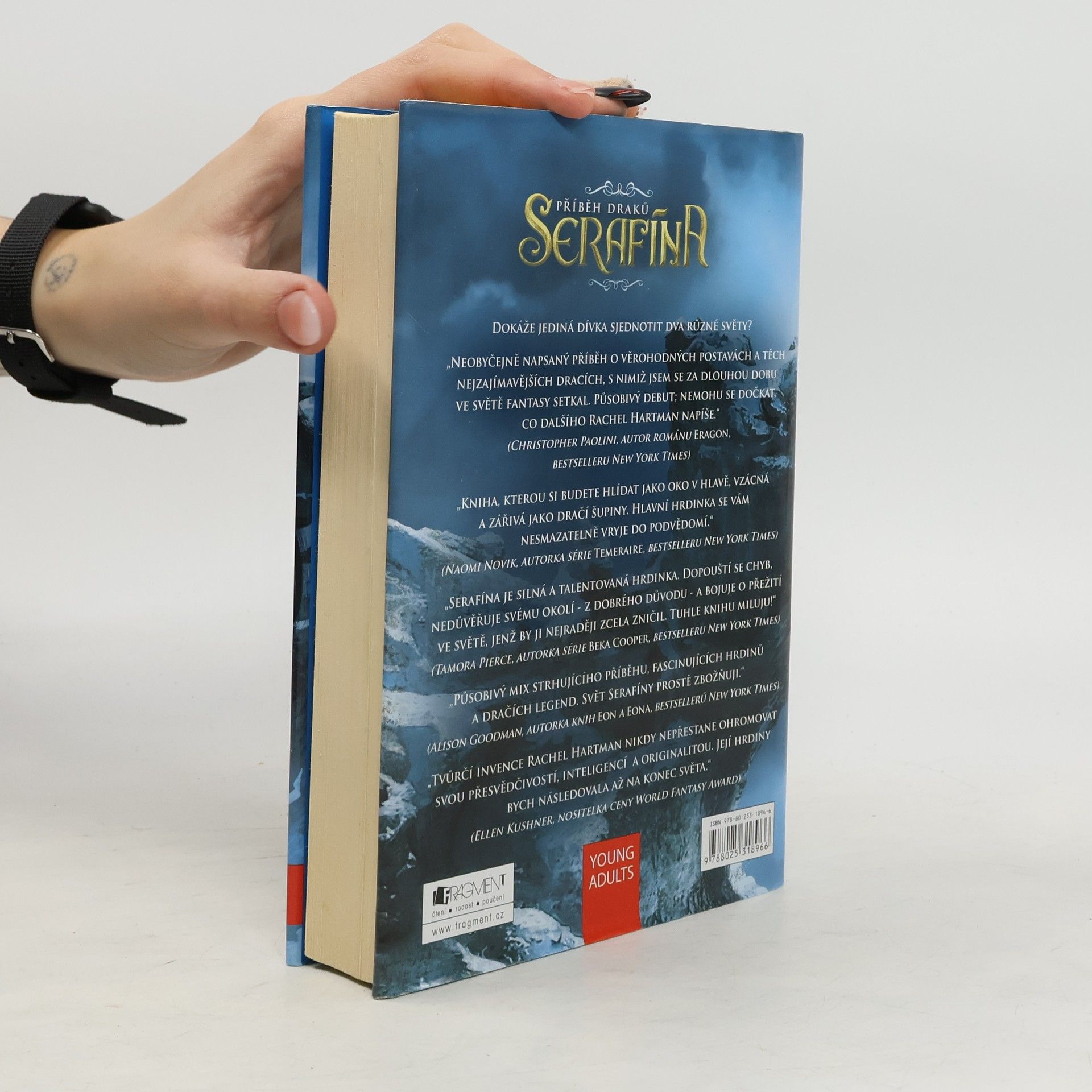 V království Gored žijí lidé s draky v míru už čtyřicet let, vzájemná nedůvěra však přetrvává. Draci jsou schopni brát na sebe lidskou podobu, ale přestože mají neobyčejně pronikavý rozum, lidské emoce jim zůstávají záhadou. Dívka Serafína, nadaná hudebnice, nechová důvěru ani k jedné z obou stran. Když je zavražděn příslušník královské rodiny a podezření padá na draky, v ohrožení se ocitá i její vlastní tajemství, které by ji mohlo stát život… Existuje hodně knih o dracích. Debut spisovatelky Rachel Hartmanové nad nimi ale vyniká. Trnitá cesta Serafíny za poznáním a přijetím sebe sama se vám vryje pod kůži.