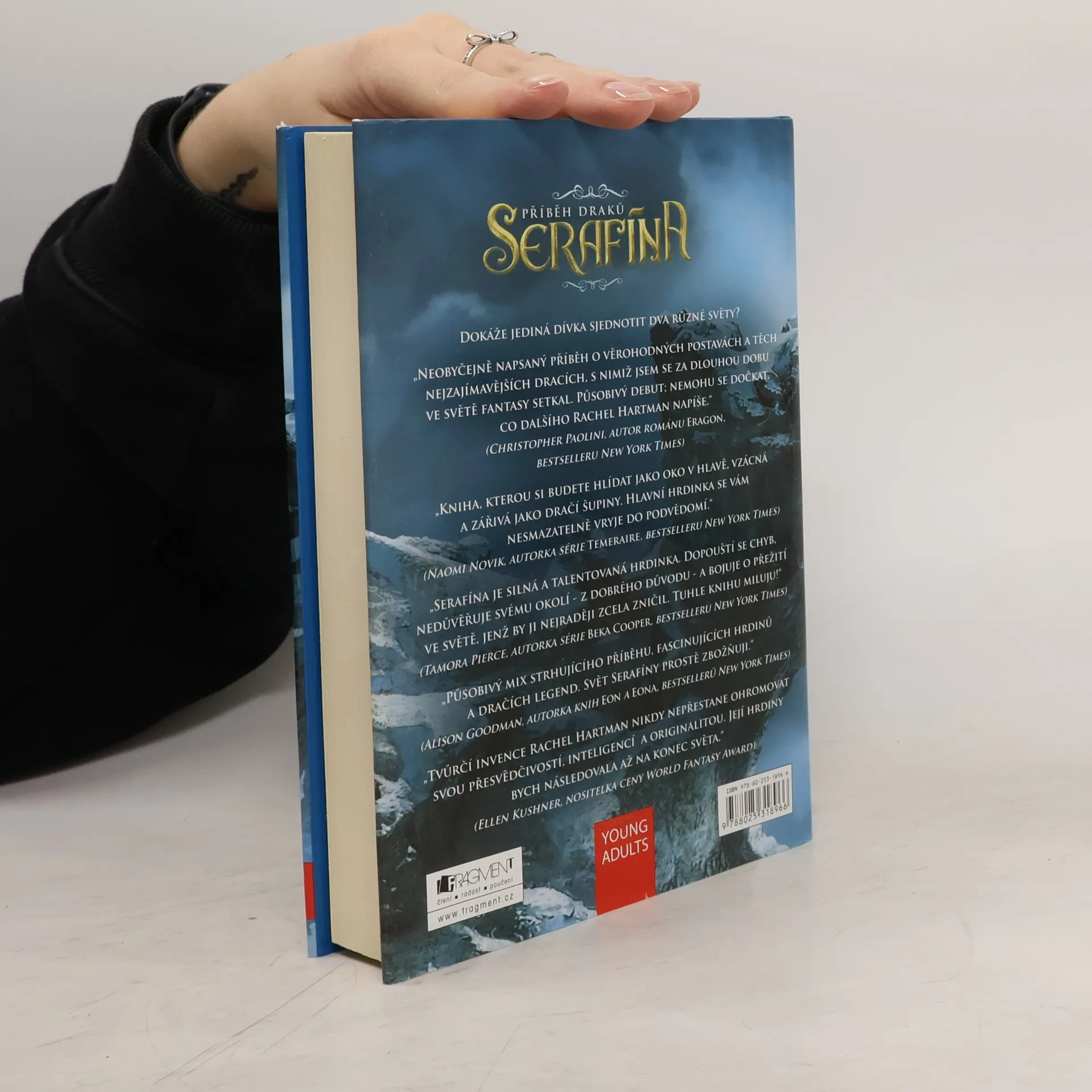 V království Gored žijí lidé s draky v míru už čtyřicet let, vzájemná nedůvěra však přetrvává. Draci jsou schopni brát na sebe lidskou podobu, ale přestože mají neobyčejně pronikavý rozum, lidské emoce jim zůstávají záhadou. Dívka Serafína, nadaná hudebnice, nechová důvěru ani k jedné z obou stran. Když je zavražděn příslušník královské rodiny a podezření padá na draky, v ohrožení se ocitá i její vlastní tajemství, které by ji mohlo stát život… Existuje hodně knih o dracích. Debut spisovatelky Rachel Hartmanové nad nimi ale vyniká. Trnitá cesta Serafíny za poznáním a přijetím sebe sama se vám vryje pod kůži.