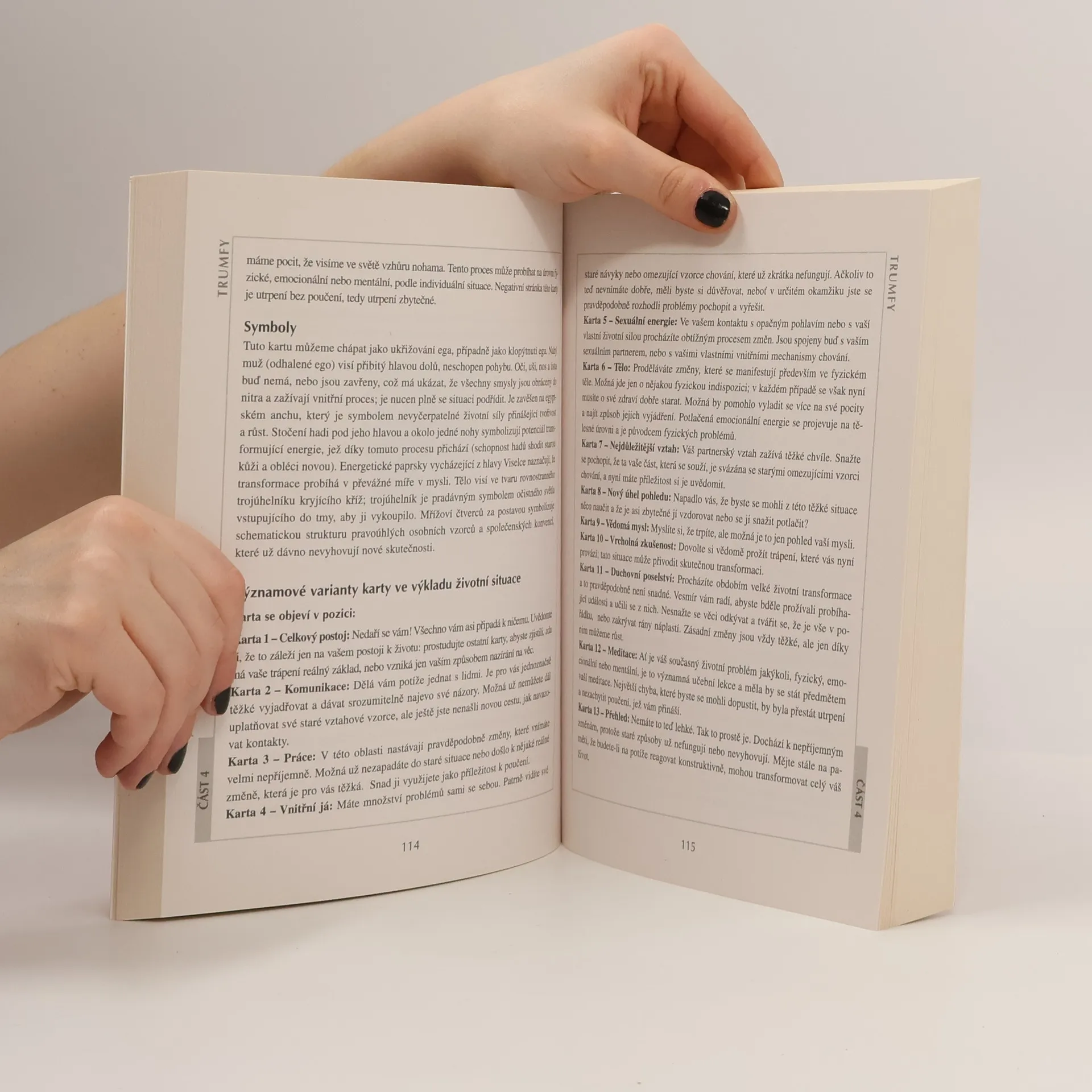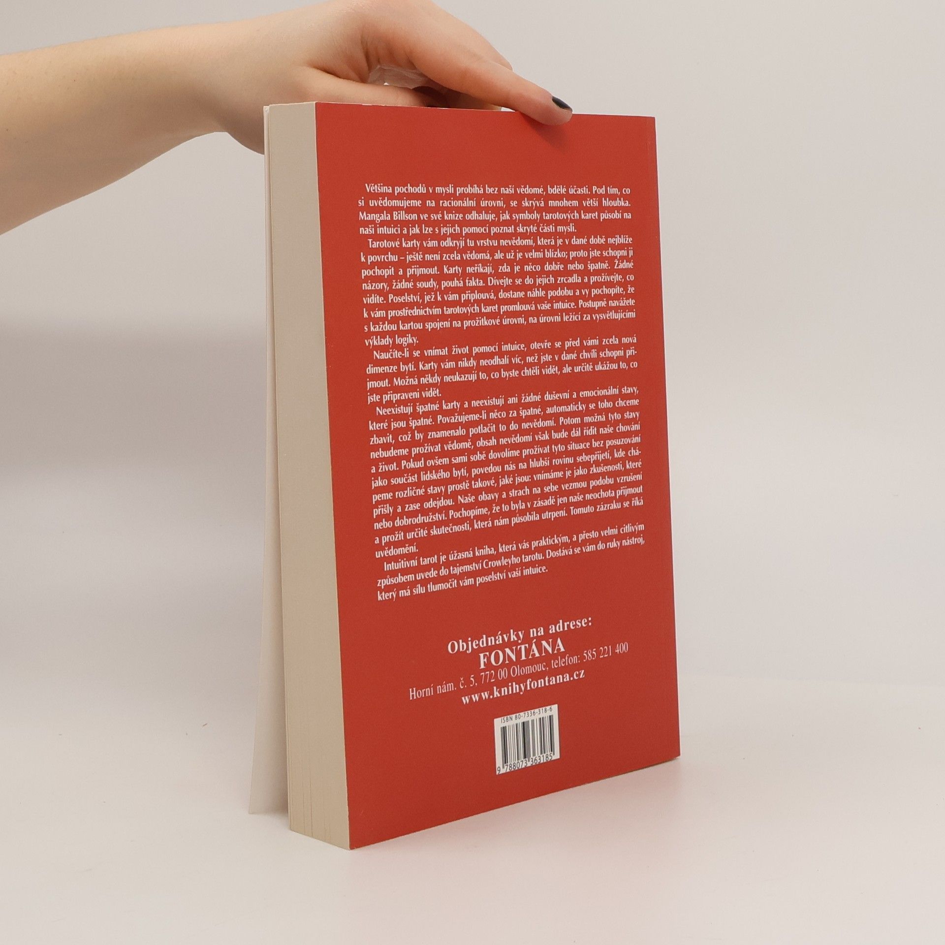 Většina pochodů v mysli probíhá bez naší vědomé účasti, a pod racionálním povrchem se skrývá větší hloubka. Mangala Billson ve své tarotové příručce odhaluje, jak karetní symboly ovlivňují naši intuici a jak mohou odhalit skryté části mysli. Tarotové karty vám pomohou pochopit podvědomí, které je blízko k povrchu – je to něco, co ještě není zcela vědomé, ale je připraveno k přijetí. Karty nehodnotí, pouze odhalují fakta. Dívejte se do jejich zrcadla a prožívejte, co vidíte. Poselství se formuje a vaše intuice s vámi komunikuje skrze symboly. Navážete spojení s každou kartou na prožitkové úrovni, která přesahuje logické výklady. Naučíte-li se vnímat život intuicí, otevře se vám nová dimenze bytí. Karty vám neodhalí víc, než jste schopni přijmout. I když někdy neukazují to, co byste chtěli vidět, vždy odhalí to, co jste připraveni vidět. Neexistují špatné karty ani negativní duševní stavy; pokud něco považujeme za špatné, snažíme se to potlačit, což ovlivňuje naše chování. Dovolíme-li si prožívat tyto situace bez posuzování, vedou nás k hlubšímu sebepřijetí. Naše obavy se promění v vzrušení a uvědomění, že utrpení pramení z naší neochoty přijmout realitu. Tato kniha vás prakticky a citlivě uvede do tajemství Crowleyho tarotu a poskytne nástroj pro interpretaci poselství vaší intuice.