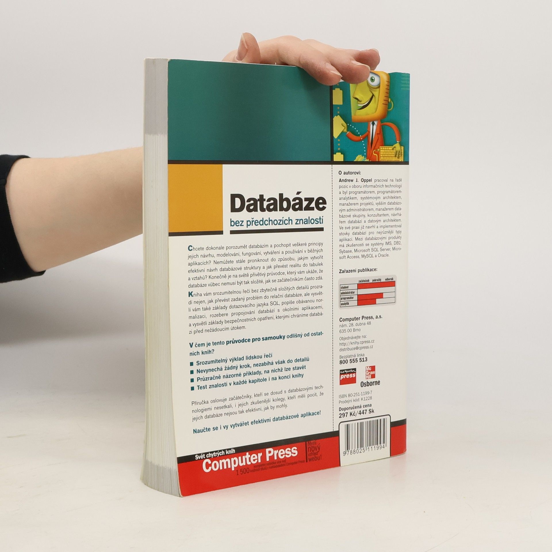 Chcete dokonale porozumět databázím a pochopit veškeré principy jejich návrhu, modelování, fungování, vytváření a používání v běžných aplikacích? Nemůžete stále proniknout do způsobu, jakým vytvořit efektivní návrh databázové struktury a jak převést realitu do tabulek a vztahů? Konečně je na světě přívětivý průvodce, který vám ukáže, že databáze vůbec nemusí být tak složité, jak se začátečníkům často zdá. Kniha vám srozumitelnou řečí bez zbytečně složitých detailů prozradí nejen, jak převést zadaný problém do relační databáze, ale vysvětlí vám také základy dotazovacího jazyka SQL, popíše obávanou normalizaci, rozebere propojování databází s okolními aplikacemi, a vysvětlí základy bezpečnostních opatření, kterými chráníme databázi před nežádoucím útokem.