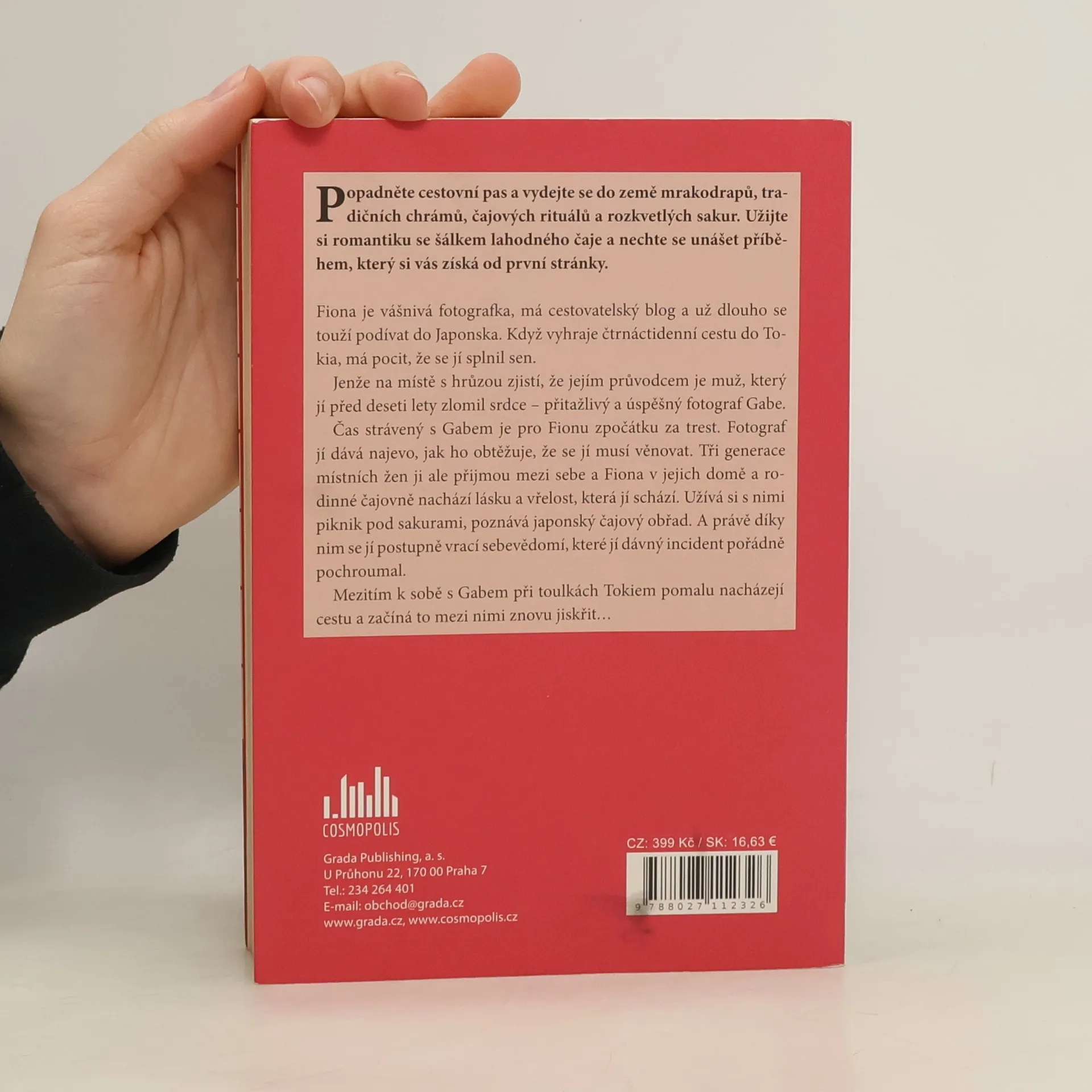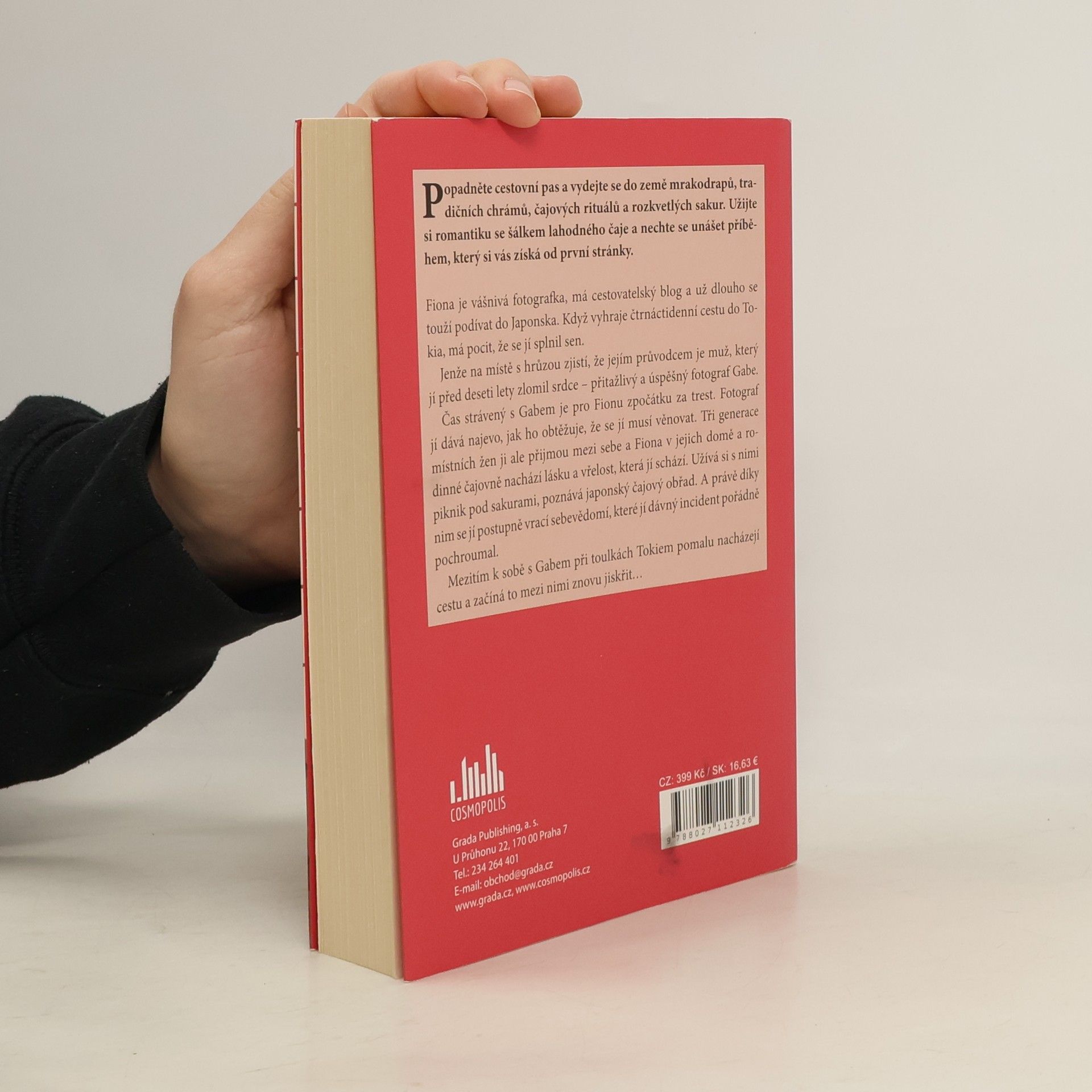 Popadněte cestovní pas a vydejte se do země mrakodrapů, tradičních chrámů, čajových rituálů a rozkvetlých sakur. Užijte si romantiku s šálkem lahodného čaje a nechte se unášet příběhem, který si vás získá od první stránky. Fiona je vášnivá fotografka, má cestovatelský blog a už dlouho se touží podívat do Japonska. Když vyhraje čtrnáctidenní cestu do Tokia, má pocit, že se jí splnil sen. Jenže na místě s hrůzou zjistí, že jejím průvodcem je muž, který jí před deseti lety zlomil srdce – přitažlivý a úspěšný fotograf Gabe. Čas strávený s Gabem je pro Fionu zpočátku za trest. Fotograf jí dává najevo, jak ho obtěžuje, že se jí musí věnovat. Tři generace místních žen ji ale přijmou mezi sebe a Fiona v jejich domě a rodinné čajovně nachází lásku a vřelost, která jí schází. Užívá si s nimi piknik pod sakurami, poznává pravý japonský čajový obřad. A právě díky nim se jí postupně vrací sebevědomí, které jí dávný incident pořádně pochroumal. Mezitím k sobě s Gabem při toulkách Tokiem pomalu nacházejí cestu a začíná to mezi nimi znovu jiskřit…