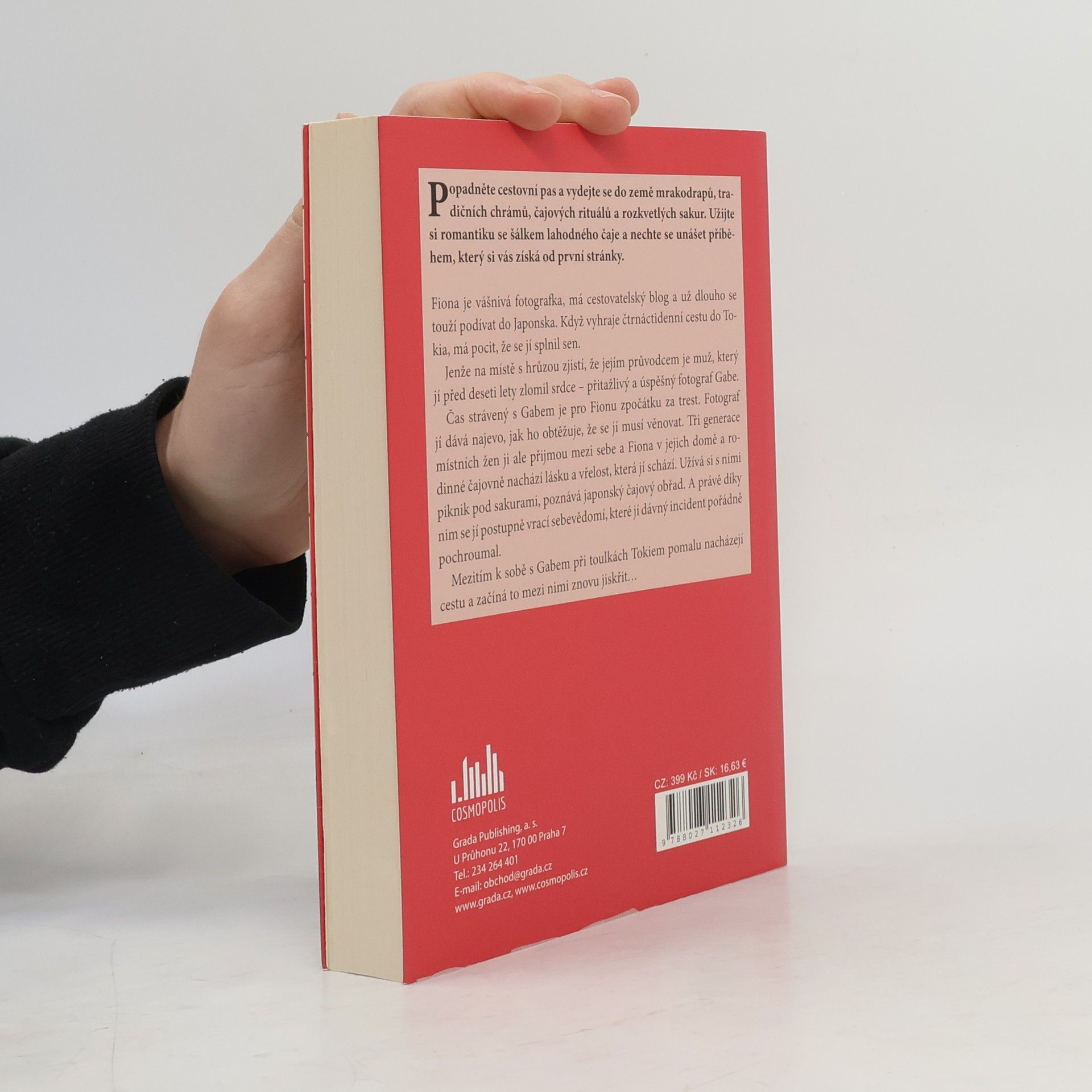 Popadněte cestovní pas a vydejte se do země mrakodrapů, tradičních chrámů, čajových rituálů a rozkvetlých sakur. Užijte si romantiku s šálkem lahodného čaje a nechte se unášet příběhem, který si vás získá od první stránky. Fiona je vášnivá fotografka, má cestovatelský blog a už dlouho se touží podívat do Japonska. Když vyhraje čtrnáctidenní cestu do Tokia, má pocit, že se jí splnil sen. Jenže na místě s hrůzou zjistí, že jejím průvodcem je muž, který jí před deseti lety zlomil srdce – přitažlivý a úspěšný fotograf Gabe. Čas strávený s Gabem je pro Fionu zpočátku za trest. Fotograf jí dává najevo, jak ho obtěžuje, že se jí musí věnovat. Tři generace místních žen ji ale přijmou mezi sebe a Fiona v jejich domě a rodinné čajovně nachází lásku a vřelost, která jí schází. Užívá si s nimi piknik pod sakurami, poznává pravý japonský čajový obřad. A právě díky nim se jí postupně vrací sebevědomí, které jí dávný incident pořádně pochroumal. Mezitím k sobě s Gabem při toulkách Tokiem pomalu nacházejí cestu a začíná to mezi nimi znovu jiskřit…