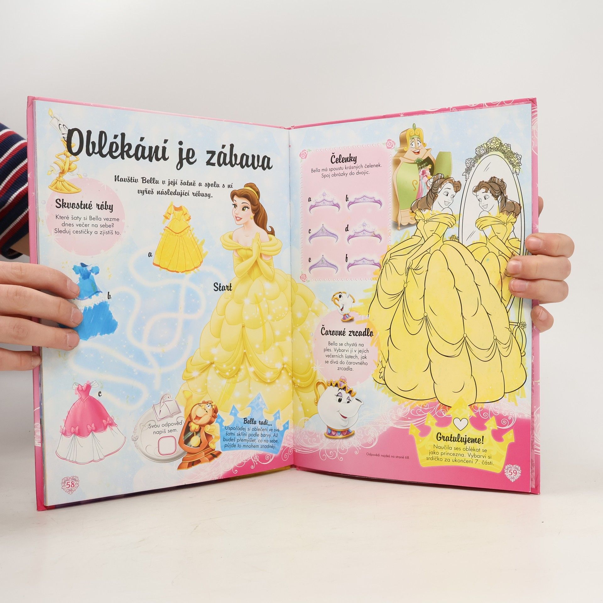 Locika, Šípková Růženka, Bella, Tiana, Popelka, Ariel, Sněhurka a Jasmína jsou nejznámější princezny na světě. Připravily pro nejmenší čtenářky krásnou knížku plnou příběhů, omalovánek, hádanek i návodů na celý příští rok, od ledna až do prosince.