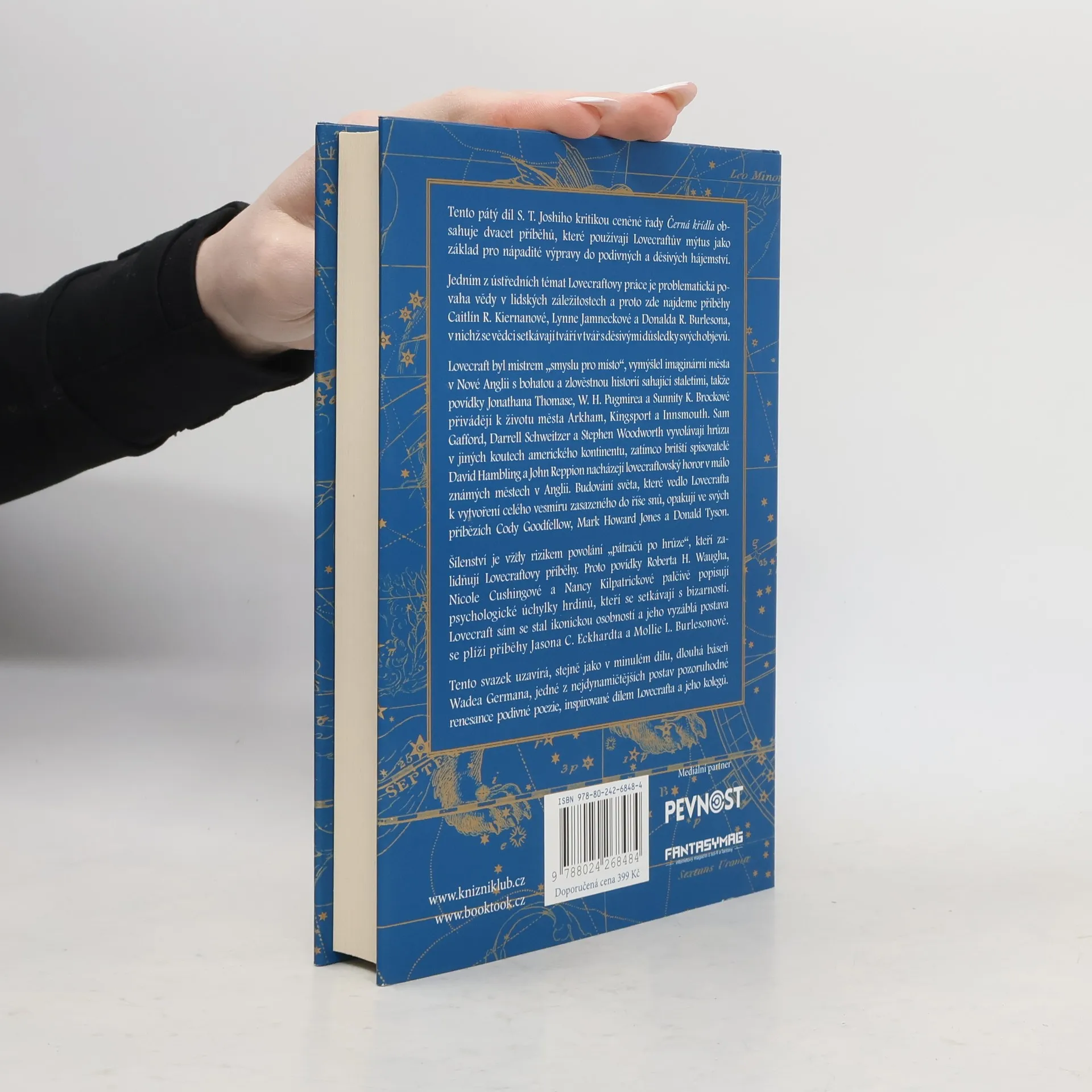 Již pátá kniha oceňované antologie, která představuje ty nejlepší moderní lovecraftovské povídky. S. T. Joshi, největší žijící odborník na Lovecrafta a jeho dílo, opět namíchal delirický koktejl starých mistrů, vycházejících hvězd i jmen spojených doposud s hororovým undergroundem. Skvělé čtení pro fanoušky díla H. P. Lovecrafta, vesmírné hrůzy i moderního hororu.