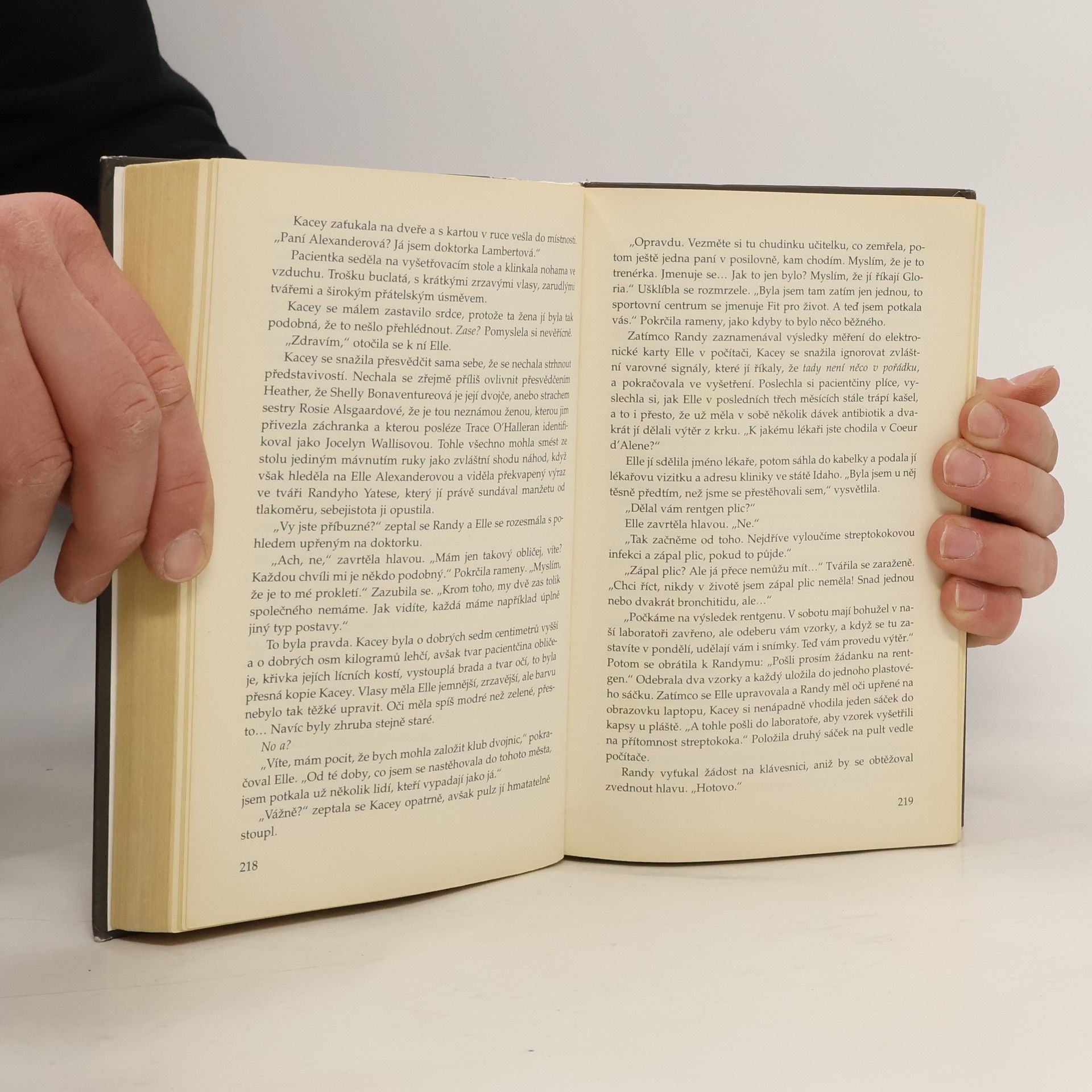 Doktorka Kacey Lambertová dobře ví, že je nápadně podobná jisté herečce z béčkových filmů, vždyť jí to často lidé předhazují. Zpráva o tom, že herečka byla zavražděna, s ní proto docela otřese, ale ani ve snu by ji nenapadlo, že tato děsivá událost bude mít pokračování – a že se promítne i do jejího života. Když je po několika dnech přivezena na jednotku intenzivní péče mladá učitelka, která se Kacey také nápadně podobá, stále ještě to vypadá jako podivná shoda náhod. A pak žena zemře a při pitvě jsou v jejím těle nalezeny stopy po jedu… A zatímco se policejní vyšetřovatelky Alvarezová a Pescoliová marně snaží najít motiv vraždy, Kacey začíná tušit, že mezi mrtvými ženami existují jisté spojitosti – a že jedno z těch pojítek by mohlo vést i k ní. Je to jen výplod jejího strachu, anebo má oprávněný důvod k obavám? Co když je i ona na seznamu příštích obětí vraha, který je stále drzejší a brutálnější? Co když i ona byla podle jeho vyšinuté mysli zrozena k smrti?