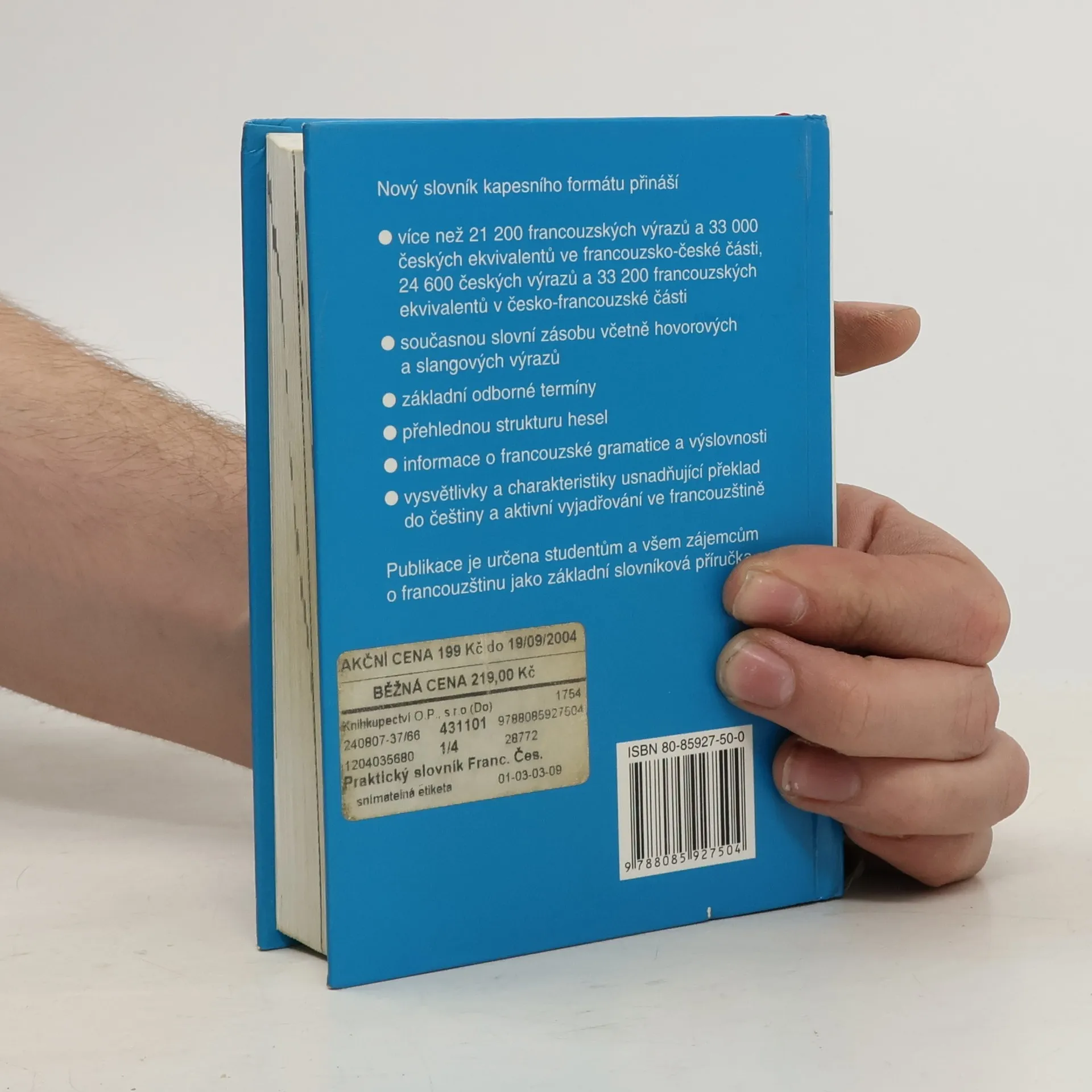 Slovník kapesního formátu je určen studentům všech typů škol a kursů i všem zájemcům o francouzštinu jako základní slovníková příručka. Slovník obsahuje více než 21 000 francouzských výrazů a 33 000 českých ekvivalentů ve francouzsko-české části, 24 600 českých výrazů a 33 000 francouzských ekvivalentů v česko-francouzské části.