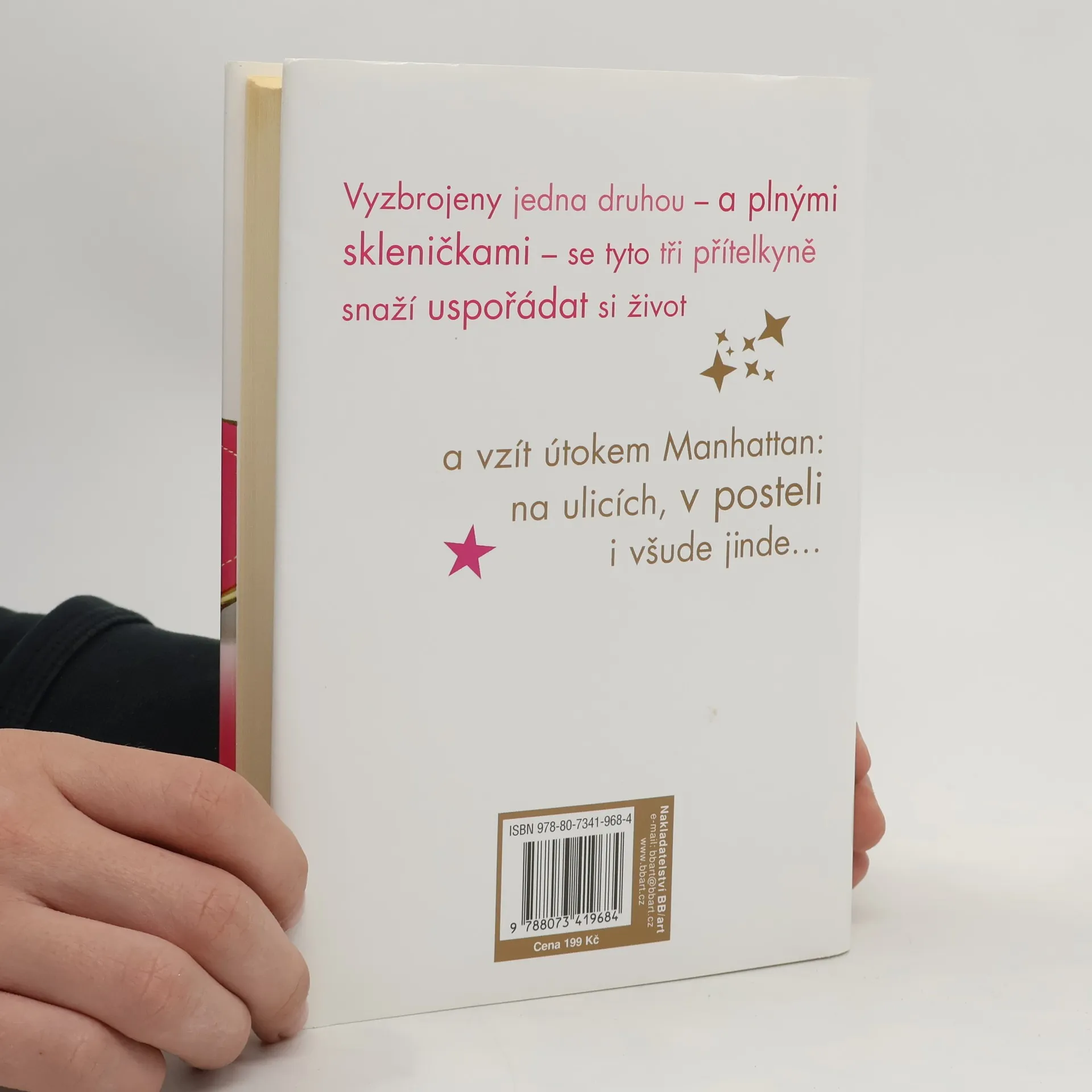 Autorka bestsellerů Zoey McGiureová si je naprosto jistá, že jediný muž, který ji ještě někdy uvidí nahou, bude její gynekolog. Rozhodně ne ten mizera její bývalý! Bez peněz a bydlení se Zoey vrací do města, které nikdy nespí… a kde číhají maléry za každým rohem… Maléry patří k oblíbeným koníčkům Jade Cohenové. Realitní zprostředkovatelka s havraními vlasy pomáhá klientům „pokřtít“ každou místnost jejich nádherných luxusních bytů, ale sama odmítá převzít natrvalo klíč. Proč hledat velkou lásku, když stačí uspokojit potřeby těla?Afroamerická herečka Marielle Griffinová nemá na muže čas. Příliš ji zaměstnává budování kariéry a touha stát se slavnou muzikálovou hvězdou na Broadwayi. Čekání na tento velký zlom si krátí jako číšnice v baru módního klubu Vermillion a nadějemi, že jí zavolá její agent – a jeden rozkošný majitel nového klubu… Vyzbrojeny jedna druhou – a plnými skleničkami – se tyto tři přítelkyně snaží uspořádat si život a vzít útokem Manhattan: na ulicích, v posteli i všude jinde…