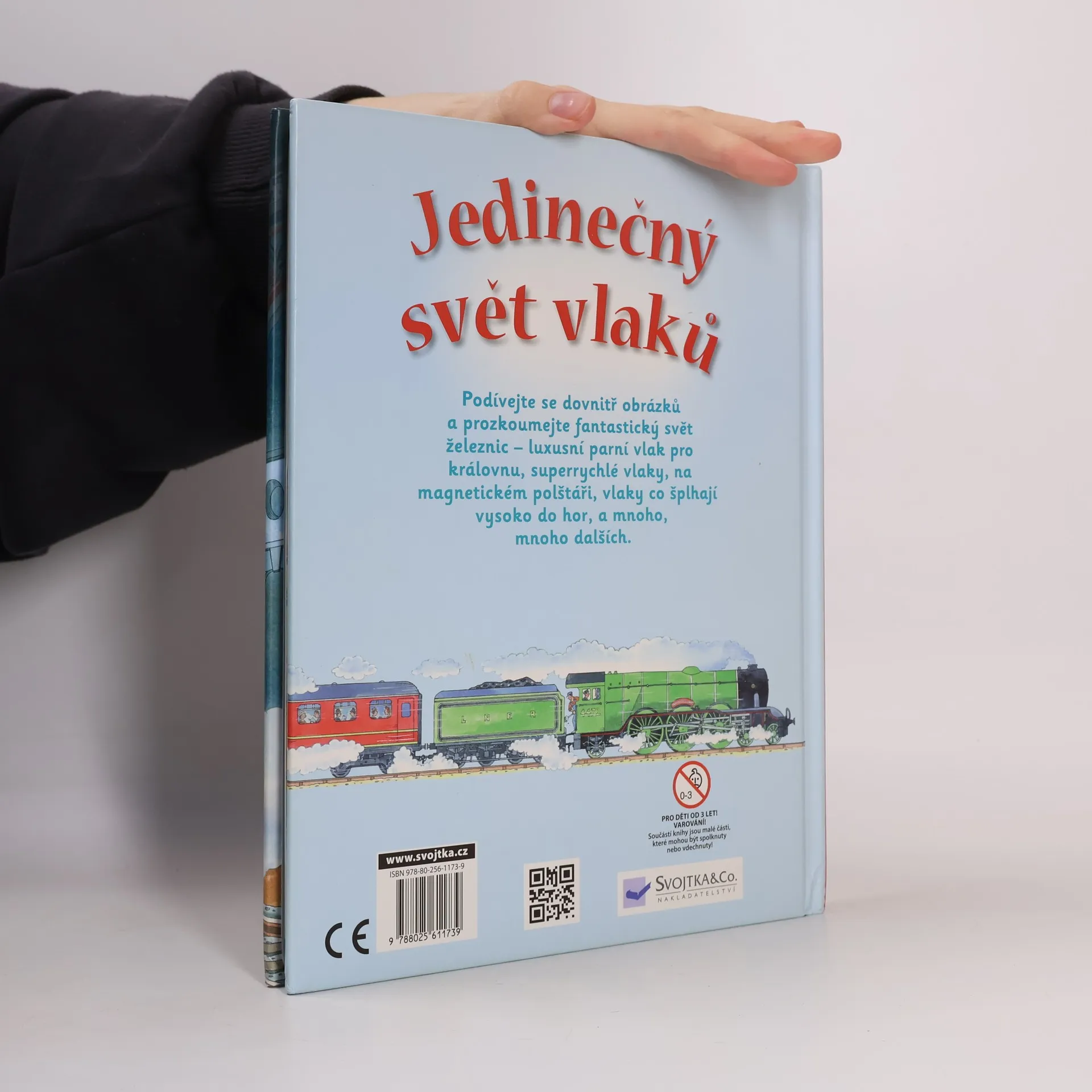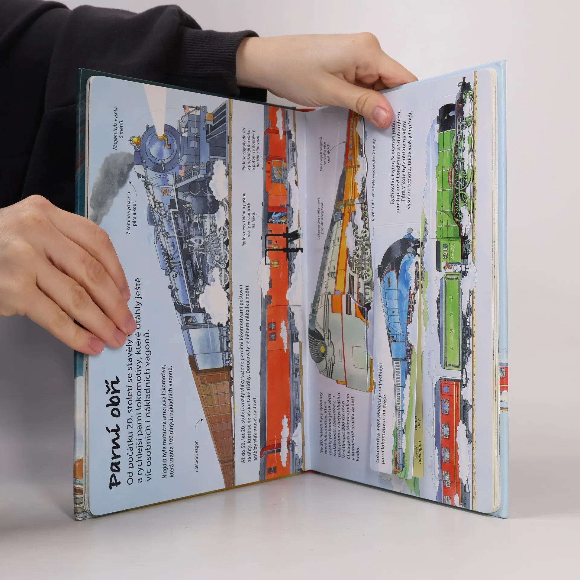 Víte, jak se cestovalo vlaky ve 30. letech? Rádi byste nahlédli do Orient expresu nebo do vlaku královny Viktorie? Víte jaké byly největší parní lokomotivy a jak vypadaly ty nejstarší? Chcete se dozvědět něco zajímavého o vlacích s dieselovými motory a vlacích jedoucími na eletkřinu? Nebo vás fascinují vysokorychlostní vlaky či zvláštní tratě jako jsou třeba „zubačky“? Podívejte se pod více než 60 odkrývacích okének této knihy a prozkoumejte jedinečný svět vlaků. Najdete zde mnoho zajímavostí o parních i superrychlých vlacích, o vlacích co šplhají vysoko do hor, a o mnoha, mnoha dalších.