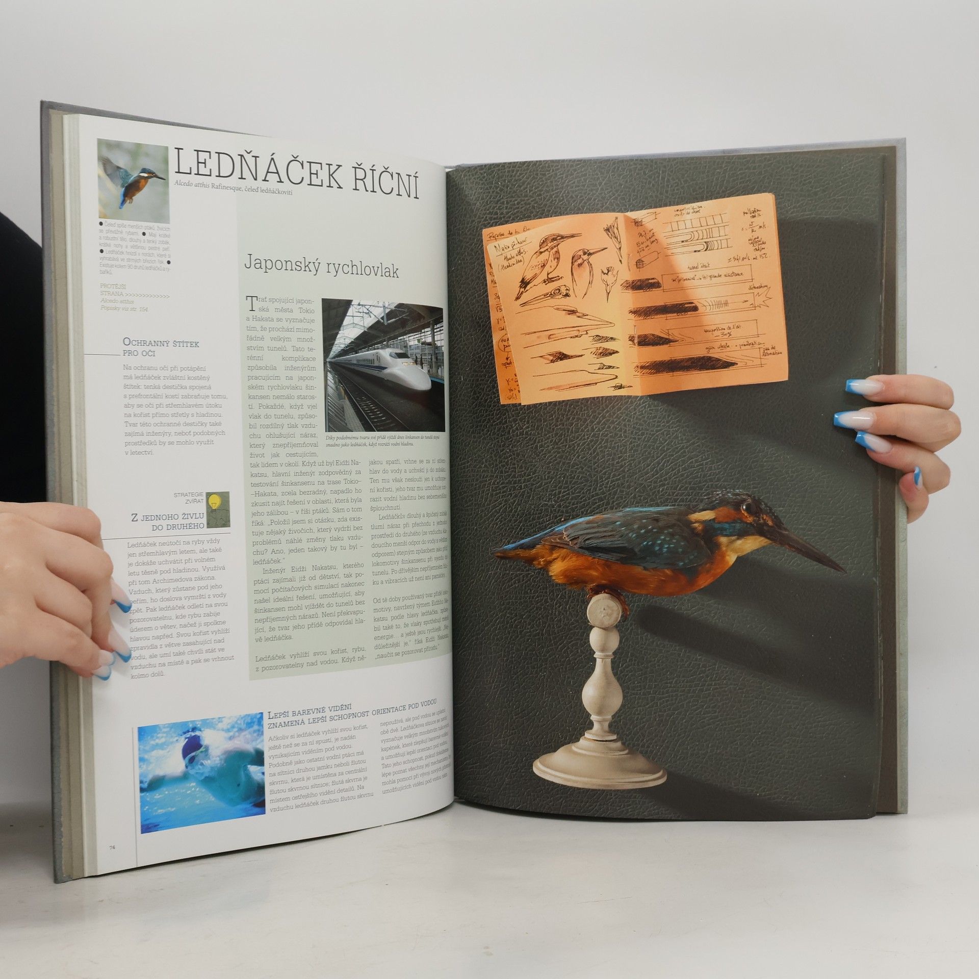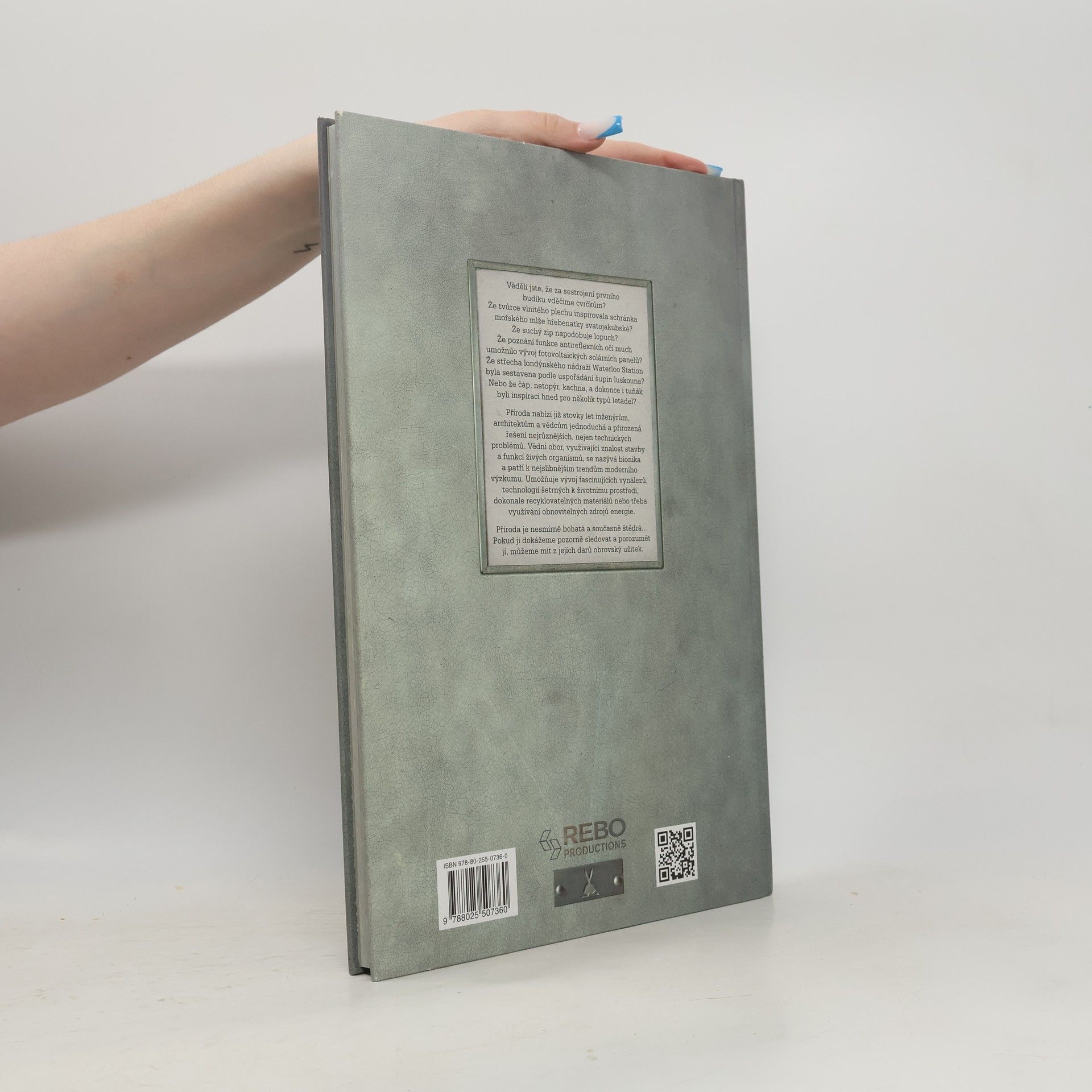 Věděli jste, že suchý zip je výsledkem zkoumání známé rostliny – lopuchu? Že za sestrojení prvního budíku vděčíme cvrčkům nebo že poznání funkce antireflexních očí much umožnilo vývoj fotovoltaických solárních panelů? Zvířata i rostliny již po mnoho století pomáhají hledat jednoduchá a přirozená řešení nejrůznějších technických problémů bezpočtu inženýrů, architektů a vědců, kteří je dokážou pozorně sledovat. Zvláštní vědní obor zabývající se touto problematikou, které říkáme bionika, patří k nejslibnějším trendům moderního výzkumu. Umožňuje vývoj fascinujících vynálezů, technologií šetrných k životnímu prostředí, dokonale recyklovatelných materiálů, využívání obnovitelných zdrojů energie… Příroda je nesmírně bohatá a současně štědrá, a pokud ji dokážeme pozorně sledovat a porozumět jí, můžeme mít z jejích darů obrovský užitek. abecední řazení jednotlivých hesel podrobný úvod – vhled do bioniky a její historie zasvěcené a zároveň maximálně srozumitelné texty velké množství nádherných barevných fotografií perokresby s deníku terénního zoologa – nákresy, schémata a popisky.
