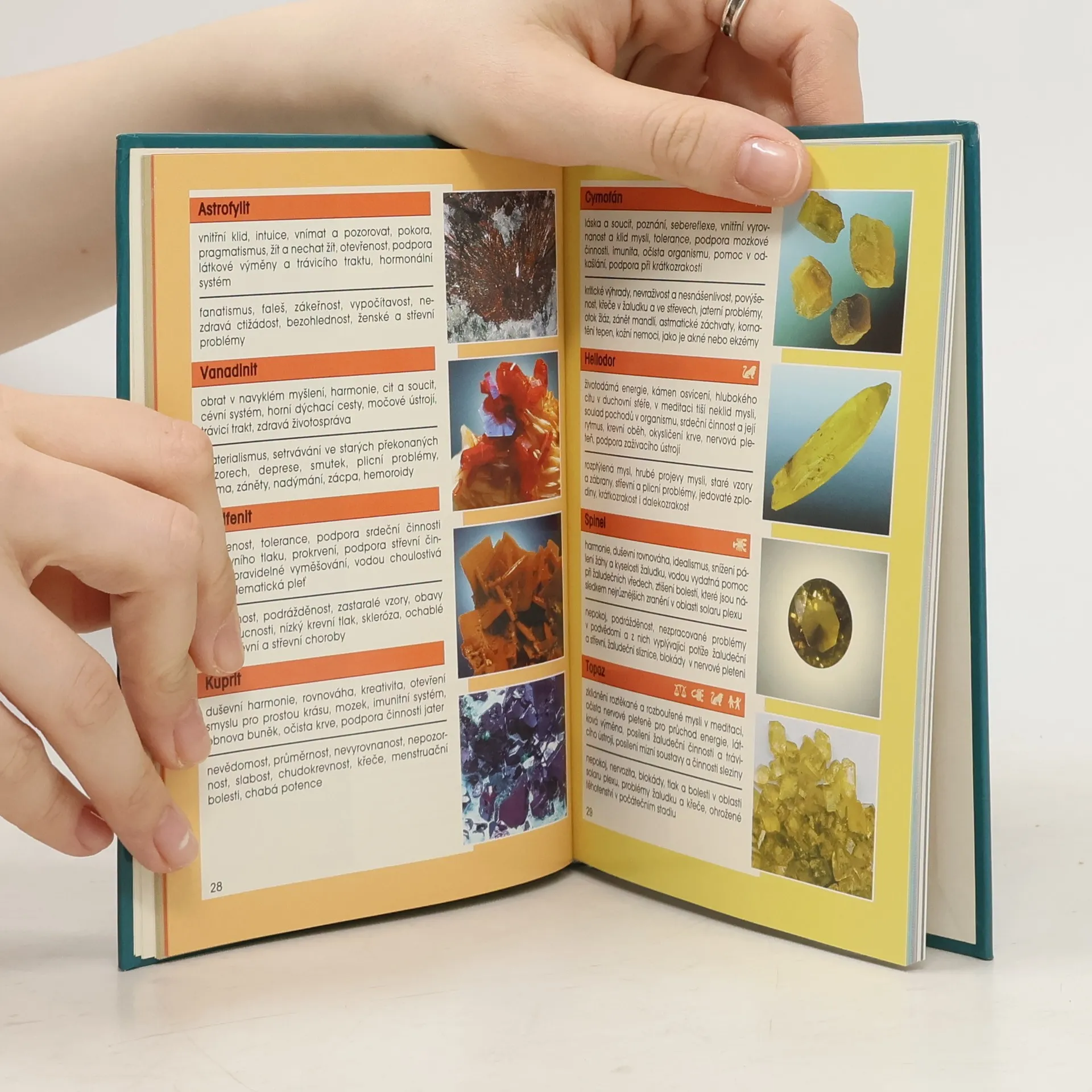 Tato kniha slouží k rychlé orientaci v léčivých kamenech. 328 druhů je seřazeno podle barev a současně čaker, jež barvám odpovídají. Tam, kde existuje více barevných odrůd, je kámen zařazen buď podle barvy nejtypičtější, nebo ve skupině kamenů vícebarevných. U každého kamene se uvádí jeho možné léčivé působení duchovní, duševní, mentální a zdravotní.