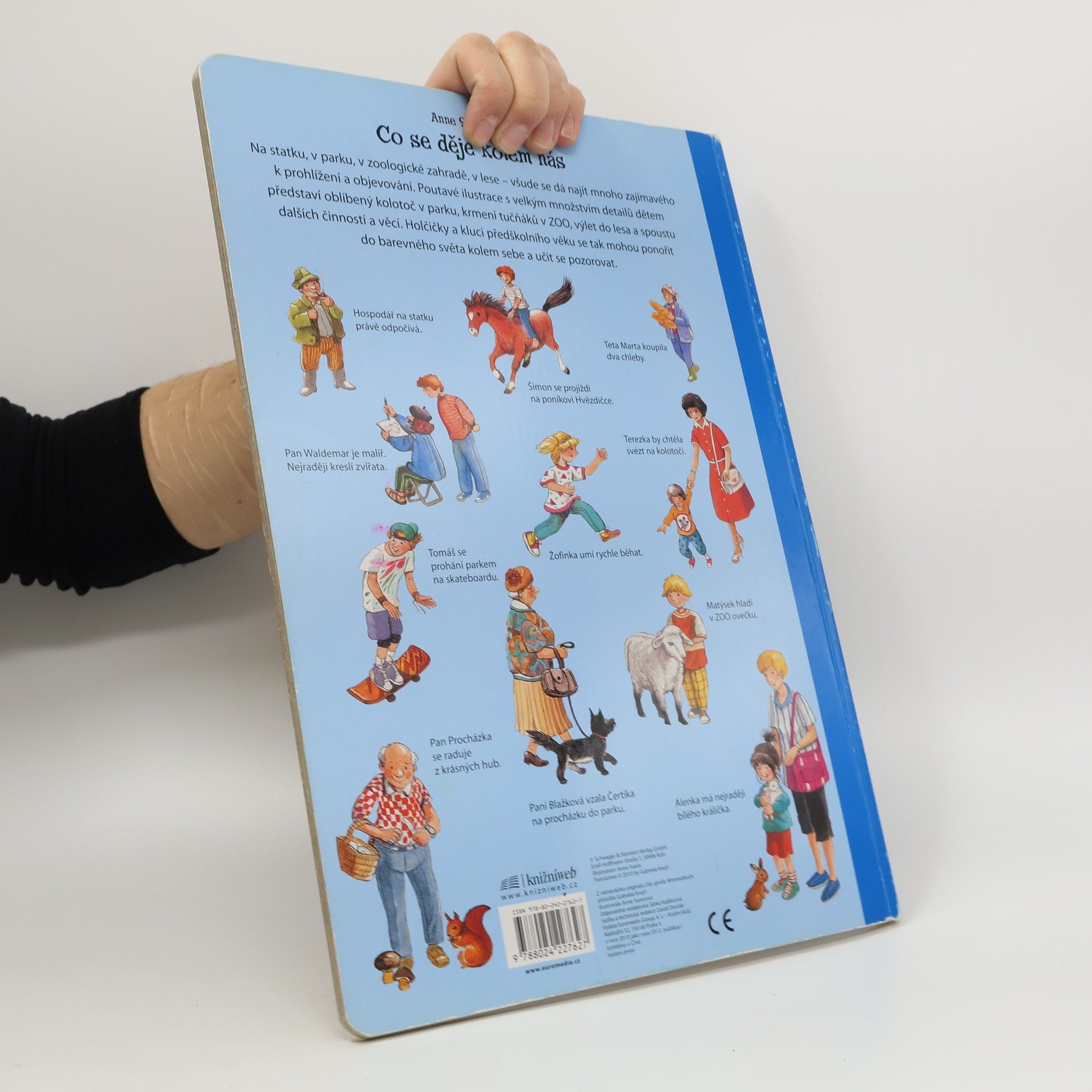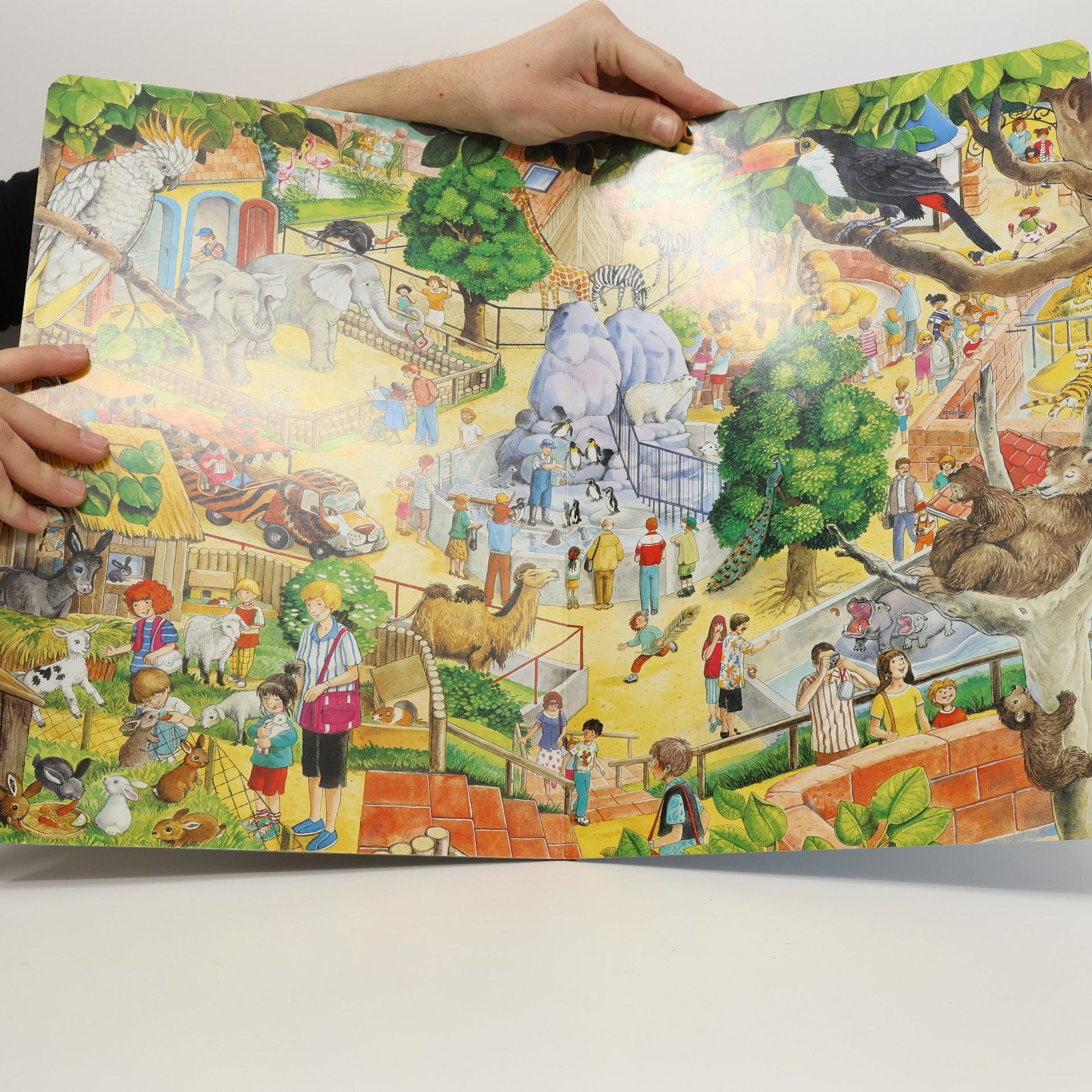 Na statku, v parku, v zoologické zahradě, v lese – všude se dá najít mnoho zajímavého k prohlížení a objevování. Poutavé ilustrace s velkým množstvím detailů dětem představí oblíbený kolotoč v parku, krmení tučňáků v ZOO, výlet do lesa a spoustu dalších činností a věcí. Holčičky a kluci předškolního věku se tak mohou ponořit do barevného světa kolem sebe a učit se pozorovat.