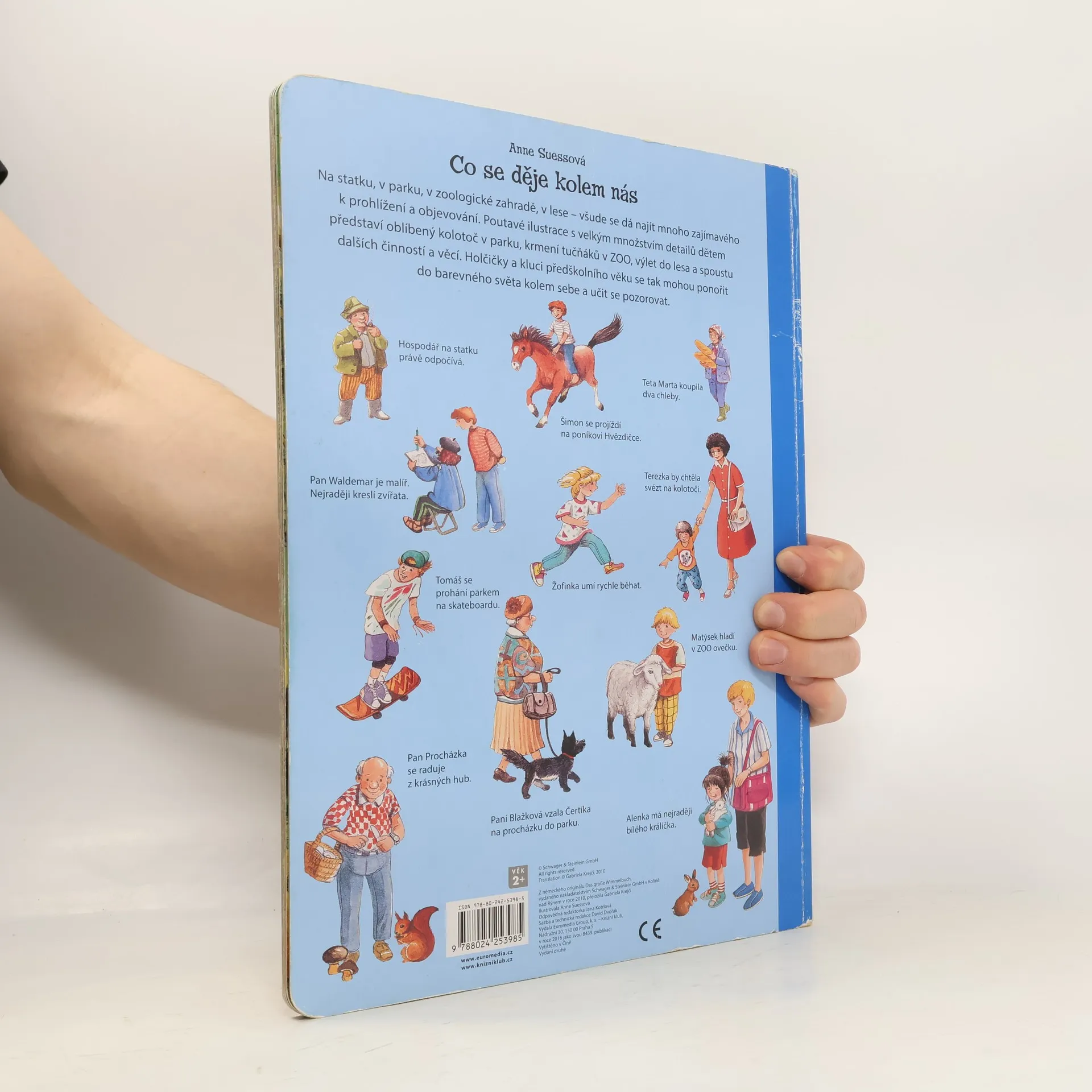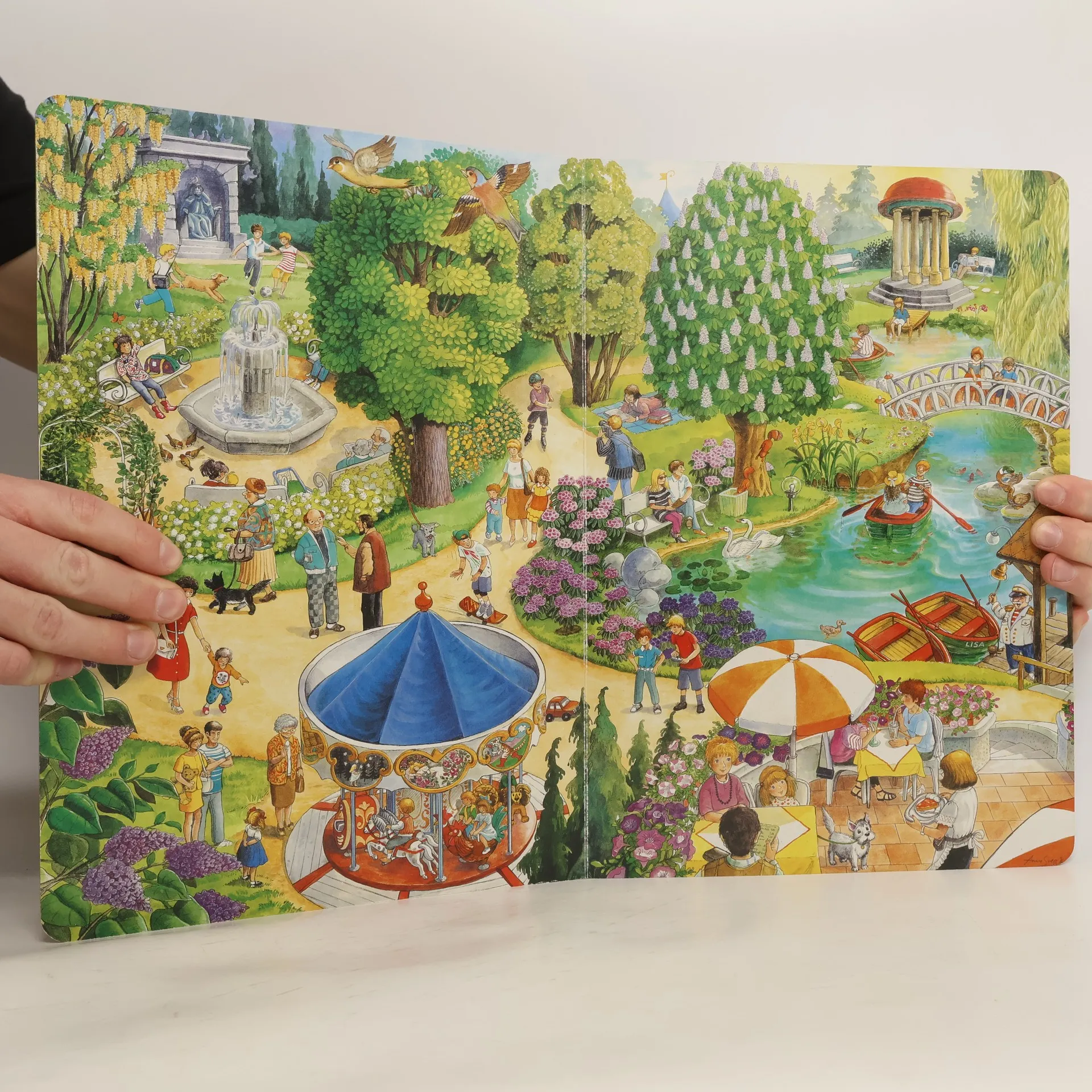 Na statku, v parku, v zoologické zahradě, v lese – všude se dá najít mnoho zajímavého k prohlížení a objevování. Poutavé ilustrace s velkým množstvím detailů dětem představí oblíbený kolotoč v parku, krmení tučňáků v ZOO, výlet do lesa a spoustu dalších činností a věcí. Holčičky a kluci předškolního věku se tak mohou ponořit do barevného světa kolem sebe a učit se pozorovat.
