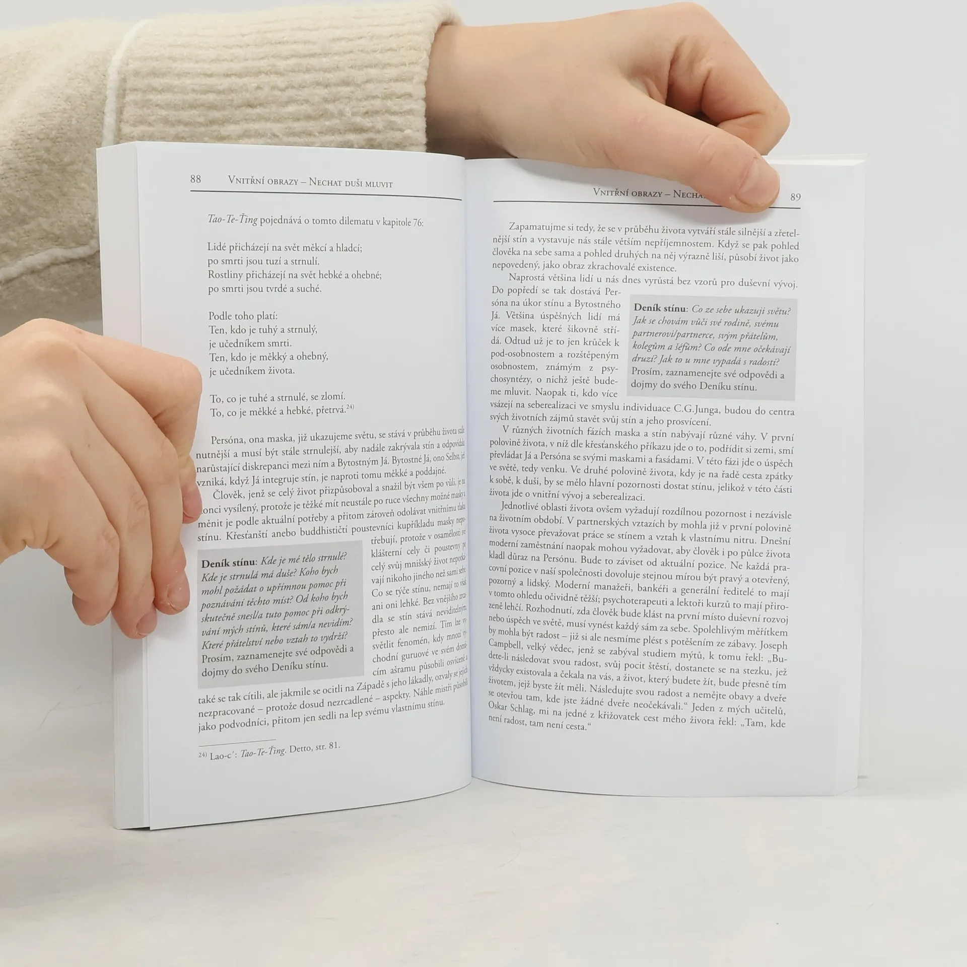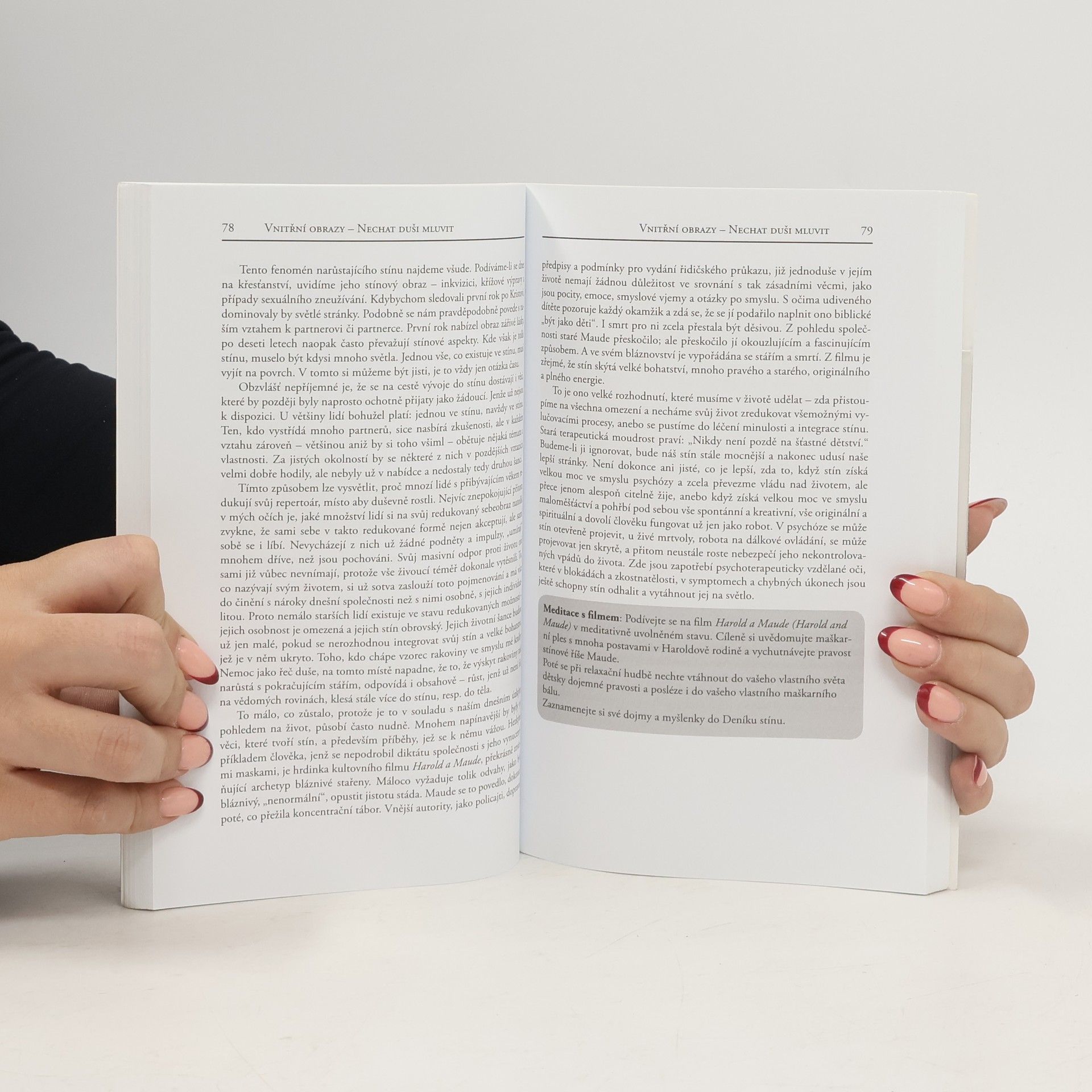 Podle učení C. G. Junga je stínem naše podvědomí. Je to ta osobnost, kterou bychom nejraději nebyli, ale kterou se nakonec stát musíme, když chceme být celiství. Náš stín, tedy naší „temnou stránku“, prociťujeme velmi ambivalentně: je nám odporná, ale zároveň nás fascinuje. Práce se stínem slouží tomu, abychom se stali vědomými a je tedy v pravém slova smyslu prací se světlem. Stín je vlastně naším pokladem, obohacuje nás tak, jako málo co jiného. Dahlke nám ukazuje, jak náš stín vypátrat a jak se s ním konfrontovat, abychom ho nakonec mohli přijmout, integrovat do své osobnosti a možná dokonce i začít milovat.