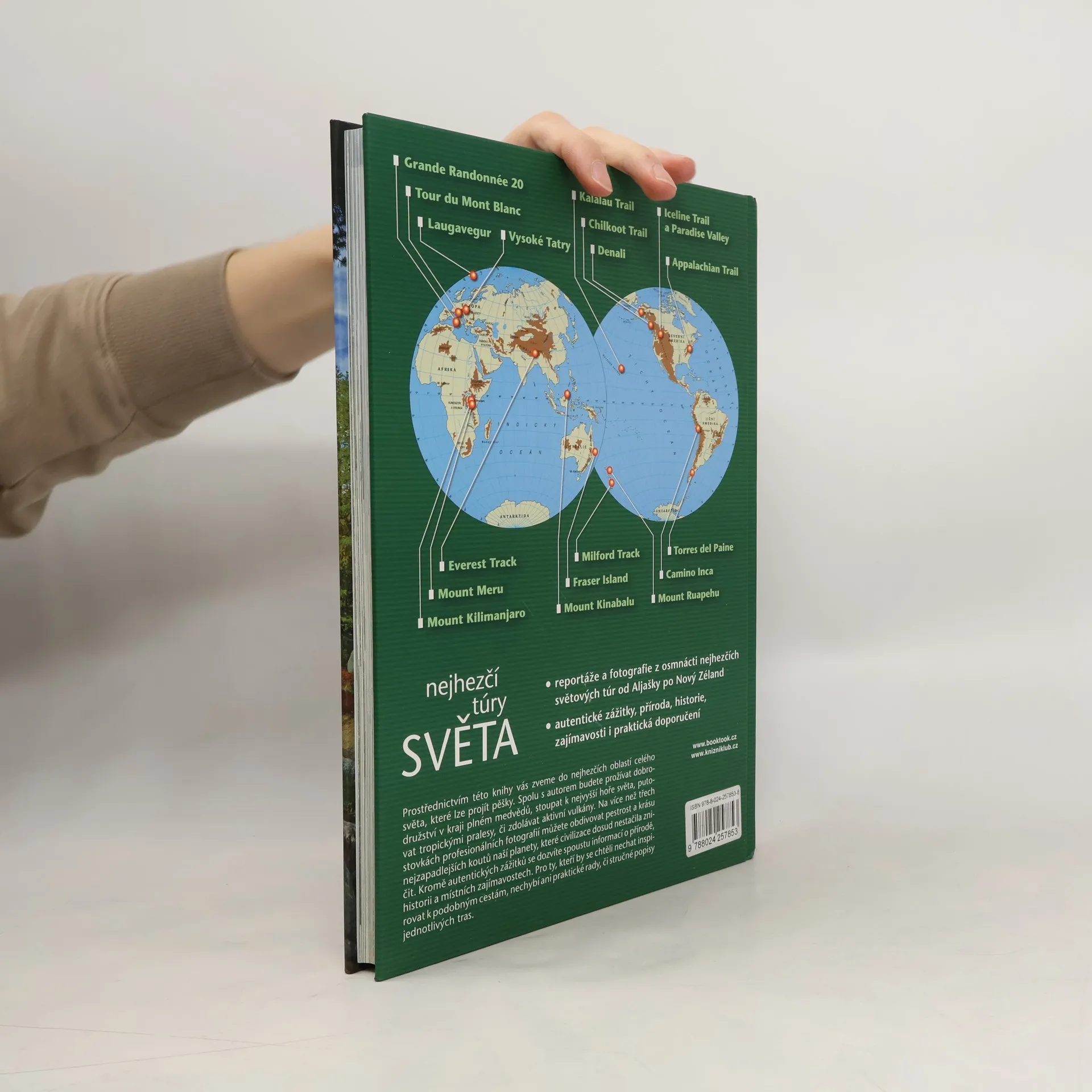 Prostřednictvím této knihy vás zveme do nejhezčích oblastí celého světa, které lze projít pěšky. Spolu s autorem budete prožívat dobrodružství v kraji plném medvědů, stoupat k nejvyšší hoře světa, putovat tropickými pralesy, či zdolávat aktivní vulkány. Na více než třech stovkách profesionálních fotografií můžete obdivovat pestrost a krásu nejzapadlejších koutů naší planety, které civilizace dosud nestačila zničit. Kromě autentických zážitků se dozvíte spoustu informací o přírodě, historii a místních zajímavostech. Pro ty, kteří by se chtěli nechat inspirovat k podobným cestám, nechybí ani praktické rady či stručné popisy jednotlivých tras.