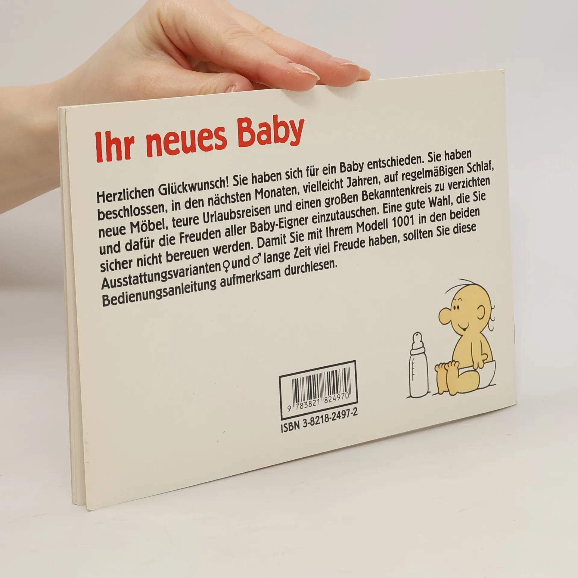 Herzlichen Glückwunsch! Sie haben sich für ein Baby entschieden. Sie haben beschlossen, in den nächsten Monaten, vielleicht Jahren, auf regelmäßigen Schlaf, neue Möbel, teure Urlaubsreisen und einen großen Bekanntenkreis zu verzichten und dafür die Freuden aller Baby-Eigner einzutauschen. Eine gute Wahl, die Sie sicher nicht bereuen werden. Damit Sie mit Ihrem Modell 1001 in den beiden Ausstattungsvarianten männlich und weiblich lange Zeit viel Freude haben, sollten Sie diese Bedienungsanleitung aufmerksam durchlesen.