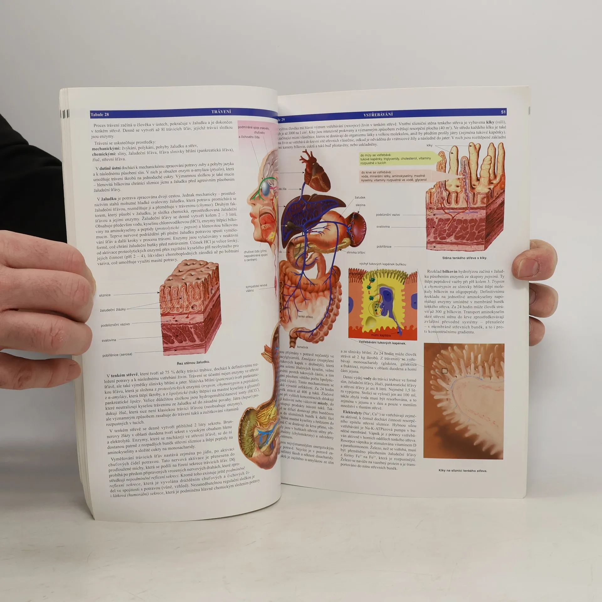 Publikace byla oceněna titulem Nejkrásnější česká kniha roku 2003 v kategorii učebnic. Je celobarevná, bohatě ilustrovaná a obsahuje informace o stavbě a funkcích lidského těla v rozsahu mírně převyšujícím středoškolské učivo. Je tedy vhodná nejen pro studenty a pedagogy na středních zdravotnických a pedagogických školách a na gymnáziích, ale také jako materiál pro přípravu k přijímacím zkouškám na vysoké školy s lékařským, přírodovědeckým nebo pedagogickým zaměřením. Využít ji mohou také studenti bakalářských stupňů na přírodovědeckých a pedagogických fakultách nebo vyšších zdravotních škol k souhrnnému opakování biologie člověka. Celá problematika je rozdělena do 84 témat, každé téma je samostatně ztvárněno na listu formátu A4. Převážná část informací je vyjádřena pomocí ilustrací, grafů, schémat a diagramů doplněných shrnujícím textem. Publikace přináší nejdůležitější informace o všech tělesných soustavách (opěrné, pohybové, oběhové, dýchací, trávicí, vylučovací, pohlavní, nervové). Tam, kde to bylo vhodné, jsou české popisky doplněny latinskými ekvivalenty. K ověření vědomostí slouží opakovací tabule s vyobrazeními bez popisků. Publikaci doplňuje výběr modelových otázek k přijímacím zkouškám na lékařskou fakultu. K publikaci se vztahují zatím dvě nástěnné výukové tabule: Člověk - opěrná soustava a Člověk - pohybová soustava. Volné listy v obálce s chlopní.
