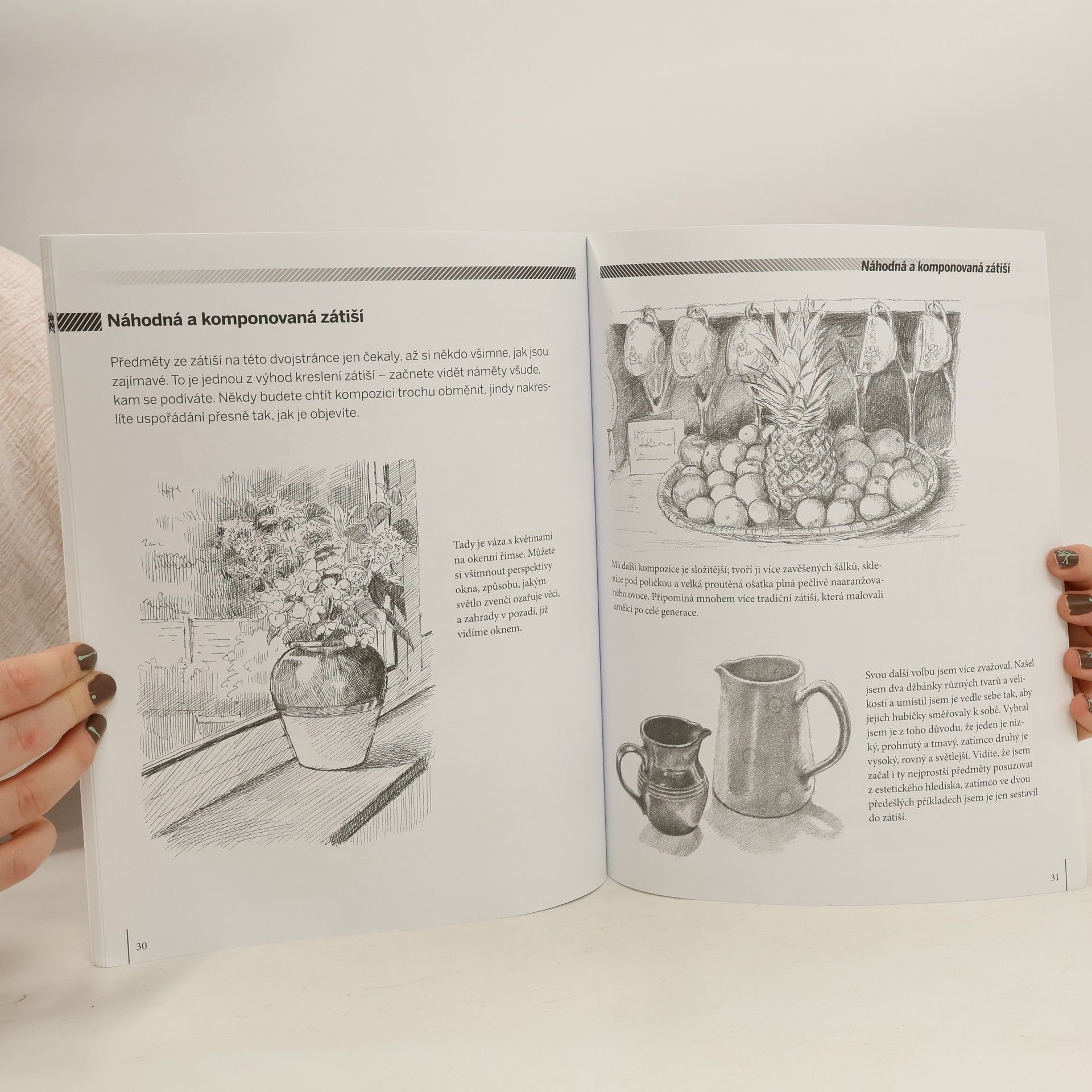 Poskytuje srozumitelný úvod do tohoto žánru - od kreslení jednotlivých věcí, jako jsou nádoby či ovoce, až ke složitějším tematickým kompozicím. Ať už jste začátečník, nebo zkušený kreslíř, jasné ukázky a postupy rozfázované do jednotlivých kroku vás naučí tvořit realistické a divácky přitažlivé kresby zátiší.