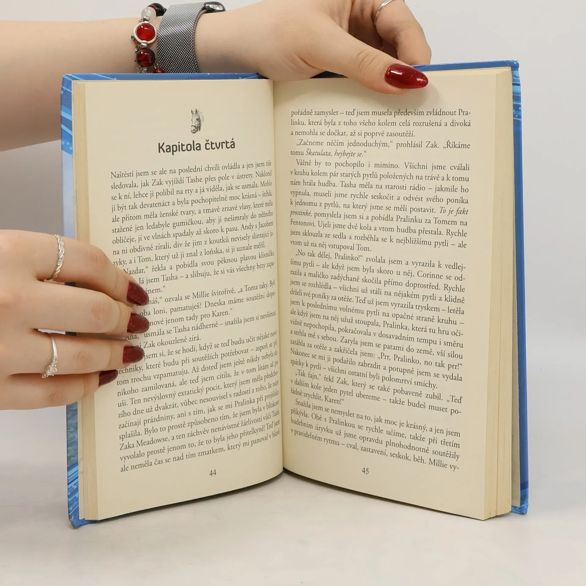 Karen je sice smutná, že nebude trávit prázdniny s mamkou, ale když nakonec odjíždí na letní jezdecký tábor, kam si může vzít svého milovaného poníka Pralinku je ohromně ráda. Prožije nejen krásné chvíle v moři, nová přátelství, lásku, ale i nenávist a panuje zde též jakési napětí. A přijde tomu všemu na kloub? Prázdninový příběh dívky Karen a jejího poníka. Pro starší dívky, milovnice koní