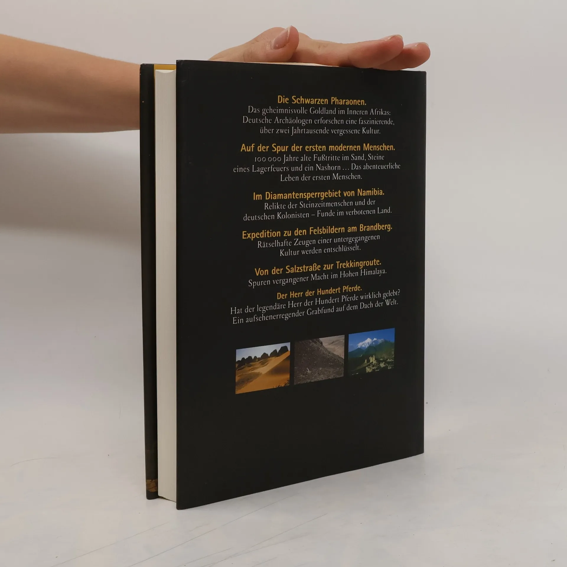 Begleitbuch zur erfolgreichen archäologischen ZDF-Serie Schliemanns Erben Themen: Die Schwarzen Pharaonen. Neue Funde in Meroë, der kaum zugänglichen ehemaligen Hauptstadt des Goldlandes Kusch, öffnen eine Schatzkammer der Archäologie. Neue Ausgrabungen an der Südspitze Afrikas. Stand hier im Süden die Wiege der Menschheit? Im Diamantensperrgebiet bei Lüderitz (Namibia). Niemand darf das Sperrgebiet betreten. Doch es gibt ein Archäologenteam, das immer wieder zu Notgrabungen gerufen wird ... Expedition zu den Felsbildern am Brandberg im Norden Namibias. Neueste Erkenntnisse könnten Licht auf eine längst verschollene Kultur werfen. Von der Salzstraße zur Trekkingroute. Spuren vergangener Macht im Hohen Himalaya. Der Herr der Hunderst Pferde. Tief verborgen im Himalaya herrschte der König von Mustang. Eine sensationelle Entdeckung wirft ein völlig neues Licht auf dieses unbekannte Reich.