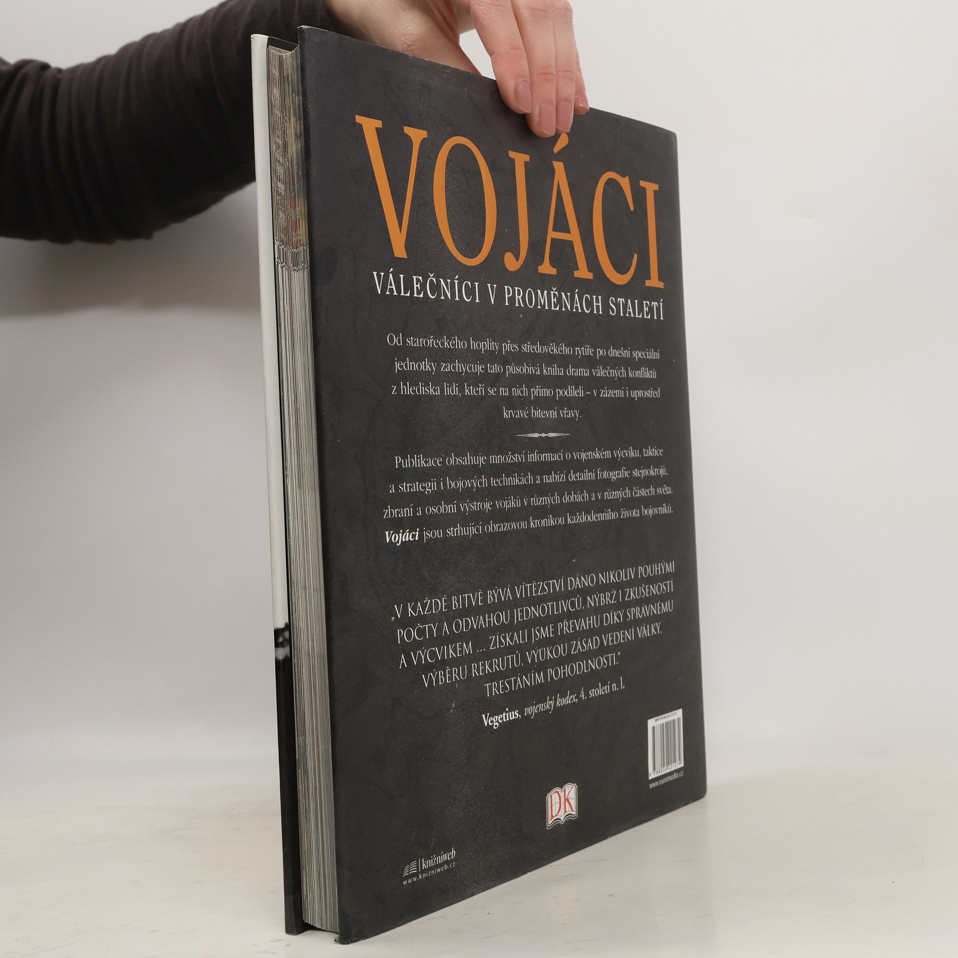 Od starořeckého hoplíty přes středověkého rytíře po dnešní speciální jednotky zachycuje tato působivá kniha drama válečných konfliktů z hlediska lidí, kteří se na nich přímo podíleli – v zázemí i uprostřed krvavé bitevní vřavy. Publikace obsahuje množství informací o vojenském výcviku, taktice a strategii i bojových technikách a nabízí detailní fotografie stejnokrojů, zbraní a osobní výstroje vojáků v různých dobách a v různých částech světa. Vojáci jsou strhující obrazovou kronikou každodenního života bojovníků.