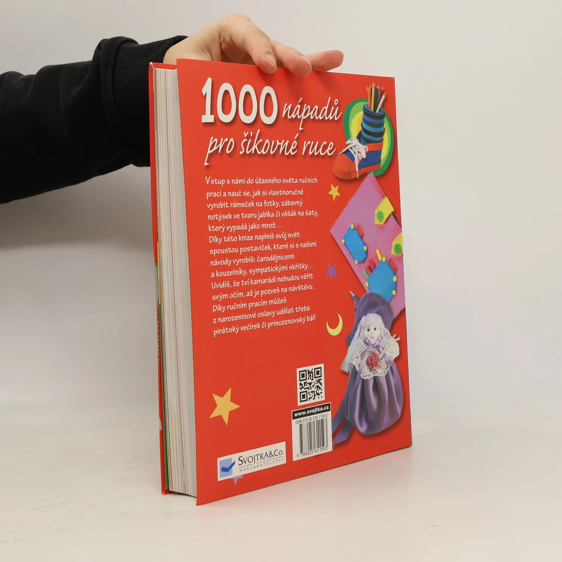 Vstup s touto knížkou do úžasného světa ručních prací a nauč se, jak si vlastnoručně vyrobit rámeček na fotky, zábavný notýsek ve tvaru jablka či věšák na šaty, který vypadá jako mrož. Naplň svůj svět spoustou postaviček, které si s našimi návody jednoduše vyrobíš, například čarodějnicemi, kouzelníky nebo sympatickými skřítky. Uvidíš, že tví kamarádi nebudou věřit svým očím, až je k sobe pozveš na návštěvu. Proměň narozeninovou oslavu v pirátský večírek či princeznovský bál! V této knížce najdeš 1000 zajímavých nápaduů pro tvé šikovné ruce!