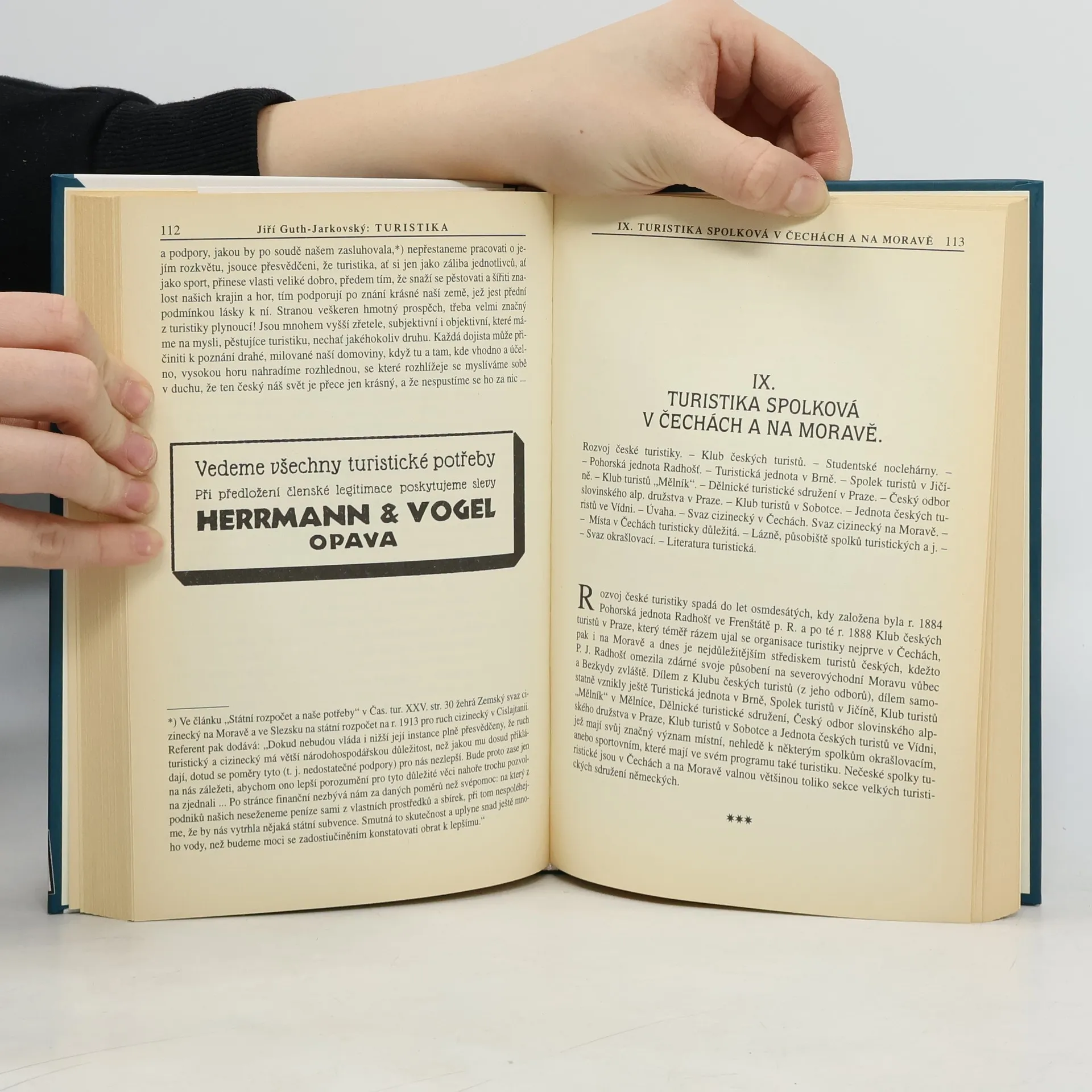 Autor, jenž byl mimo působení v mezinárodním a českém olympijském hnutí i průkopníkem české turistiky a předsedou Klubu českých turistů, sebral "v jednotný celek volné úvahy a kapitoly o turistice vůbec, české pak obzvláště". Turisty dělí do čtyř kategorií: turisty pěší, kde chodec "kráčí svobodně, nespoután jízdním řádem ani cestami, nepodléhaje nikomu než vlastní vůli a pevnosti a otužilosti svých svalů", turisty novodobé, jimiž "v dobách mírových přecpány jsou vlaky", turisty kombinované, kteří "nepovrhnou prostředkem dopravním, ale zajedše do té které krajiny proputují ji pak pěšky" a turisty horské, horolezce, kteří "slézají vysoké kopce, skály a temena z neodolatelné touhy po širokém rozhledu, jenž korunuje jejich námahu". Text psaný půvabnou češtinou překvapí nadčasovostí některých úvah ("Pohyb v čistém vzduch, plném ozonu a rozkošný klid nižších i vyšších hor, oživují a posilují skoro všecky orgány lidského těla, zvláště nejjemnější a nejcitlivější, totiž nervy, jež drsný boj o život tak často a tak krutě mučívá.").