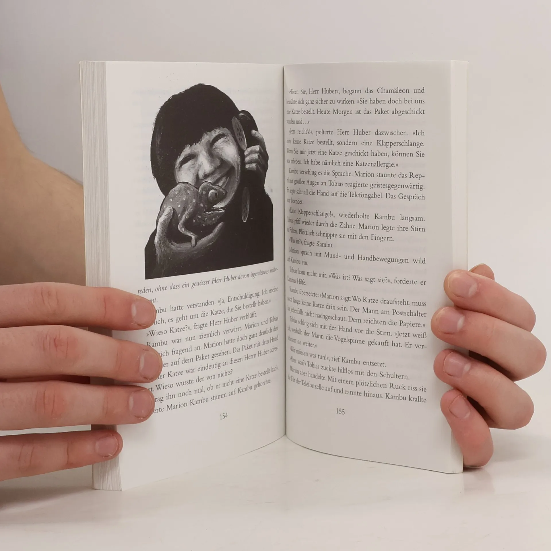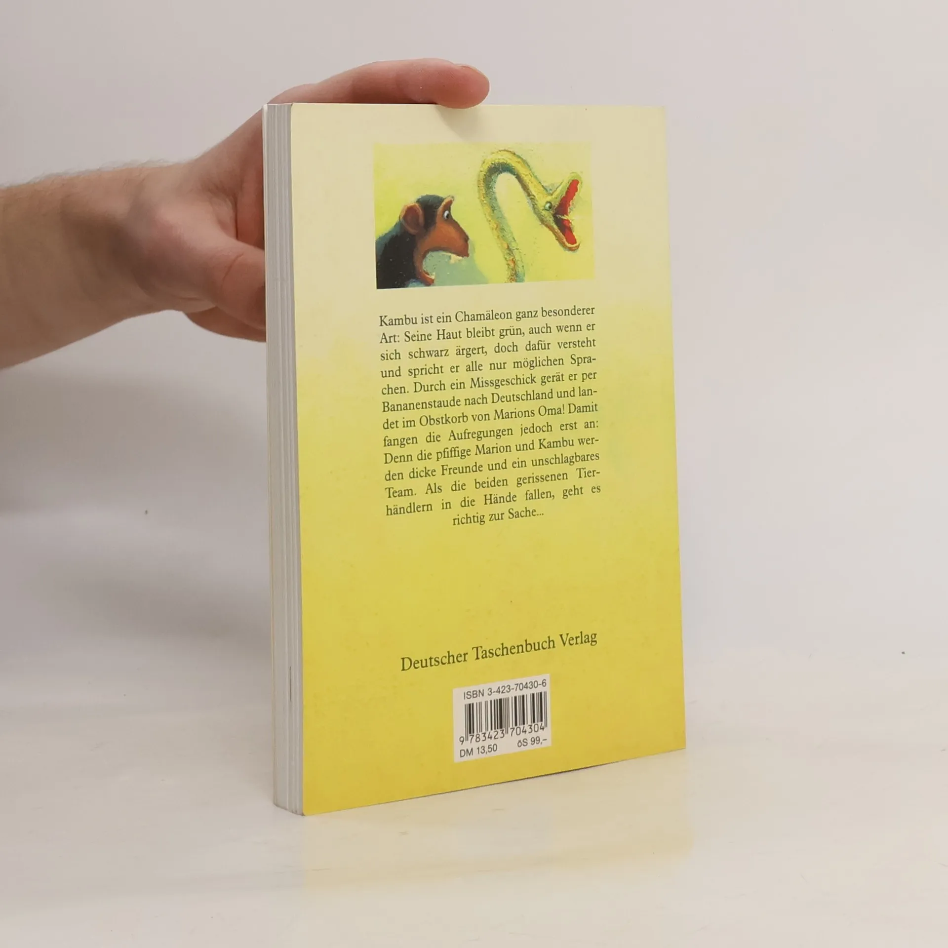 Kambu ist anders als alle Chamäleons Afrikas. Seine Haut bleibt grün, auch wenn er sich schwarz ärgert, doch dafür versteht und spricht er alle nur möglichen Sprachen. Durch ein Missgeschick gerät Kambu per Bananentransport nach Deutschland und landet im Obstkorb von Marions Oma! Damit fangen die Aufregungen jedoch erst an: Denn die pfiffige Marion und Kambu werden dicke Freunde und ein unschlagbares Team. Als die beiden gerissenen Tierhändlern in die Hände fallen, geht es richtig zur Sache ...