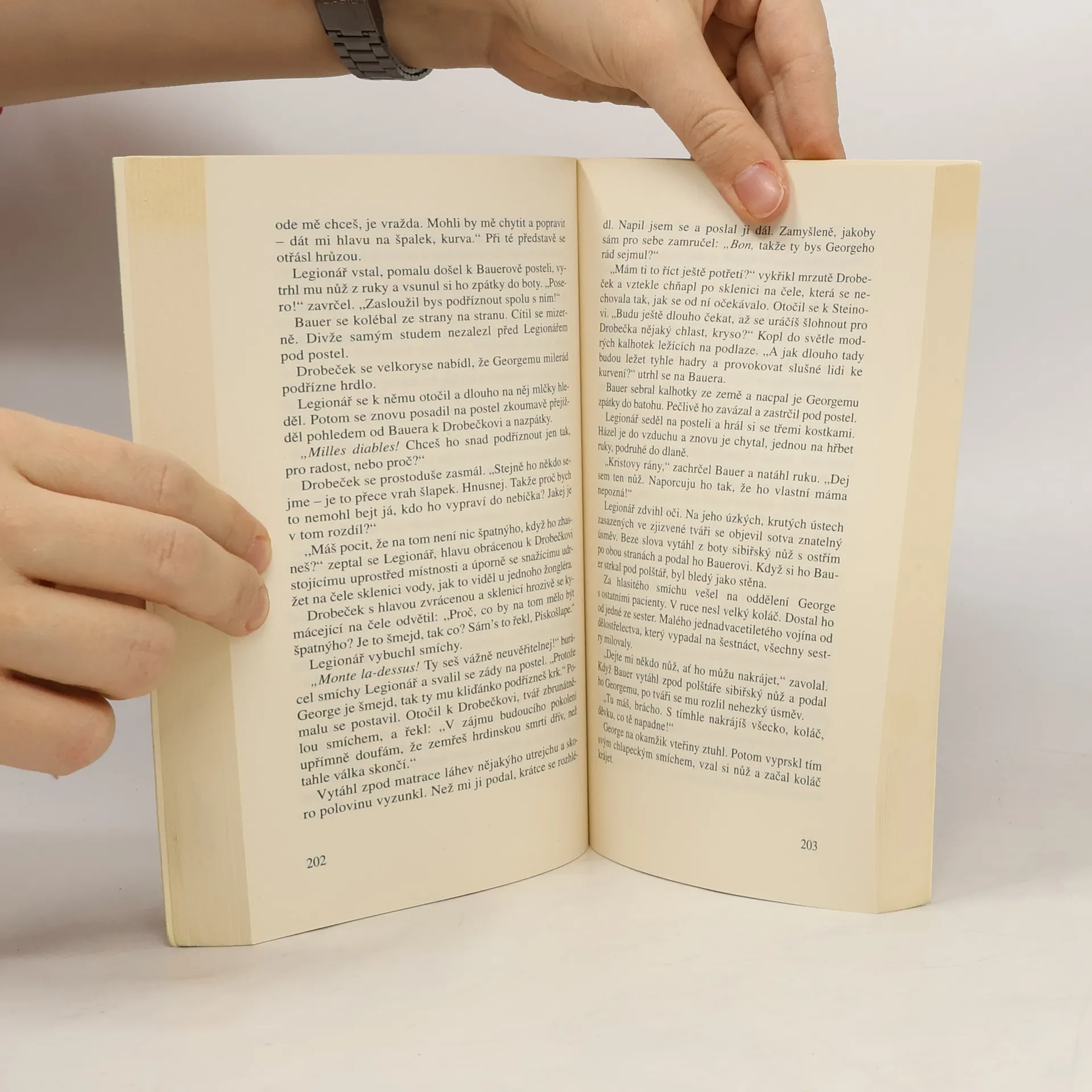 Hrdina má větší štěstí než mnoho jeho spolubojovníků: z východní fronty se na rozdíl od nich vrací, byť lazaretním vlakem s omrzlinami druhého stupně. Cesta do Krakova, již absolvuje společně s Drobečkem trvá dvanáct dnů, a transport přežije jenom třetina zraněných. Poté se oba přátelé léčí v hamburské nemocnici, vymetají bordely a putyky a hrdina se seznamuje s důstojnickou paničkou Gizelou. Odmítají režim, který je nutí bojovat až do hořkého konce bez ohledu na lidské životy, což vede k řadě střetnutí s vojenskou policií. Jednou z bestií v lidské podobě je obrovitý rotný Braun, jehož nakonec Drobeček zaškrtí kusem ocelového drátu. Příjemný život v zázemí však nemůže trvat věčně a oba přátele čeká transport zpět do válečného běsnění. Opět se ocitají na východní frontě a opět jim jde o život - německou armádu decimují ruské tankové a letecké útoky, které Hassel dokáže barvitě popsat. Krutá a nesmyslná válka stále ještě pokračuje.