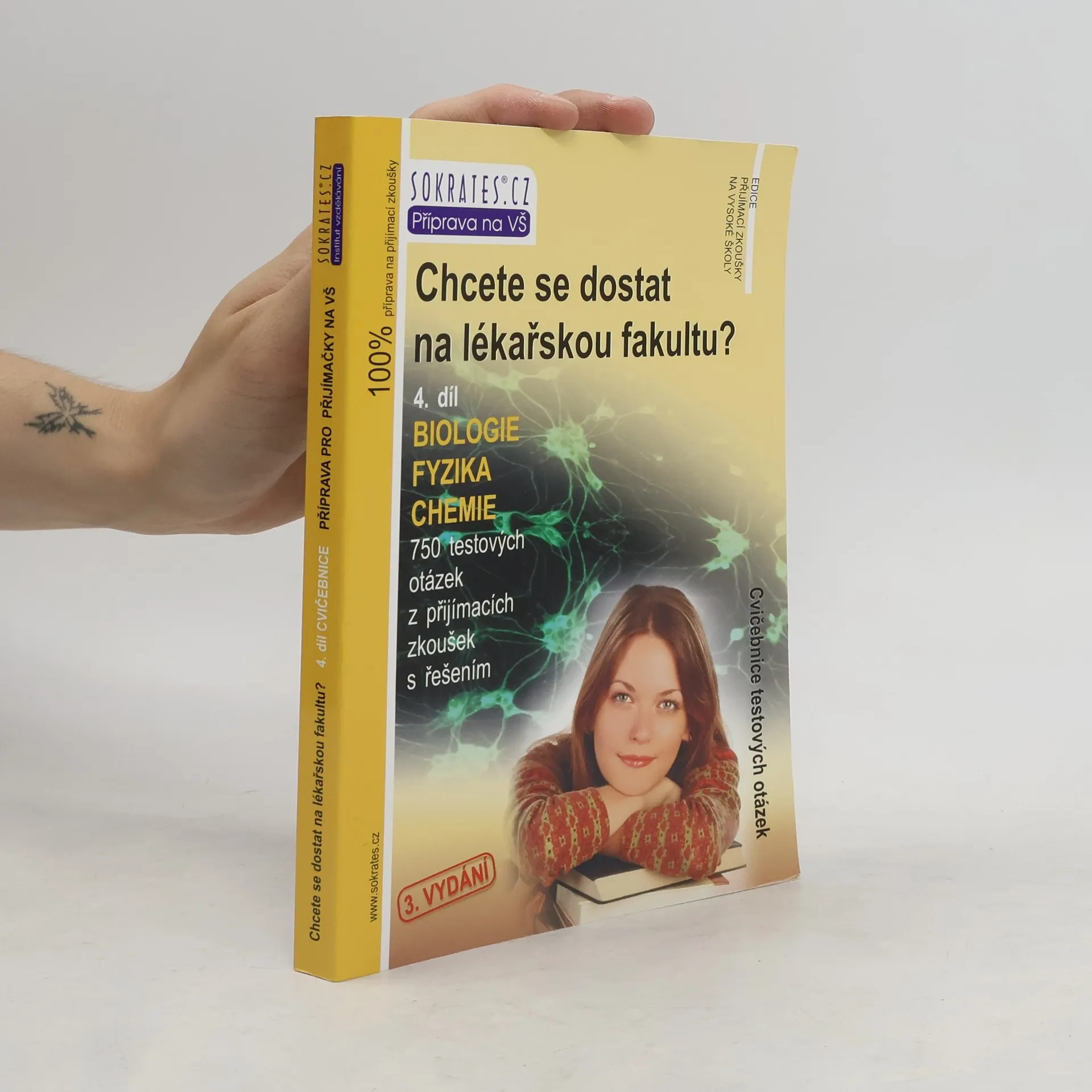 Cvičebnice testových otázek. Kniha je jedinečnou pomůckou určenou uchazečům o studium na lékařských, veterinárních, farmaceutických, zdravotně sociálních, elektrotechnických, technických, strojních, stavebních fakultách, fakultách zdravotnických studií obsahuje 750 testových otázek z minulých přijímacích zkoušek s řešením, a to z biologie, fyzika a chemie; určeno: lékařské fakulty UK v Praze, Plzni a Hradci Králové, Lékařská fakulta MU v Brně, Lékařská fakulta a Fakulta zdravotnických studií UP v Olomouci, Lékařská fakulta v Ostravě, Veterinární a farmaceutická univerzita Brno, Farmaceutická fakulta v Hradci Králové, Přírodovědecká fakulta Univerzity Karlovy v Praze, Zdravotně sociální fakulta JČU v Českých Budějovicích, Fakulta zdravotnických studií ZČU v Plzni, Fakulta zdravotnických studií Univerzity Pardubice, Ústav zdravotnických studií UJEP v Ústí nad Labem, Ústav zdravotnických studií TUL, Fakulta výrobních technologií UJEP v Ústí nad |Labem, Elektrotechnická fakulta ZČU v Plzni, Technická fakulta ČZU v Praze, Elektrotechnická, Strojní a Stavební fakulta ČVUT v Praze a další vysoké školy. Publikaci je vhodné zkombinovat s vysvětlením problematiky v 1. - 3. díle.