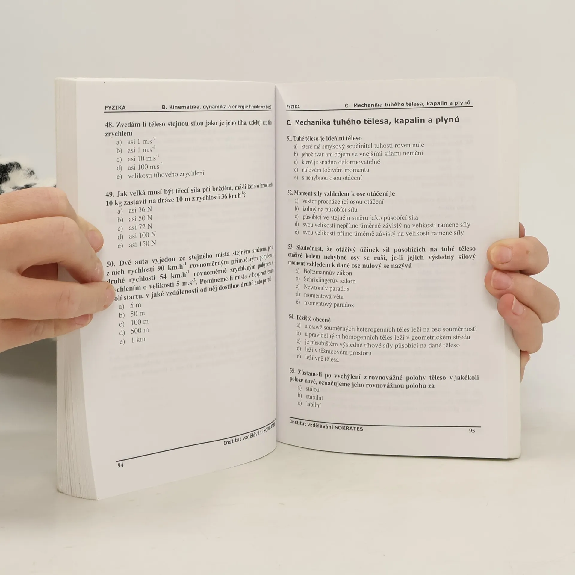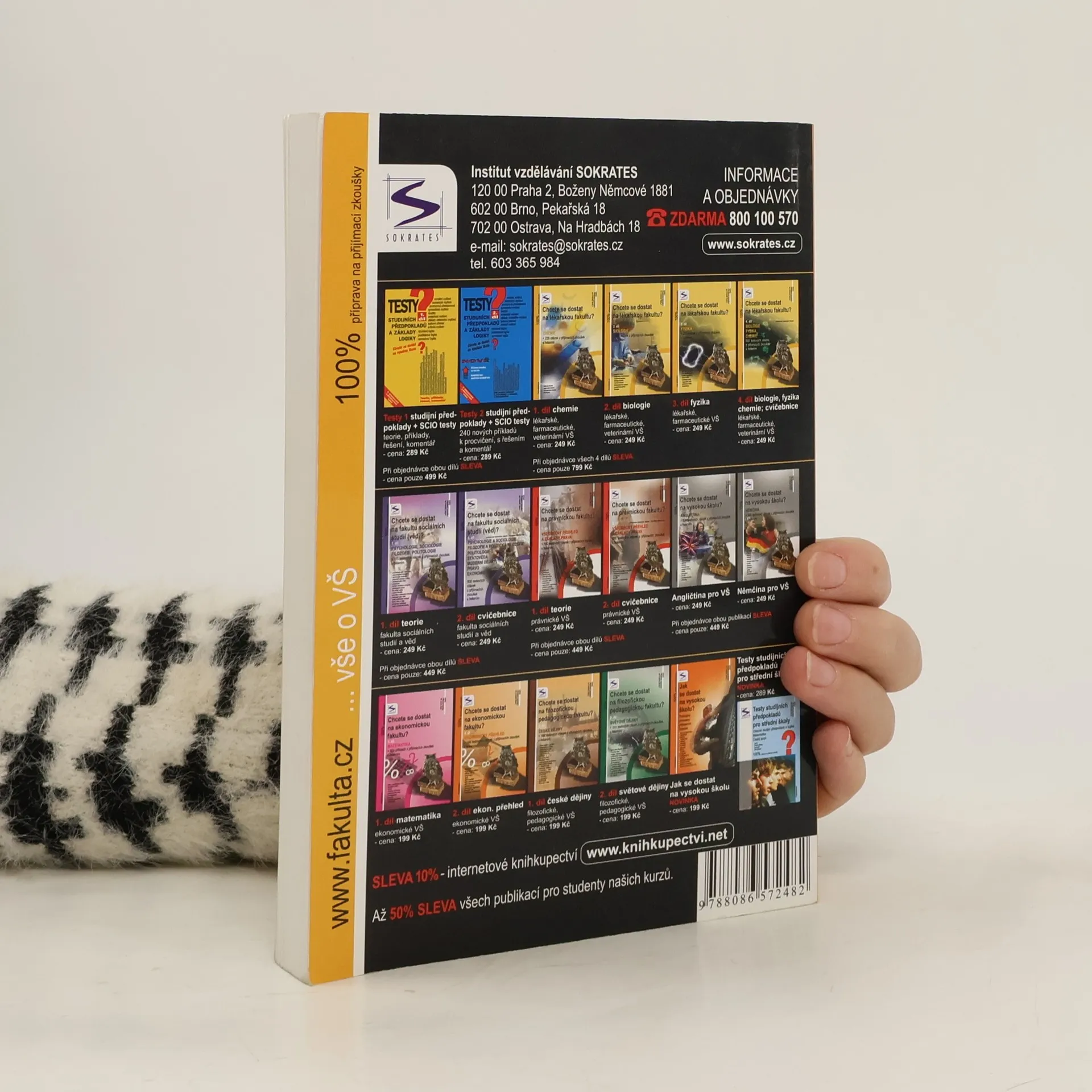 Cvičebnice testových otázek. Kniha je jedinečnou pomůckou určenou uchazečům o studium na lékařských, veterinárních, farmaceutických, zdravotně sociálních, elektrotechnických, technických, strojních, stavebních fakultách, fakultách zdravotnických studií obsahuje 750 testových otázek z minulých přijímacích zkoušek s řešením, a to z biologie, fyzika a chemie; určeno: lékařské fakulty UK v Praze, Plzni a Hradci Králové, Lékařská fakulta MU v Brně, Lékařská fakulta a Fakulta zdravotnických studií UP v Olomouci, Lékařská fakulta v Ostravě, Veterinární a farmaceutická univerzita Brno, Farmaceutická fakulta v Hradci Králové, Přírodovědecká fakulta Univerzity Karlovy v Praze, Zdravotně sociální fakulta JČU v Českých Budějovicích, Fakulta zdravotnických studií ZČU v Plzni, Fakulta zdravotnických studií Univerzity Pardubice, Ústav zdravotnických studií UJEP v Ústí nad Labem, Ústav zdravotnických studií TUL, Fakulta výrobních technologií UJEP v Ústí nad |Labem, Elektrotechnická fakulta ZČU v Plzni, Technická fakulta ČZU v Praze, Elektrotechnická, Strojní a Stavební fakulta ČVUT v Praze a další vysoké školy. Publikaci je vhodné zkombinovat s vysvětlením problematiky v 1. - 3. díle.