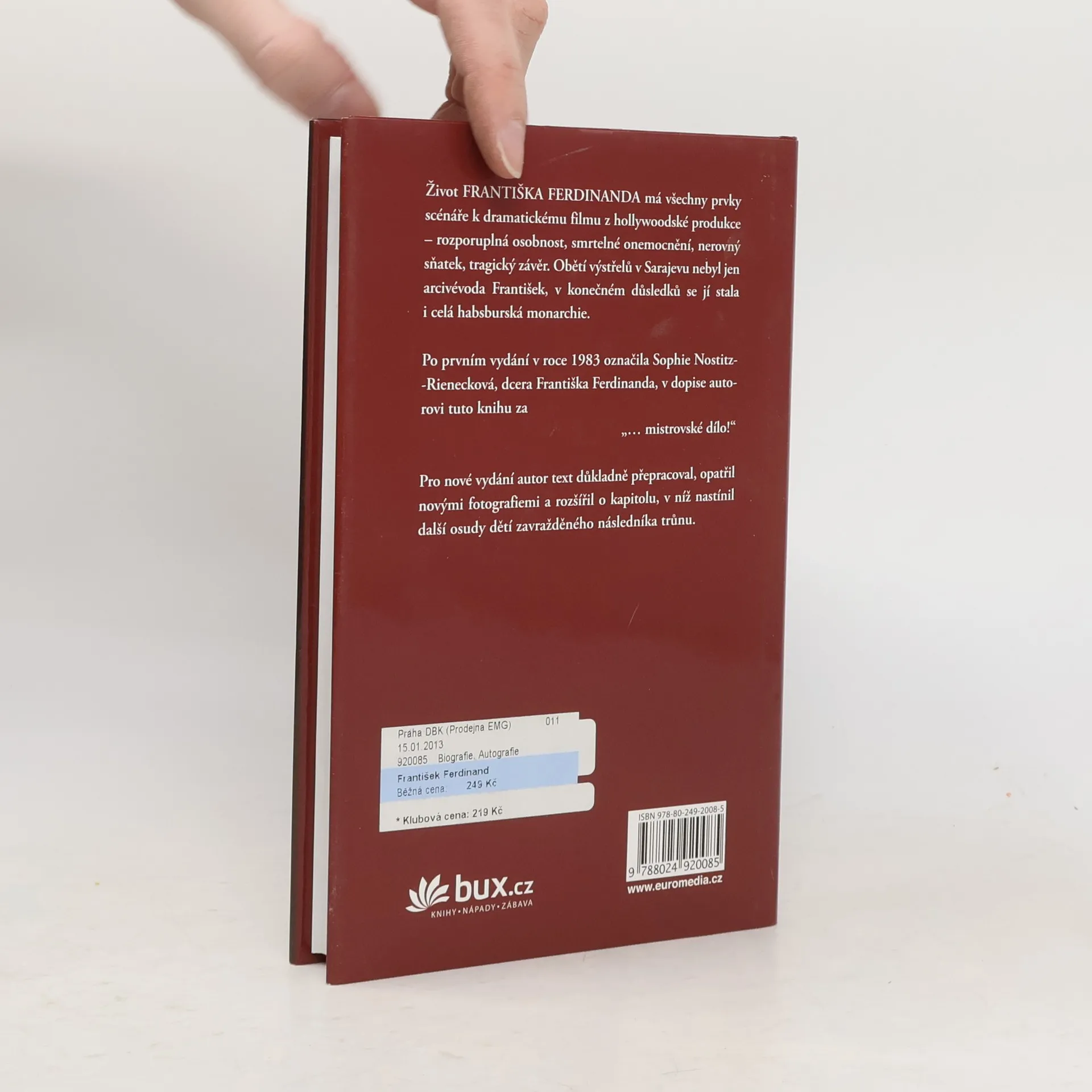 Život FRANTIŠKA FERDINANDA má všechny prvky scénáře k dramatickému filmu z hollywoodské produkce – rozporuplná osobnost, smrtelné onemocnění, nerovný sňatek, tragický závěr. Obětí výstřelů v Sarajevu nebyl jen arcivévoda František, v konečném důsledků se jí stala i celá habsburská monarchie. V tomto novém vydání autor text důkladně přepracoval, opatřil novými fotografiemi a rozšířil o kapitolu, v níž nastínil další osudy dětí zavražděného následníka trůnu.