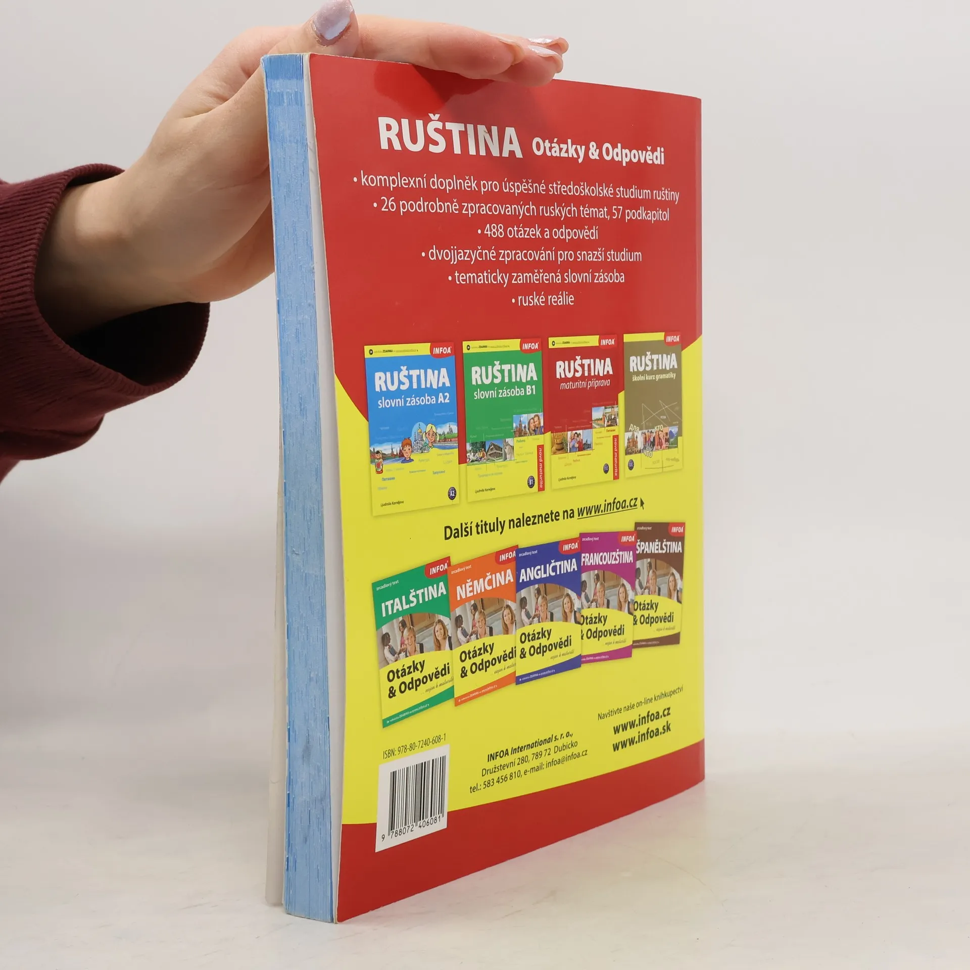 Komplexní doplňková učebnice pro úspěšné středoškolské studium ruštiny obsahuje 26 podrobně zpracovaných témat, 57 podkapitol, 469 otázek a odpovědí, tematicky zaměřenou slovní zásobu a reálie. Dvojjazyčné zpracování pro snazší studium.