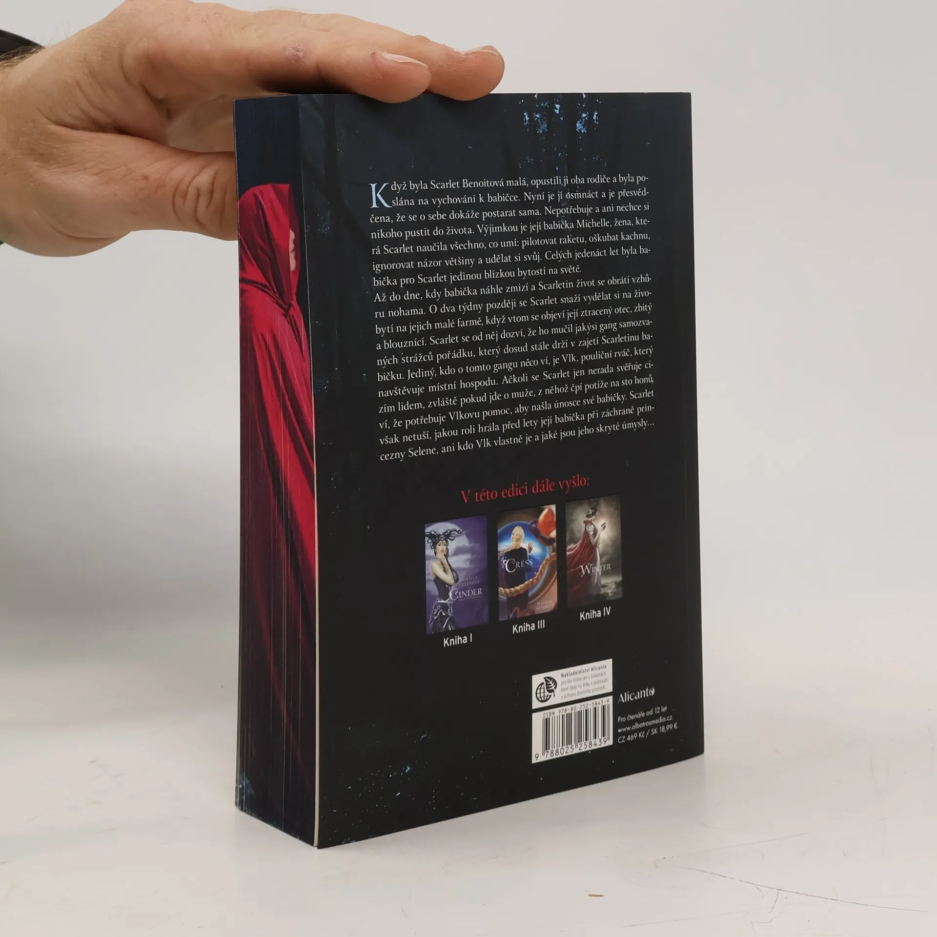 Pokračování románu Cinder a druhá kniha ságy Měsíční kroniky. Osmnáctiletá Scarlet je přesvědčena, že se o sebe dokáže postarat sama, protože k samostatnosti ji vedla její babička. Jenže jednoho dne babička záhadně zmizí a něco s tím má do činění gang nebezpečných mladíků, který řídí divoký Vlk. Dokáže najít vysvětlení, do čeho se její rodina zapletla, zapojit se do boje po boku Cinder a najít svou životní lásku?