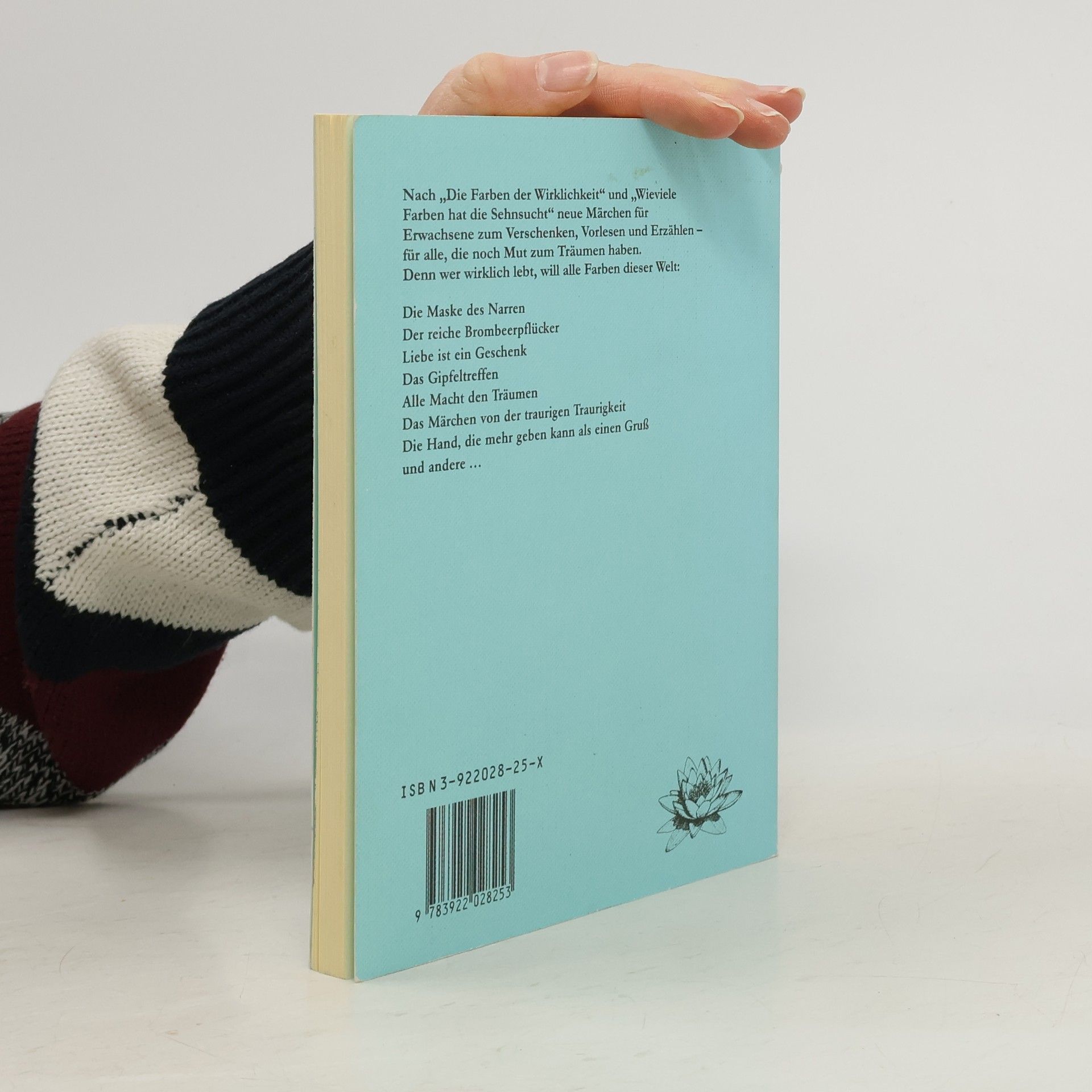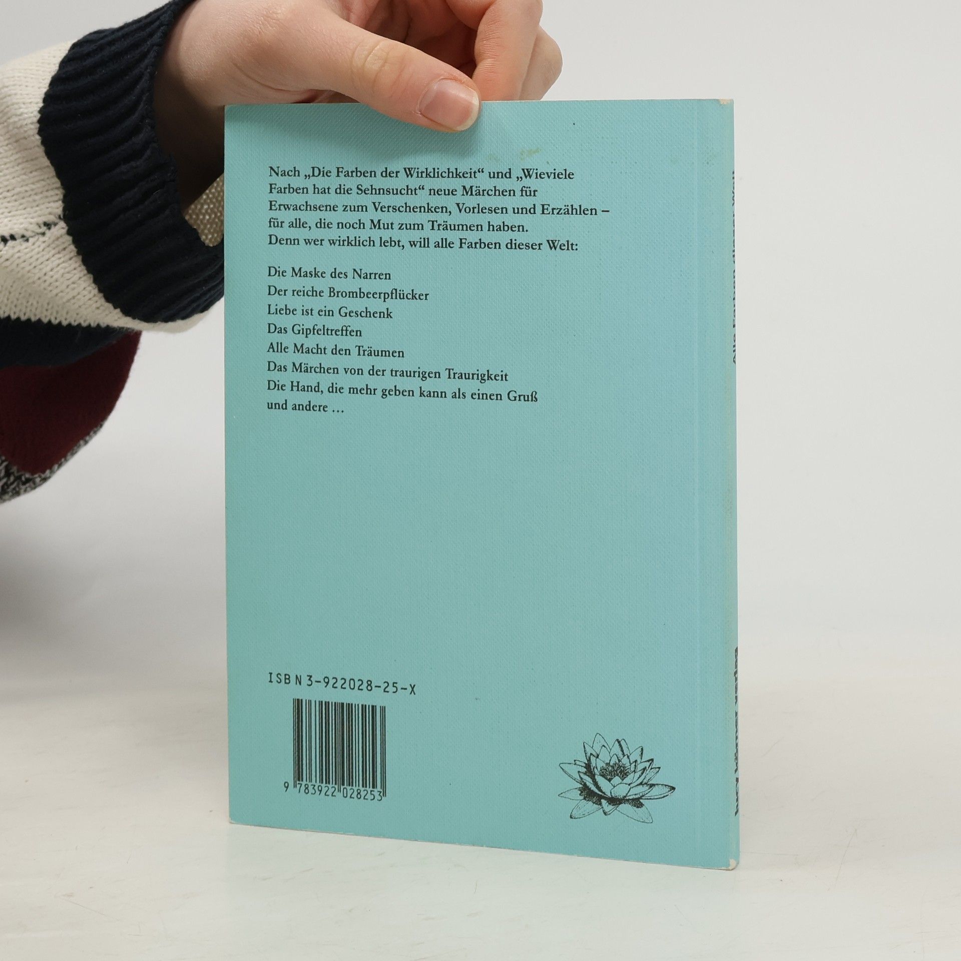 Nach "Farben der Wirklichkeit" und "Wieviele Farben hat die Sehnsucht" neue Märchen für Erwachsene zum Verschenken, Vorlesen und Erzählen - für alle, die noch Mut zum Träumen haben. Denn wer wirklich lebt, will alle Farben dieser Welt. . Die Maske des Narren Der reiche Brombeerpflücker Liebe ist ein Geschenk Das Gipfeltreffen Alle Macht den Träumen Das Märchen von der traurigen Traurigkeit Die Hand, die mehr geben kann als ein Gruß und andere ...