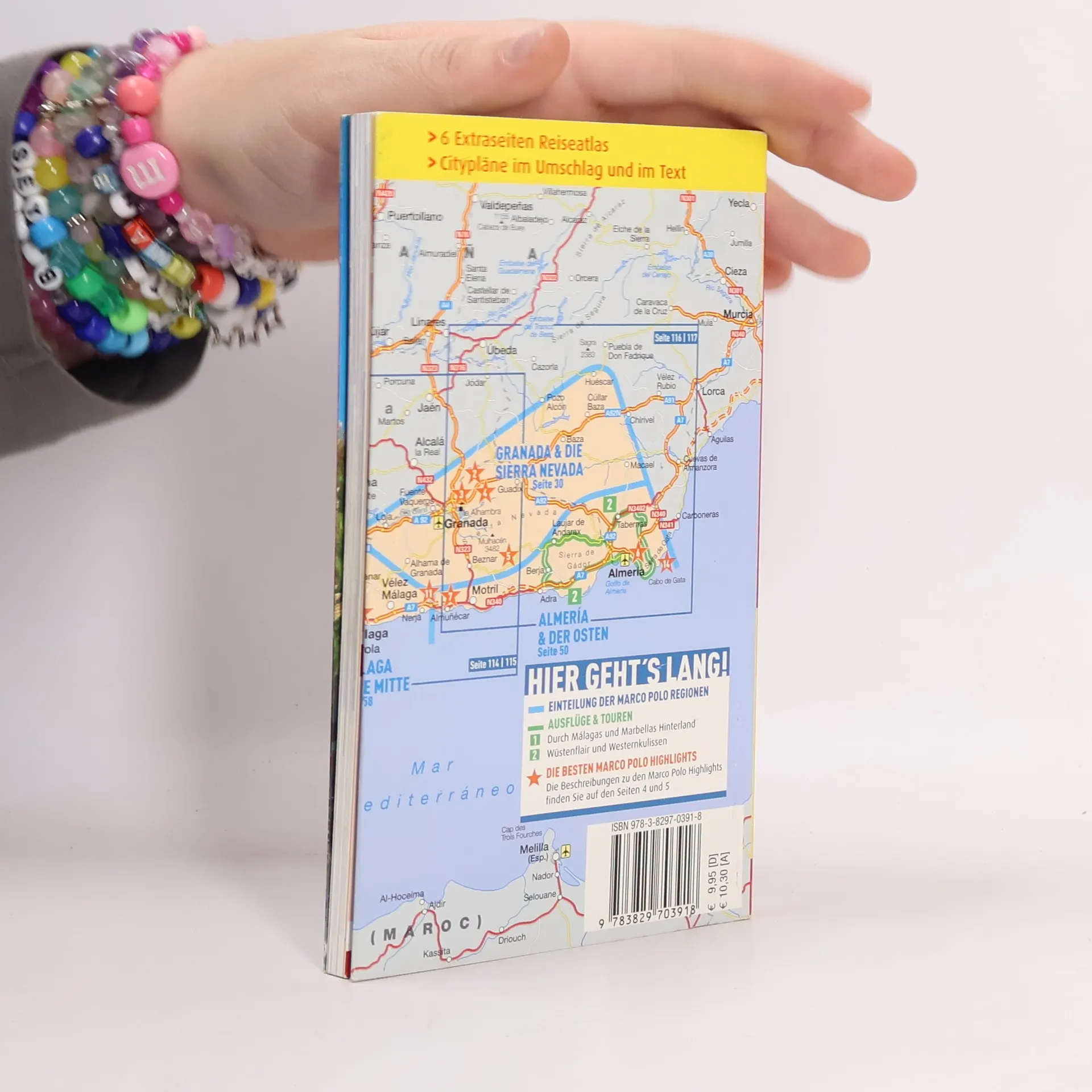 Traumstrände, Naturparks, uraltes Kulturland, dazu Golfplätze an der Costa del Sol, Kunstgenuss in Picassos Heimatstadt Malaga und die schneebedeckten Gipfel der Sierra Nevada: Spaniens sonnendurchglühter Süden bietet kontrastreiche Bilder. Das gilt gleichermaßen für den Pegelausschlag zwischen bodenständigen Tapabars und Tummelplätzen für den den internationalen Jetset. Andersorts bewahren Bergdörfer ihr ursrpüngliches Flair, und Granada und Almeria stehen für das faszinierende Erde der Mauren. Die „Sonnenküste“ und ihr Hinterland - das schmeckt nach Lebenslust und Sinnlichkeit in der multikulturellen Wiege der Toleranz. Mit Szene-Guide, 24h Action pur, Insider-Tipp, Reise-Atlas