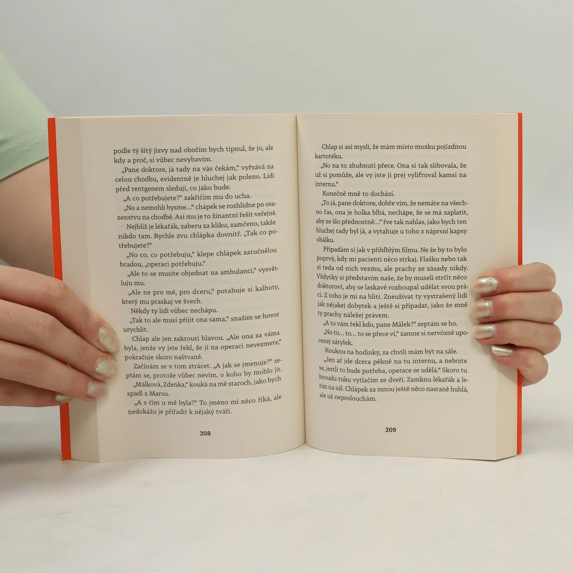 Silný příběh z pohledu mužské postavy, postupně v náznacích autorka odkrývá životní (více profesní) osud hlavního hrdiny. Celým příběhem se line boj se závislostmi a nespravedlností. Peprný jazyk, jakým je kniha napsána, dobře vykresluje hrdinu i prostředí nemocnice.