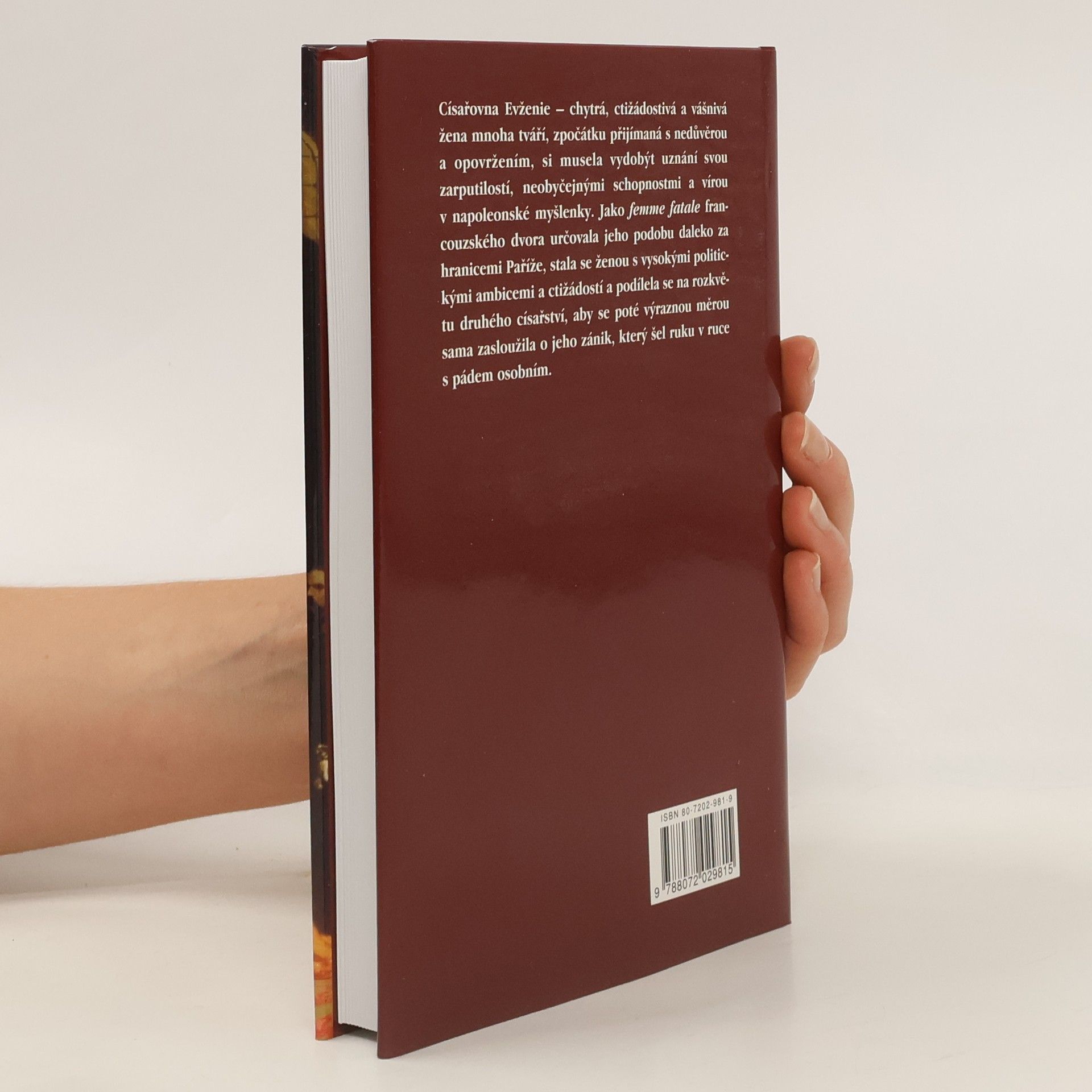 Čtivé vyprávění o životě francouzské císařovny, manželky Napoleona III. Autor velice podrobně popisuje jednotlivé úseky života císařovny Evženie na pozadí významných politických i společenských událostí za poměrně dlouhou časovou etapu - od r. 1826 do r. 1920. Čtenář tak pozná celé období tzv. druhého císařství, atmosféru francouzského dvora, jeho lesk i intriky, vzestup Paříže jako světové metropole na poli kulturním i společenském a spolu s tím vším i významné události mezinárodní politiky. Středem vyprávění je ale životní příběh císařovny Evženie od bezvýznamnách začátků až k vrcholu společenského postavení a dále až k bezmocnému pádu z politických výšin do života v uzavřeném soukromí. - Doplněno chronologickým přehledem událostí, obsáhlou bibliografií i jmenným rejstříkem a v neposlední řadě zajímavými reprodukcemi a fotografiemi.