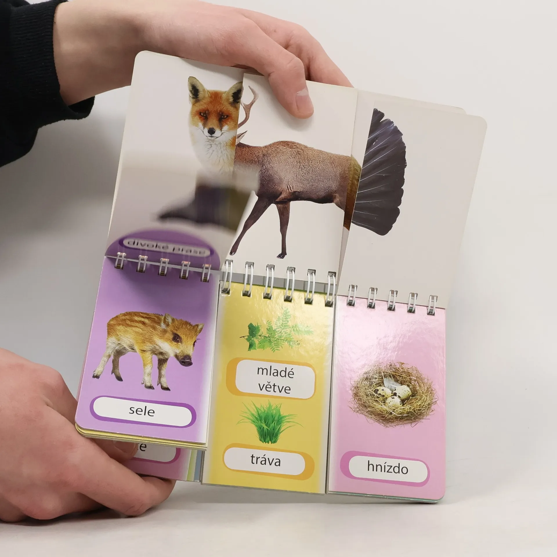 Krásné didaktické leporelo na spirále. Každá stránka je rozdělena na tři části. Děti musí poskládat obrázky správně k sobě. Z jedné strany skládají obrázky zvířat, z druhé strany k sobě přiřazují informace o jednotlivých zvířatech.