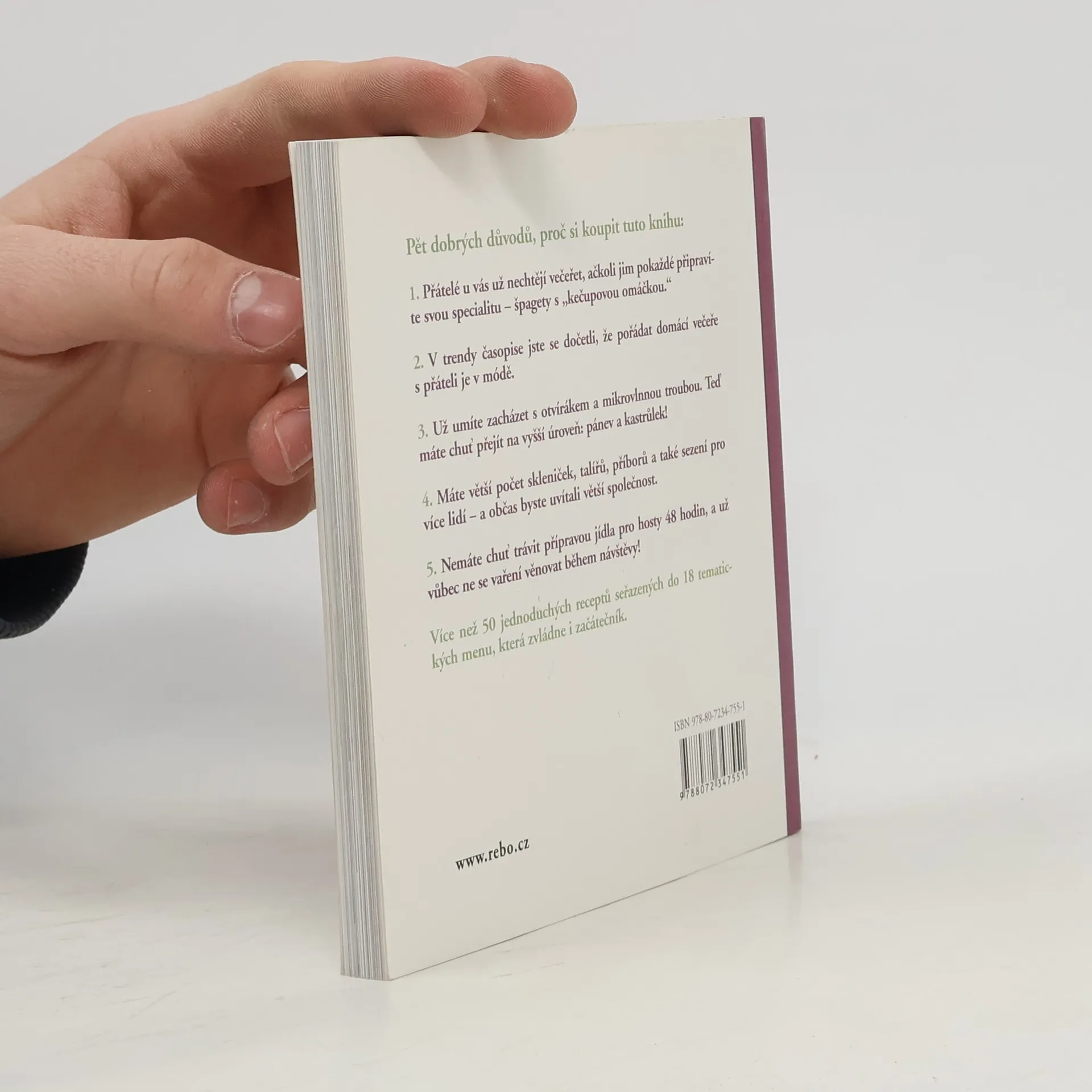 Tato kniha nabízí více než 50 jednoduchých, vyzkoušených a hlavně originálních receptů, řazených jako tematické večeře (vegetariánská, růžová, bez talířů a příborů, polévková, syrová, sýrová…).