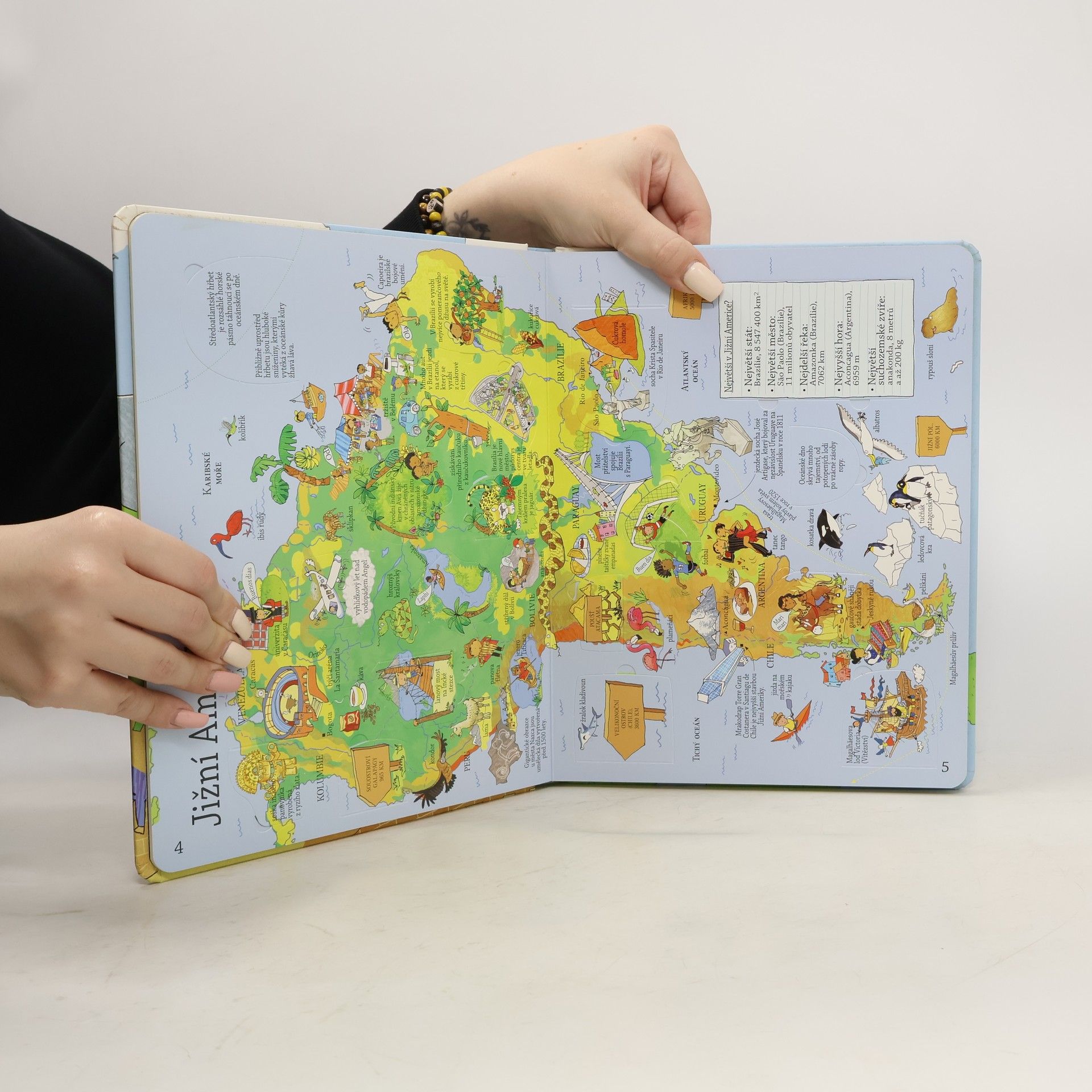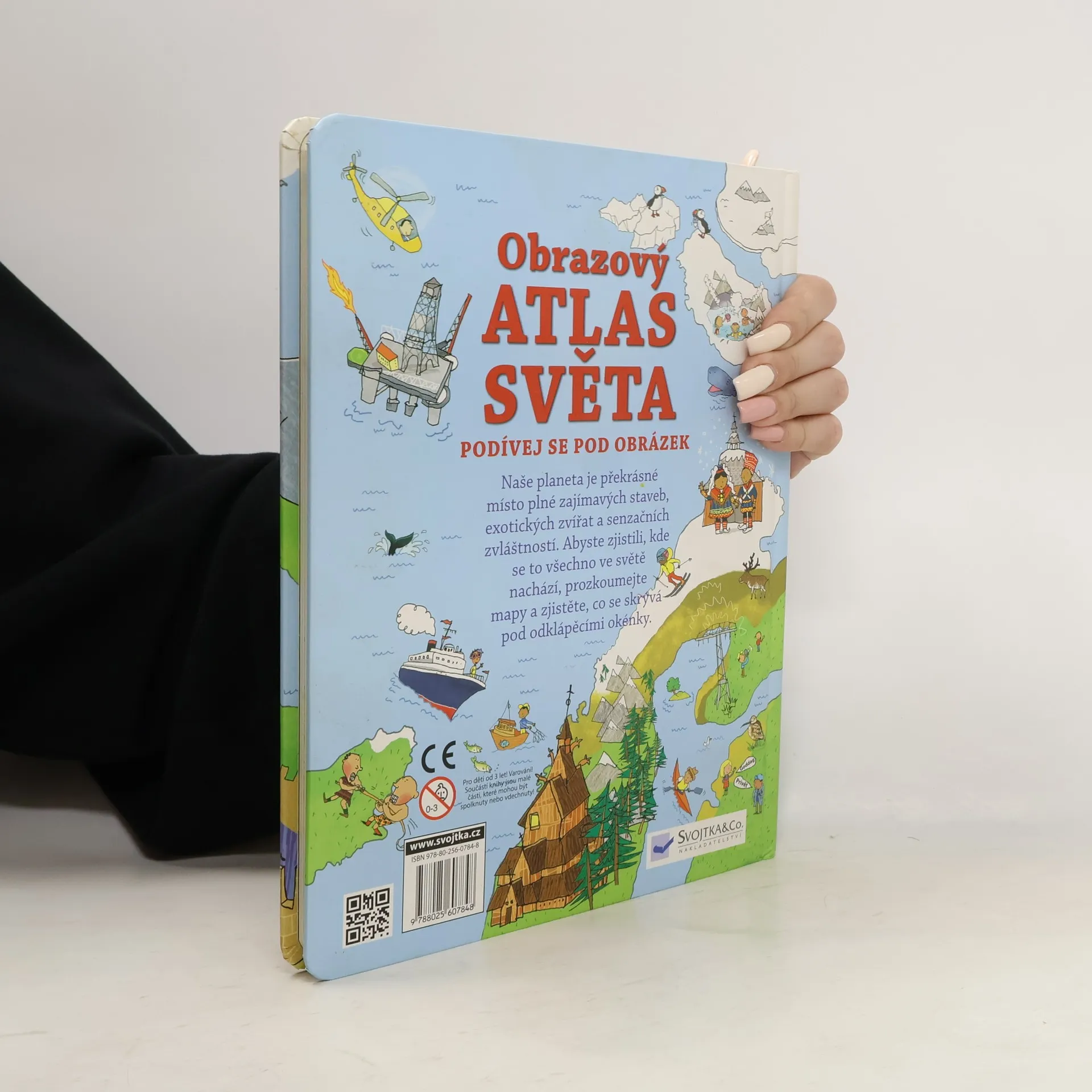 Co je to atlas? Víte, jaké světadíly se na Zemi nacházejí? Naše planeta je překrásné místo plné zajímavých staveb, exotických zvířat a senzačních pozoruhodností. Abyste věděli, kde se to všechno nachází, prozkoumejte mapy v této knížce a zjistěte, co se skrývá pod odklápěcími okénky. Všechny státy světa pohromadě i s jejich hlavními městy a vlajkami navíc najdete i na velké rozkládací mapě, která je ve speciální kapsičce na zadní části knihy.