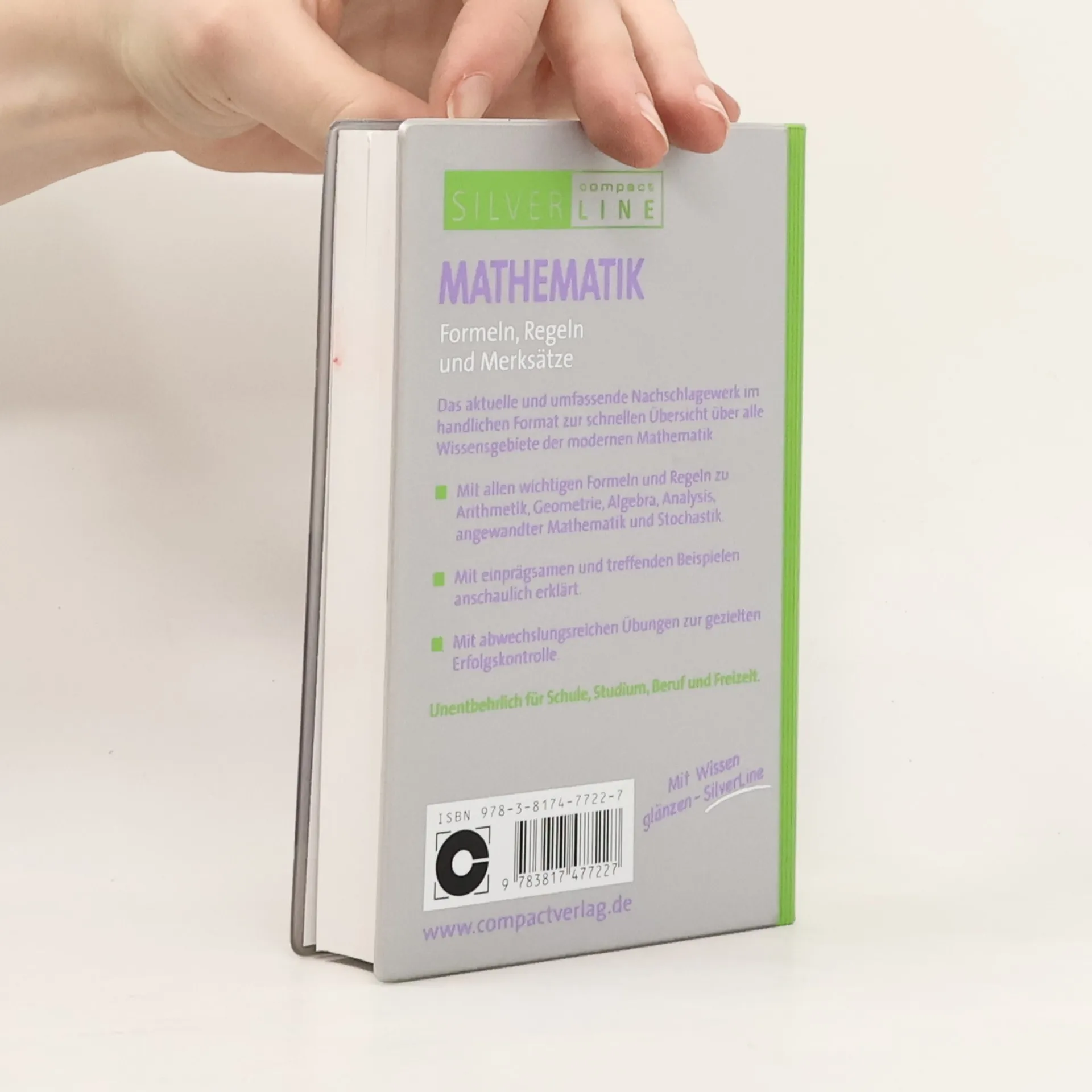 Der Band Mathematik aus der Compact-Reihe SilverLine ist ein umfassendes und aktuelles Nachschlagewerk mit allen wichtigen Formeln und Regeln zu den wesentlichen Wissensgebieten aus sämtlichen Teilbereichen der modernen Mathematik. Durch seine leicht verständlichen Erklärungen, zahlreichen Beispiele, Abbildungen und Skizzen ist der Titel sehr anwenderfreundlich. Anhand spezieller Übungen hat der Benutzer die Möglichkeit, sein neu erworbenes Wissen zu testen und zu vertiefen. - alle wichtigen Formeln und Regeln zu Arithmetik, Geometrie, Algebra, Analysis, angewandter Mathematik, mathematischer Logik und Stochastik - Erklärungen anhand einprägsamer und treffender Beispiele - abwechslungsreiche Übungen zur gezielten Erfolgskontrolle - benutzerfreundliches, übersichtliches Layout - strapazierfähiger und abwaschbarer PVC-Einband